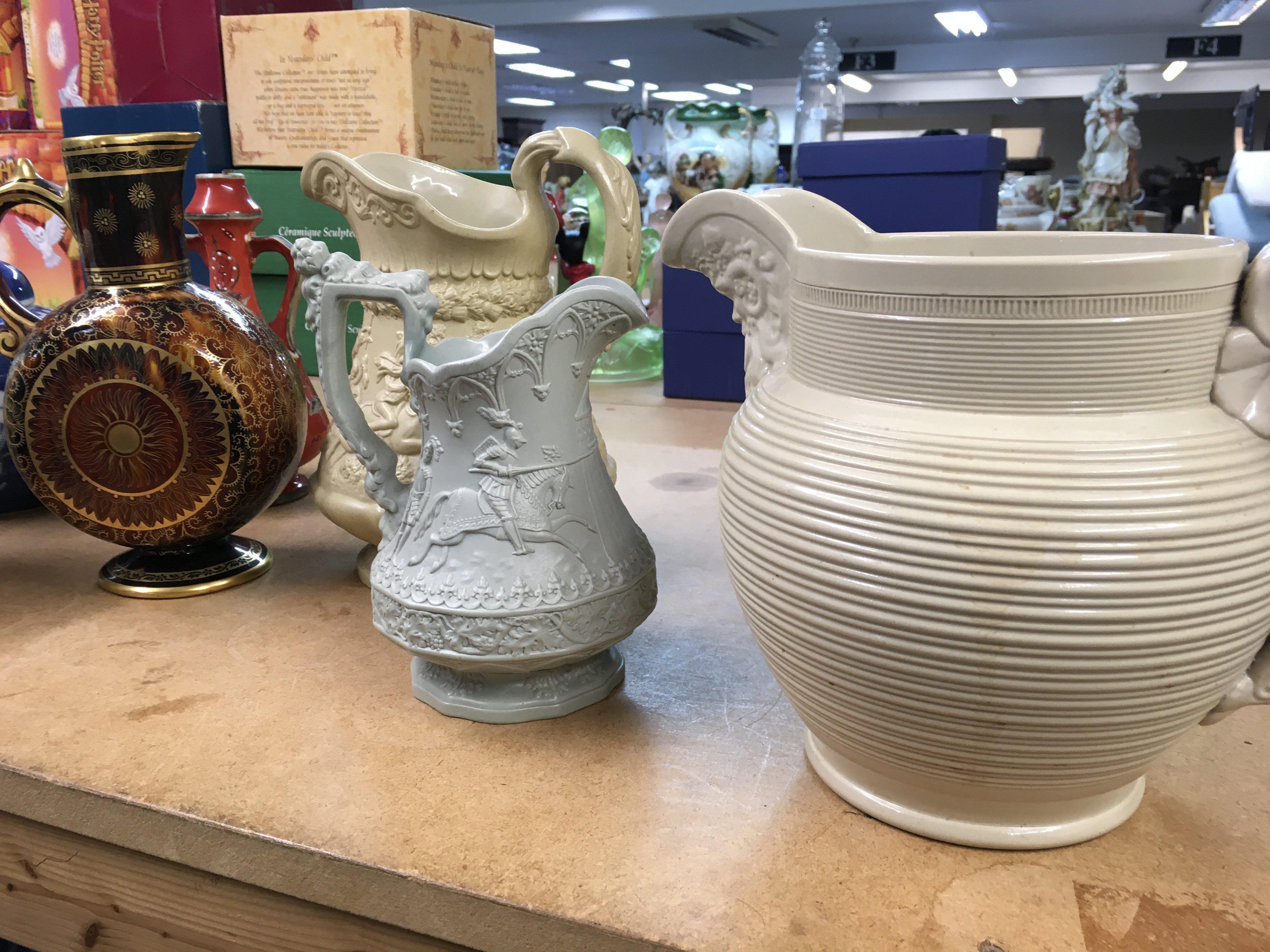 A Collection of ceramics by including jugs later Minton example two vases and a ginger jar and cover,