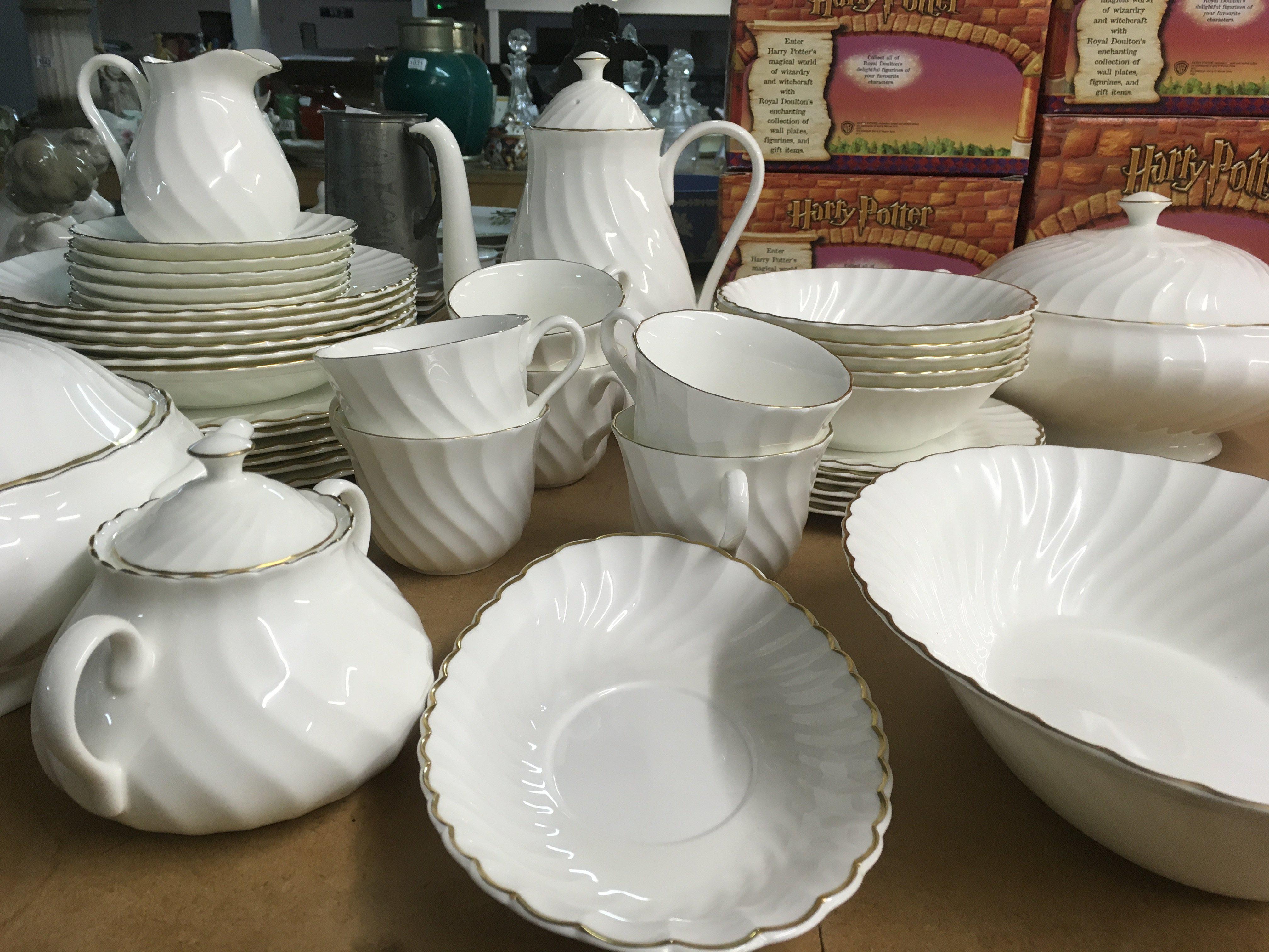 A Wedgwood gold Chelsea service including coffe pot cups saucers and serving dishes.