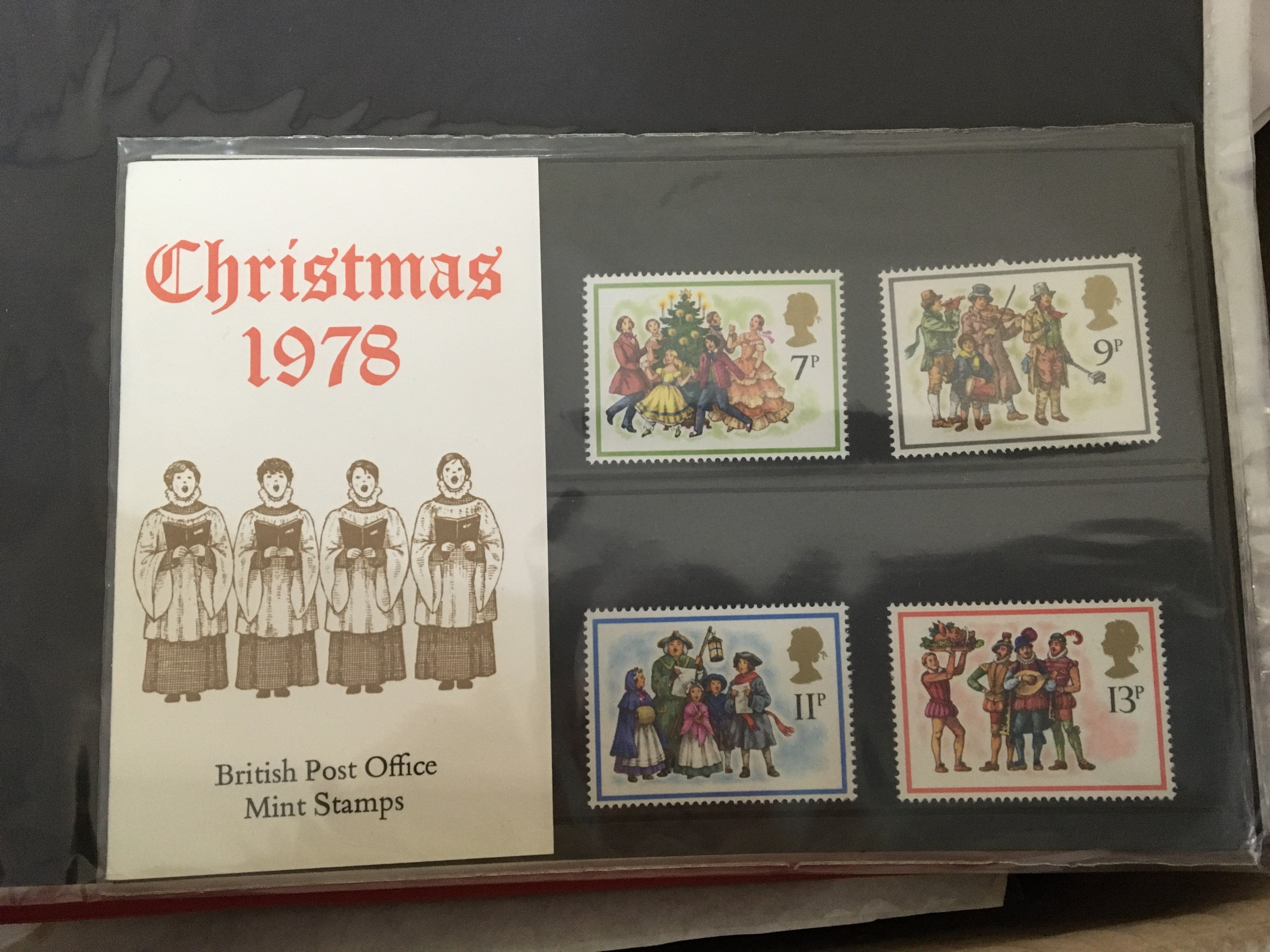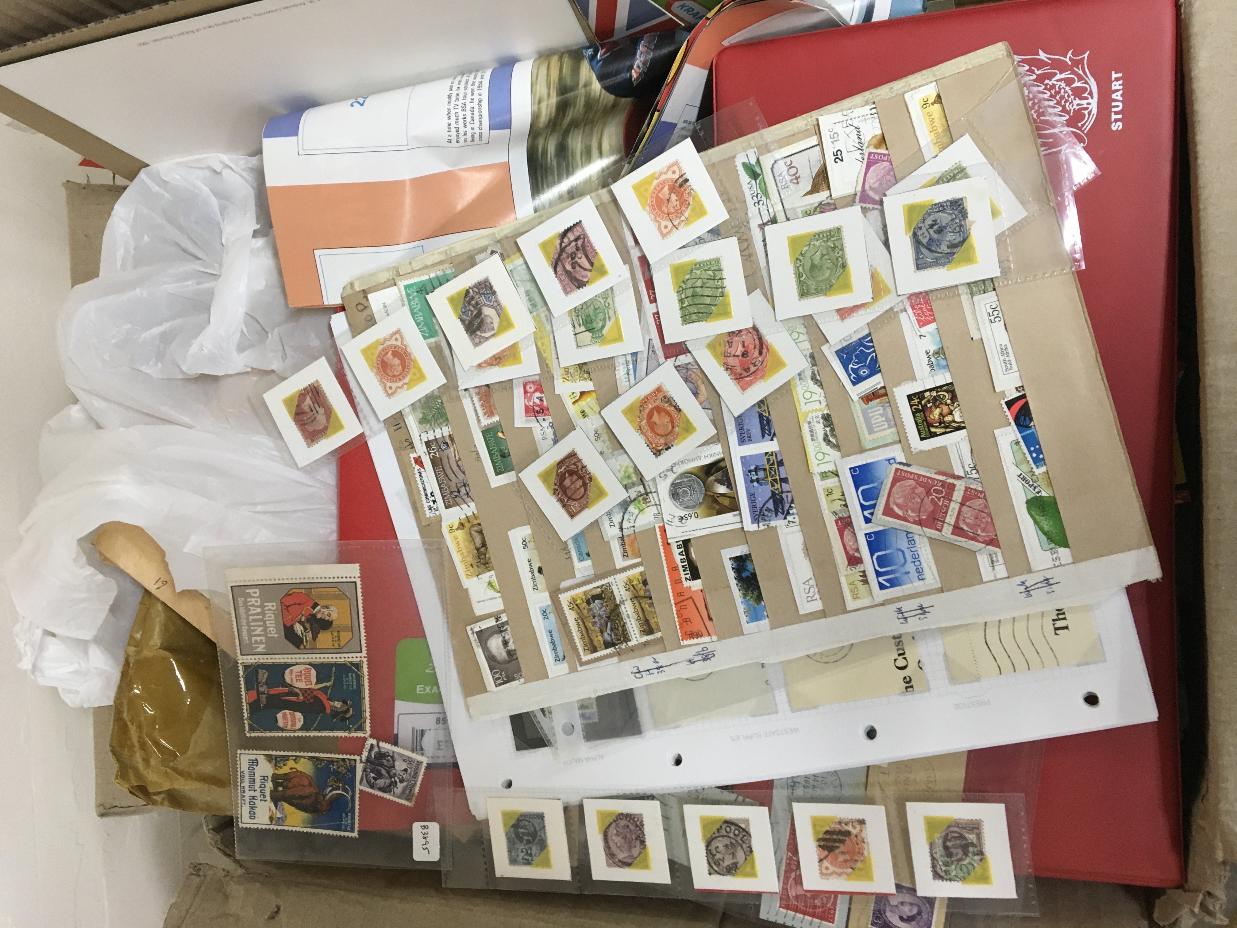 A box containing some presentation packs first day covers vintage playing cards and other ephemera.