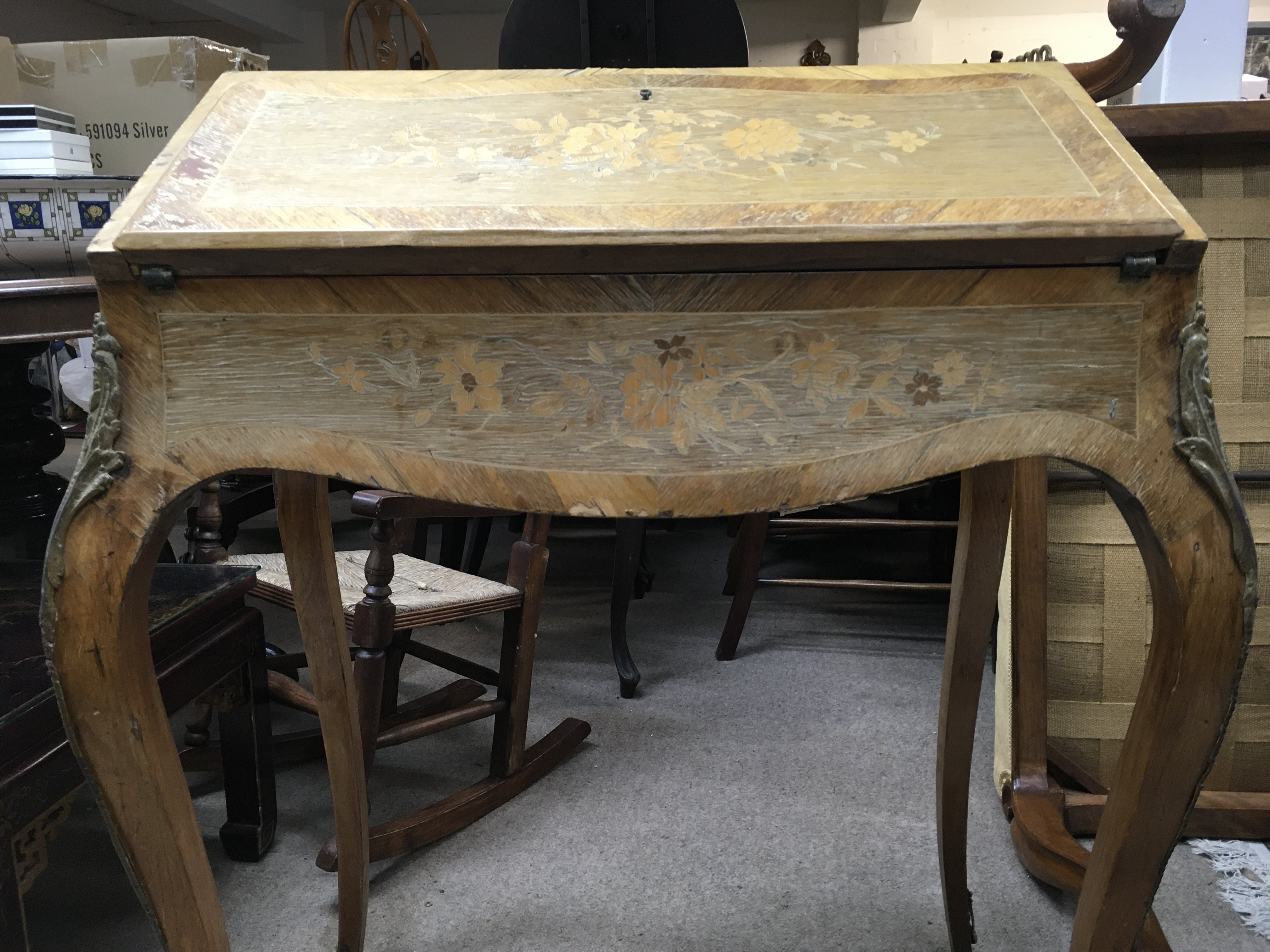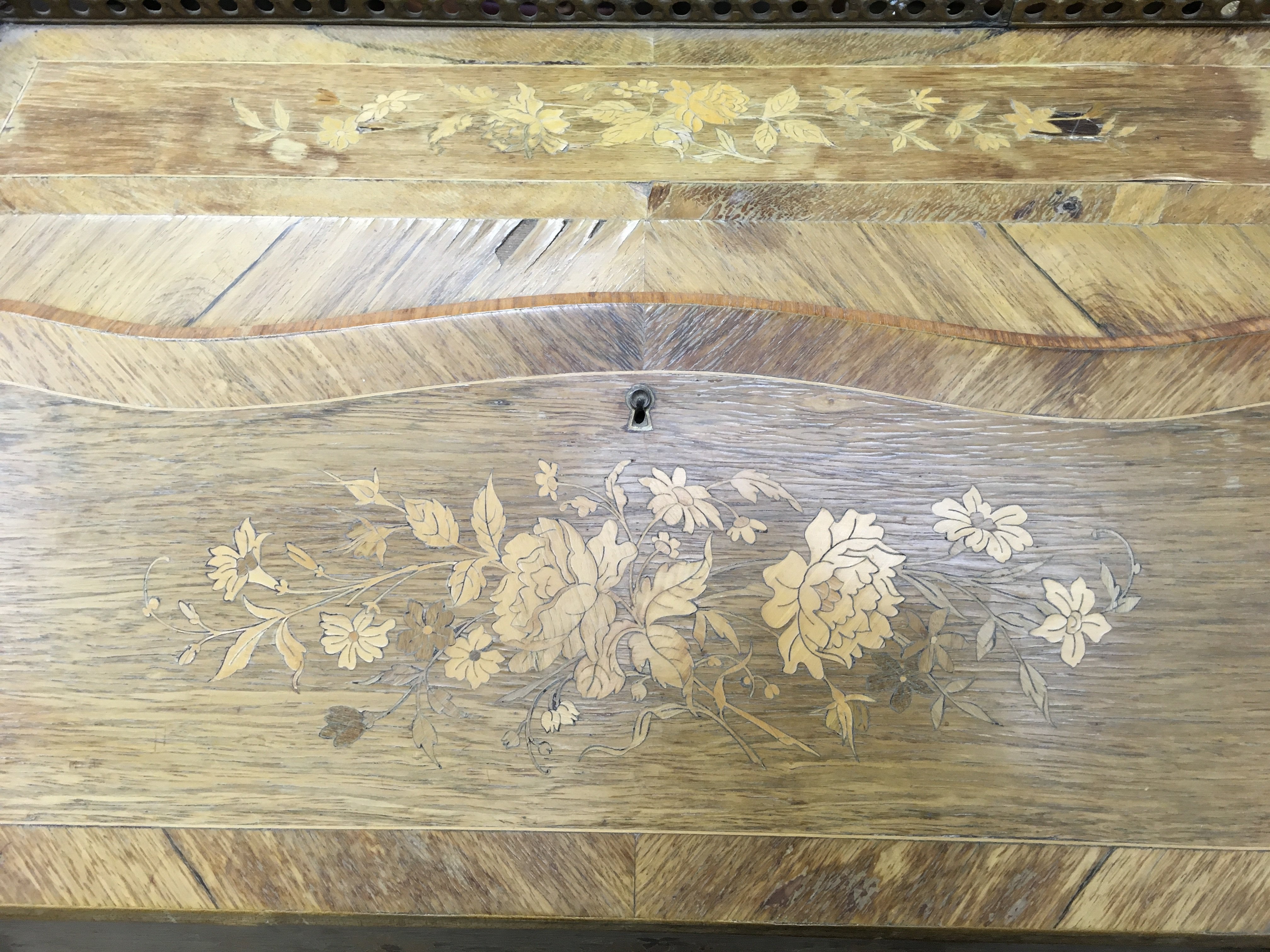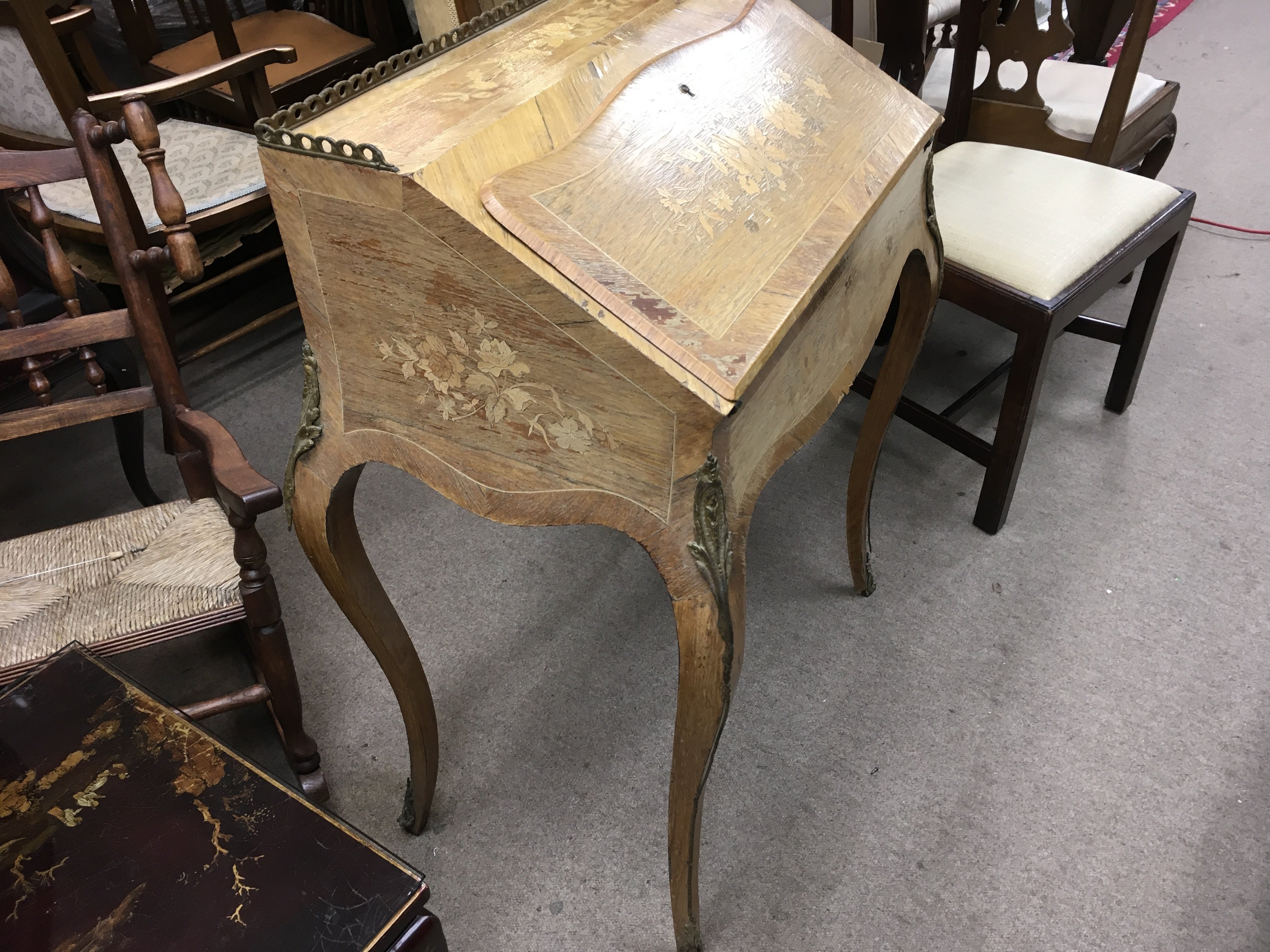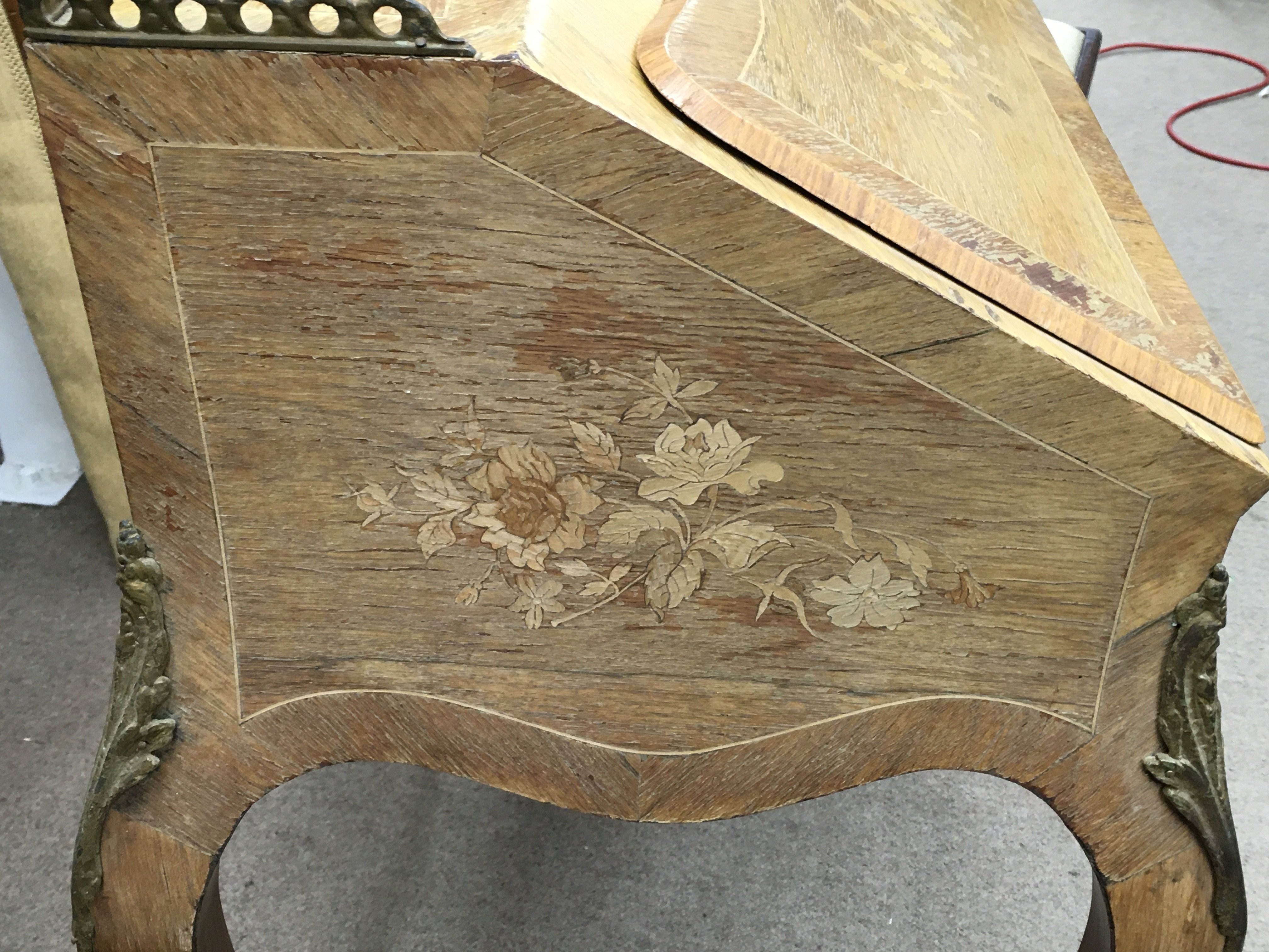 An inlaid french style bureau 66cm wide 90cm tall 46cm deep
