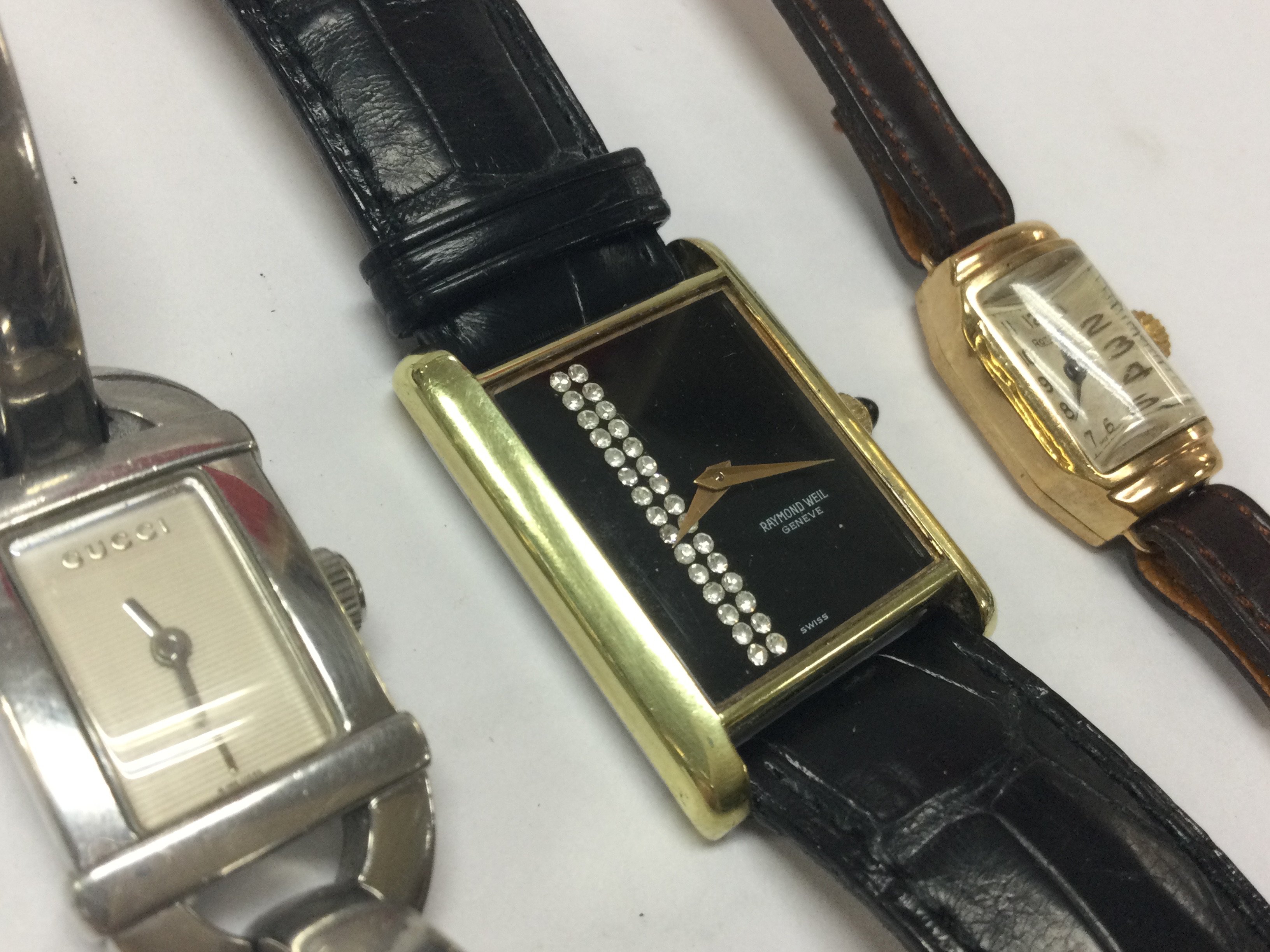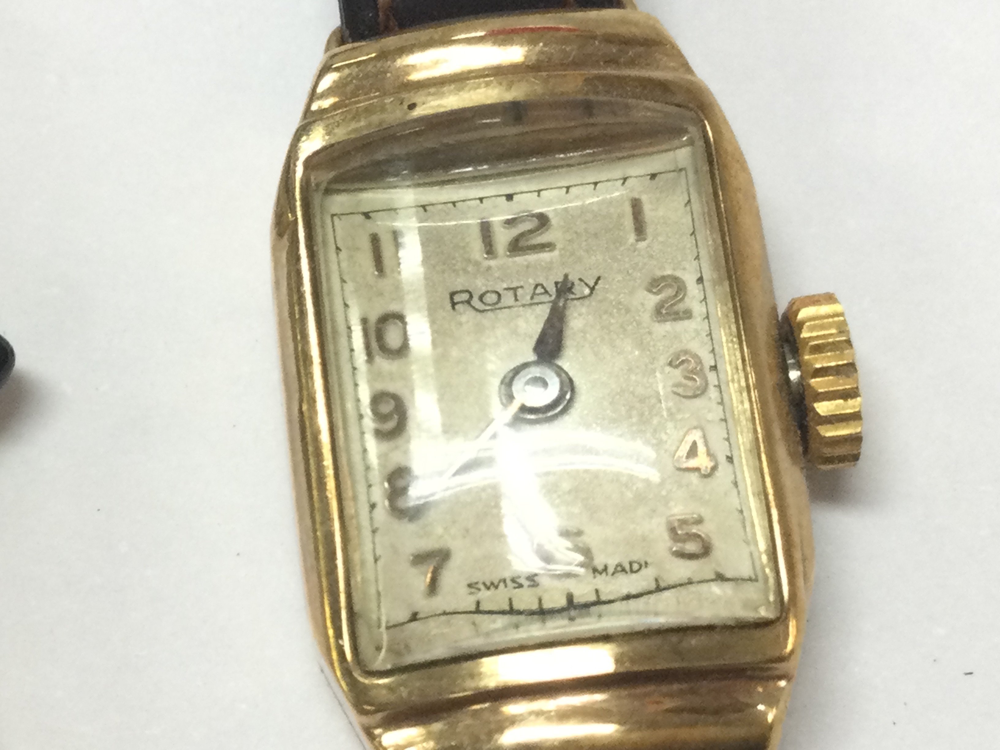 Three ladies watches including a 9 carat gold cased Rotary watch. Postage category A