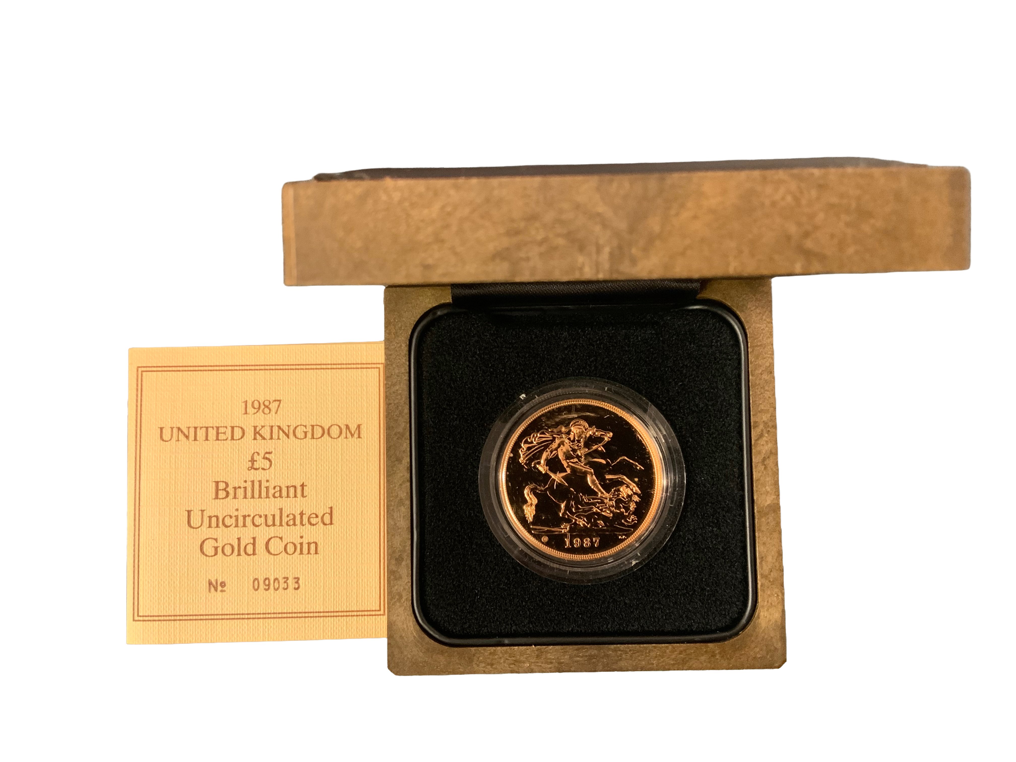 1986. Gold 5 Pound Coin Brilliant Uncirculated Boxed. No.09033