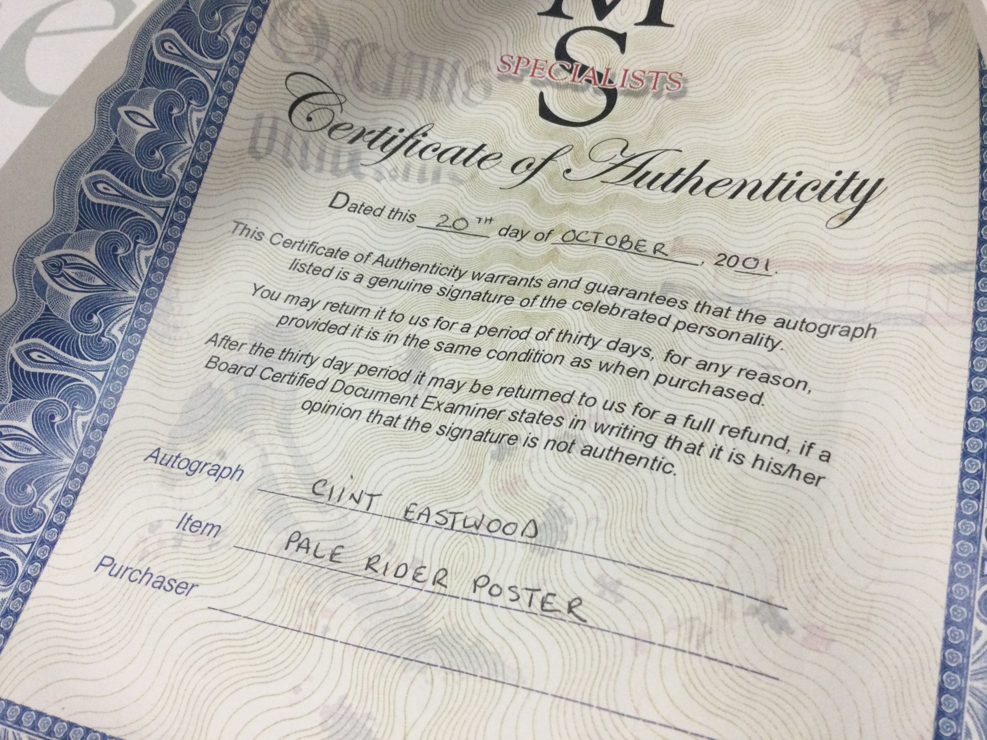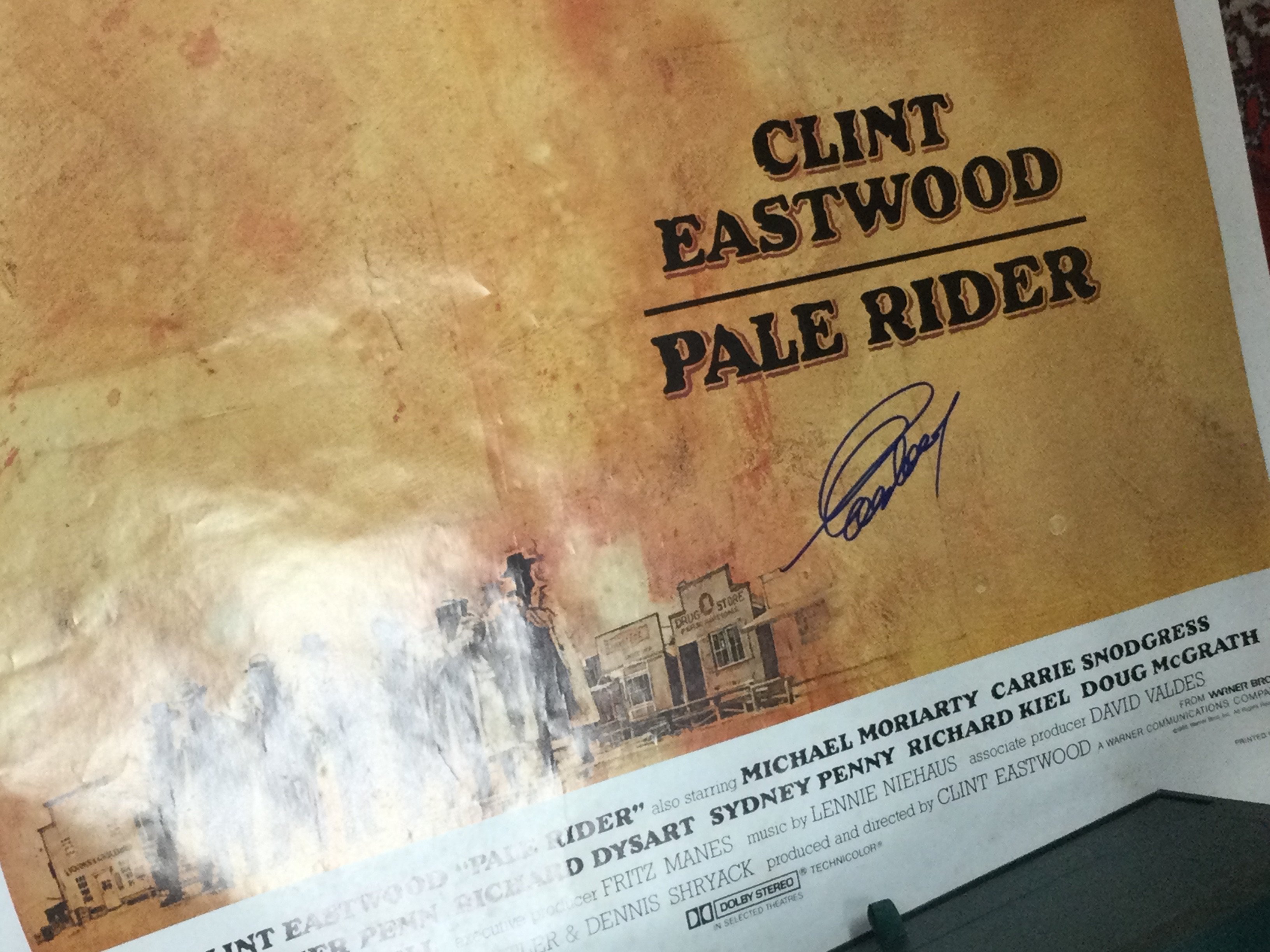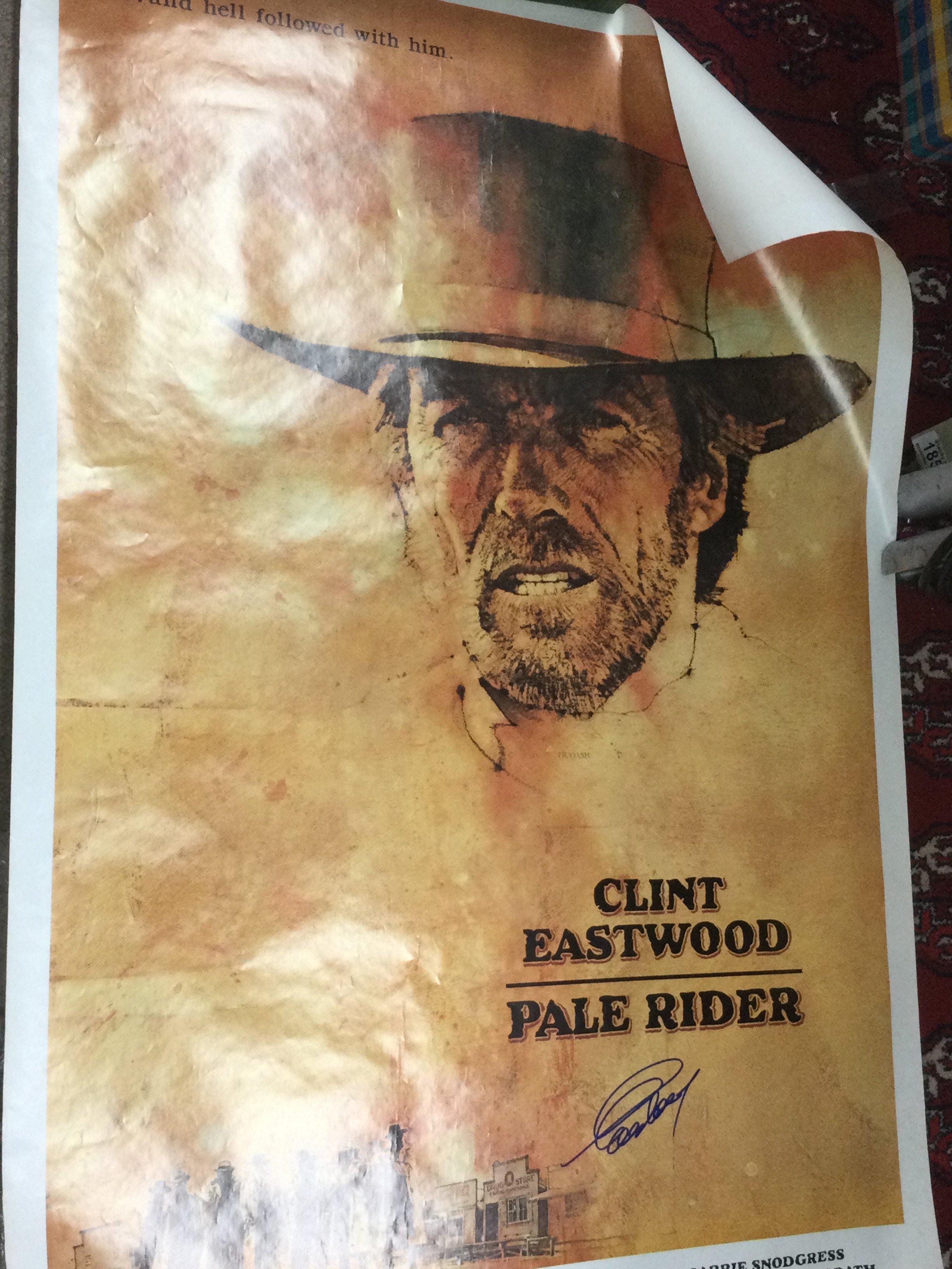 A signed Clint Eastwood Pale Rider movie poster with a certificate of authenticity . Poster dimensions 69x104cm. Postage category B