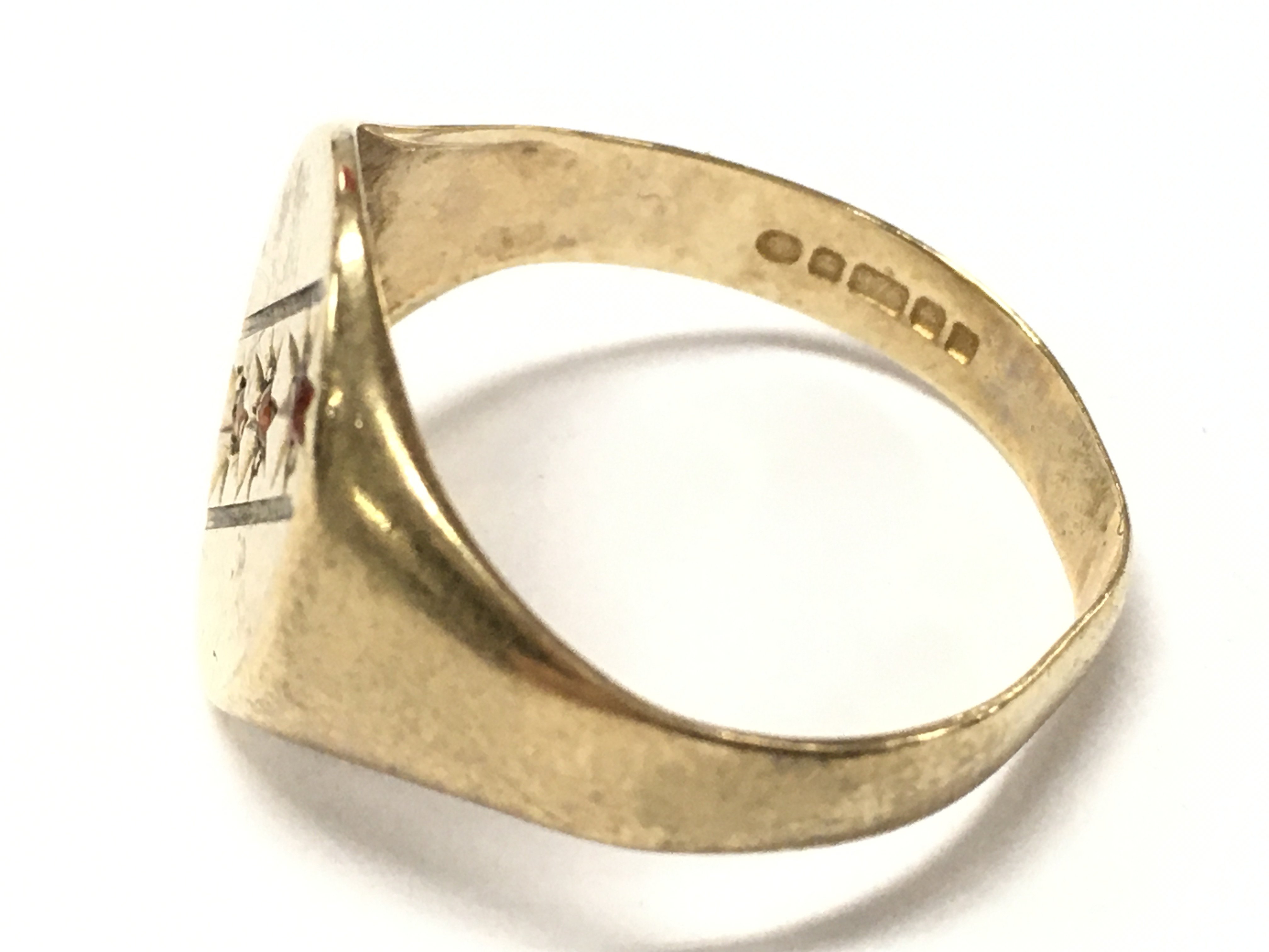 A 9 carat gold garnet signet ring , size Q. 2.2g total weight. Postage category A