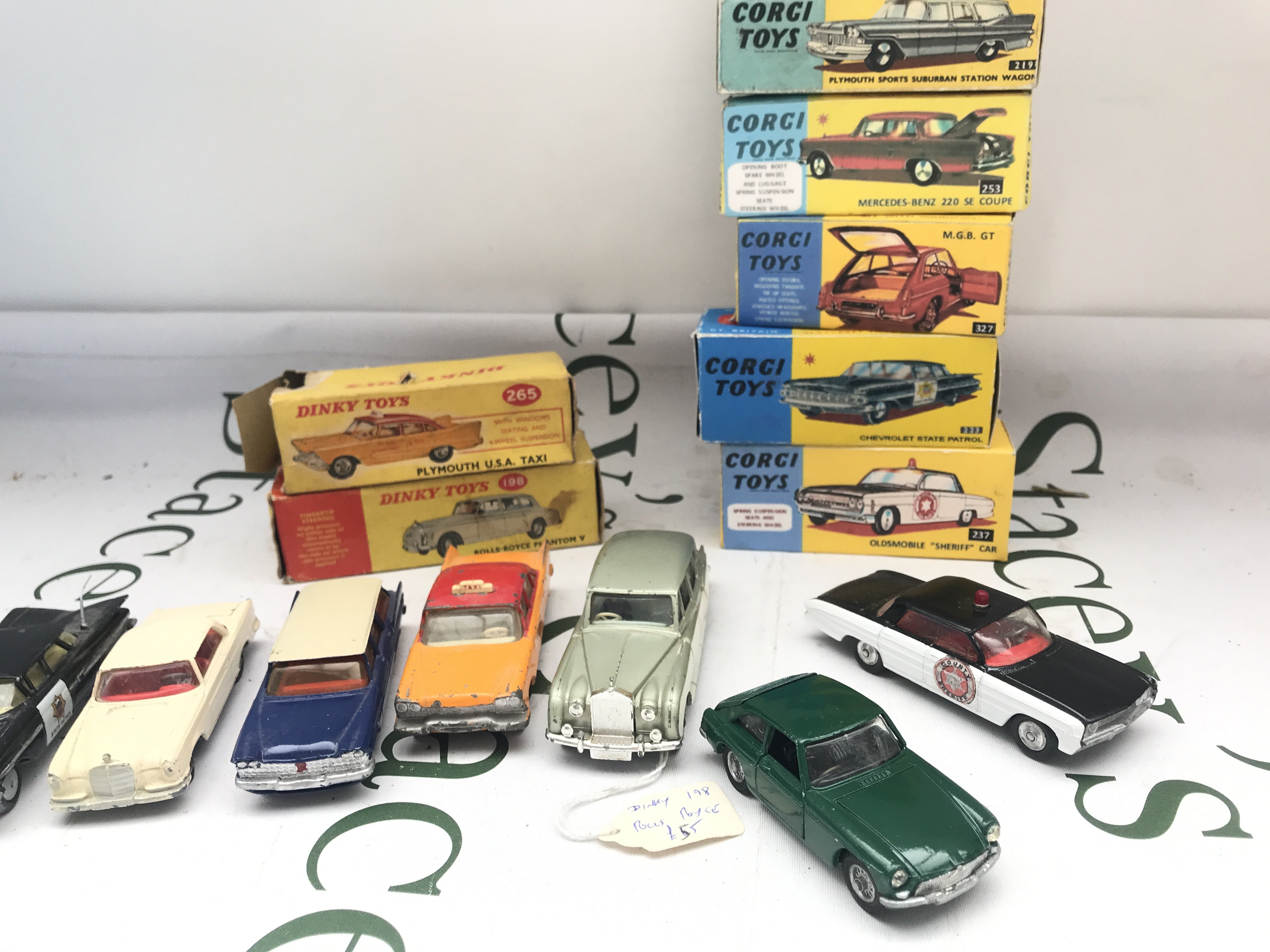A Collection of Boxed Corgi Diecast In Repro Boxes And 2 Dinky Cars In Original Boxes. No Reserve.
