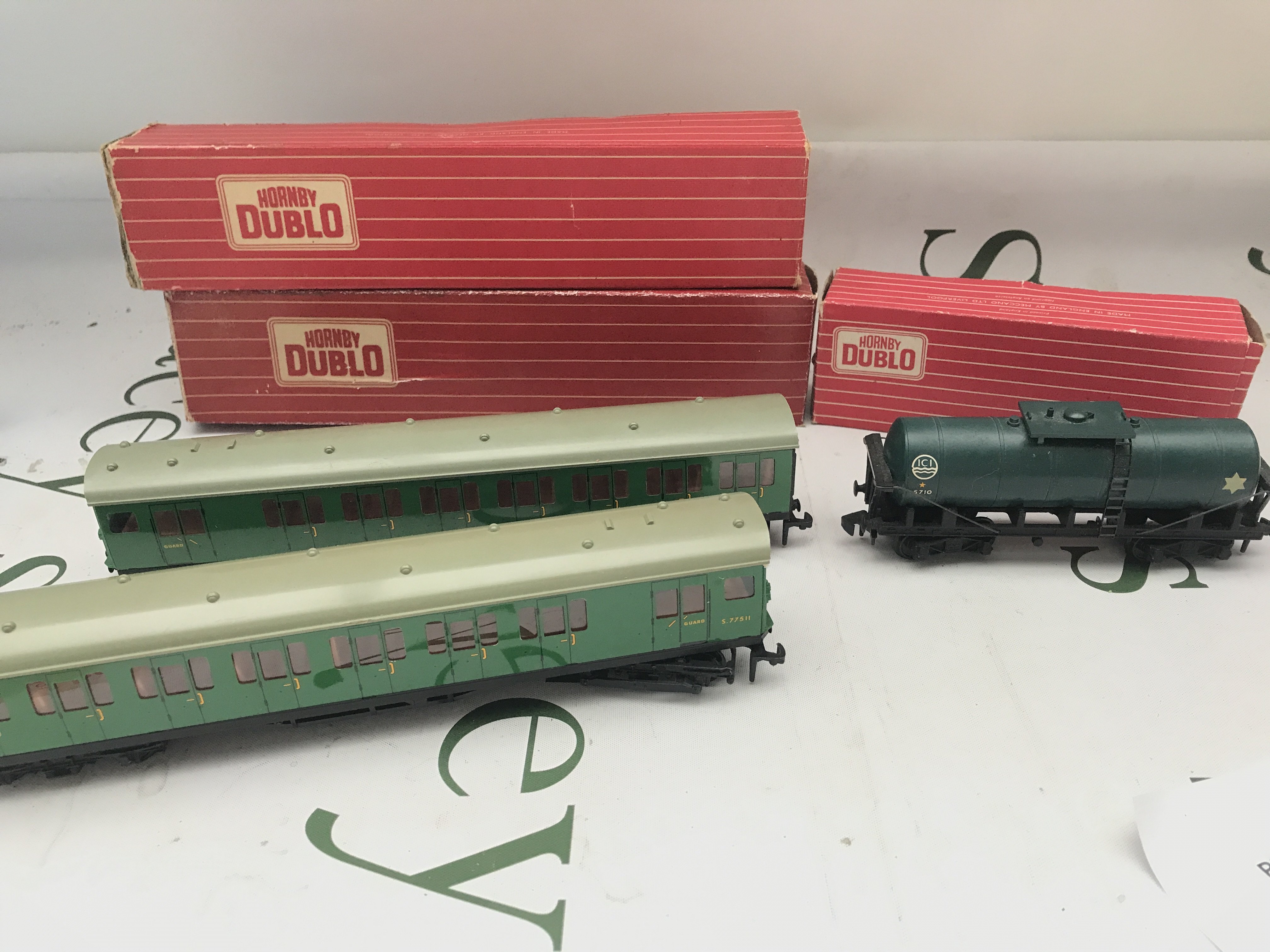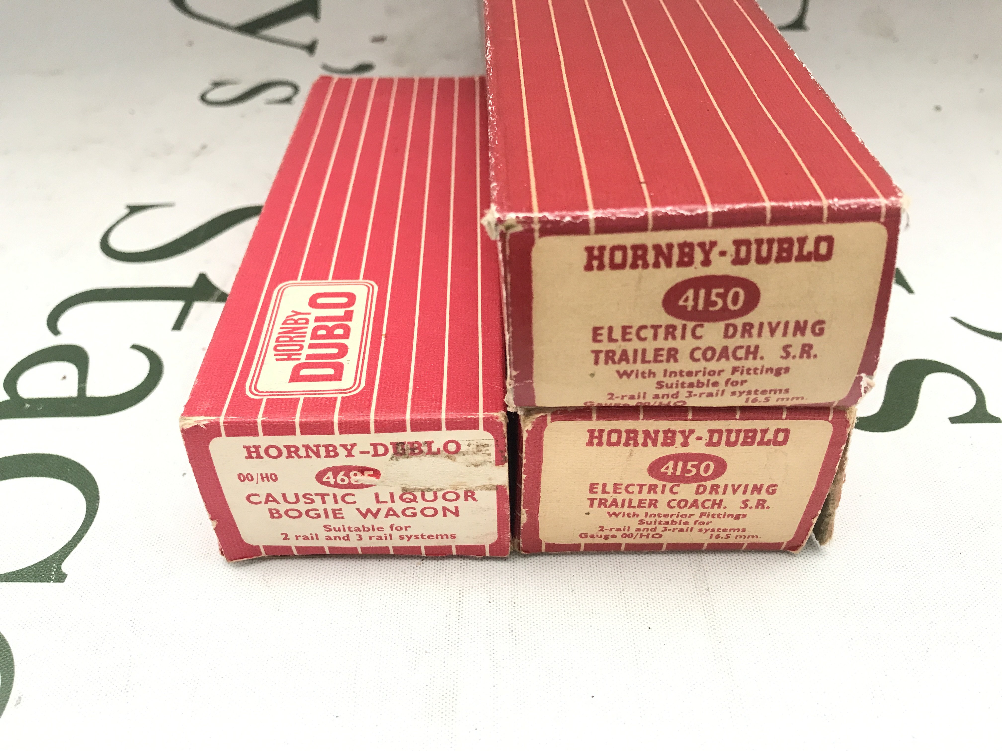 2 Boxed Hornby Dublo 00 Gauge Electric Driving Coaches #4250 And A Rare Dimond bogie Caustic Tanker.