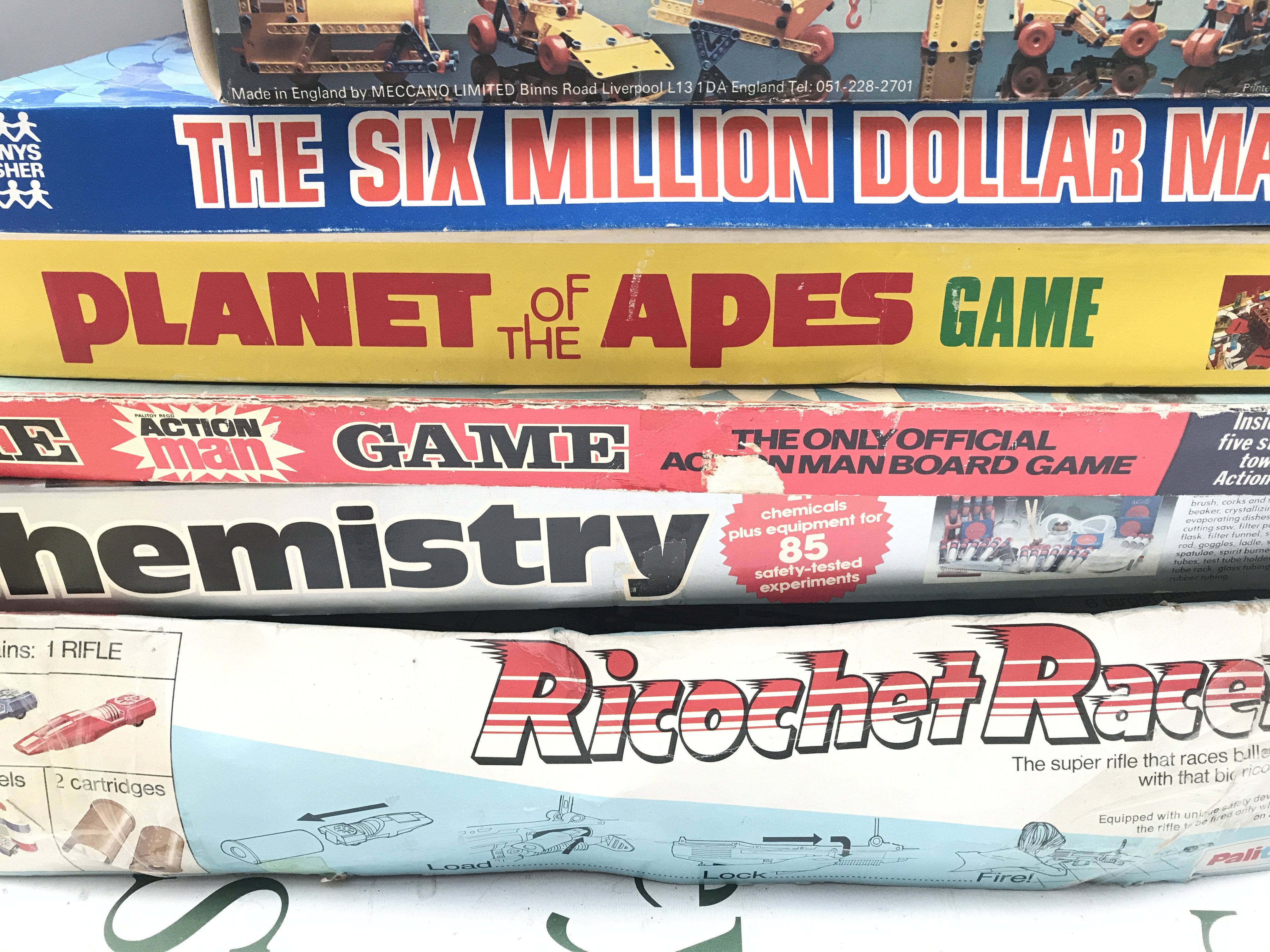 A Collection Of Board Games. A Chemistry Set. A Palitoy Ricochet Racers Etc. No Reserve.