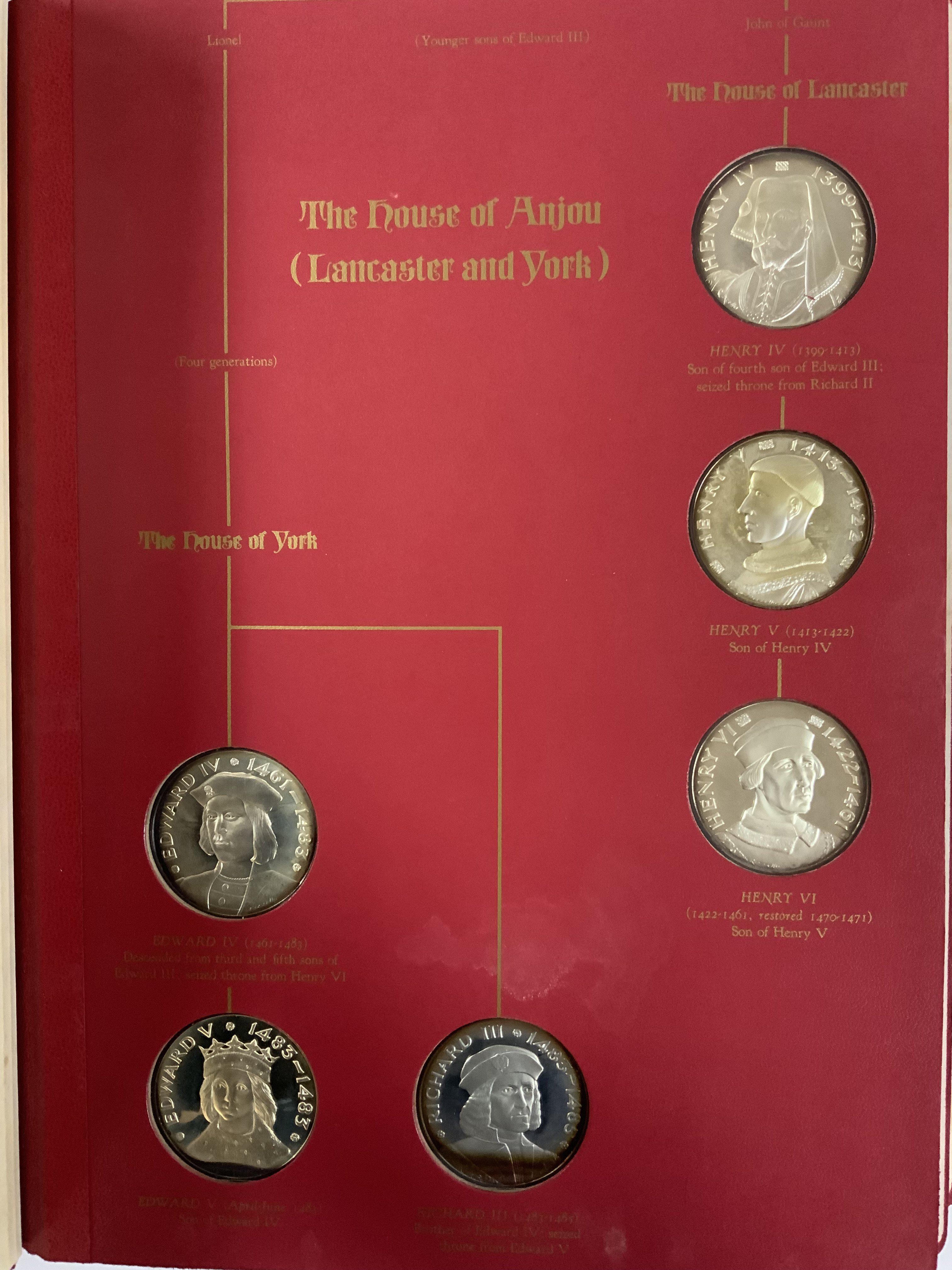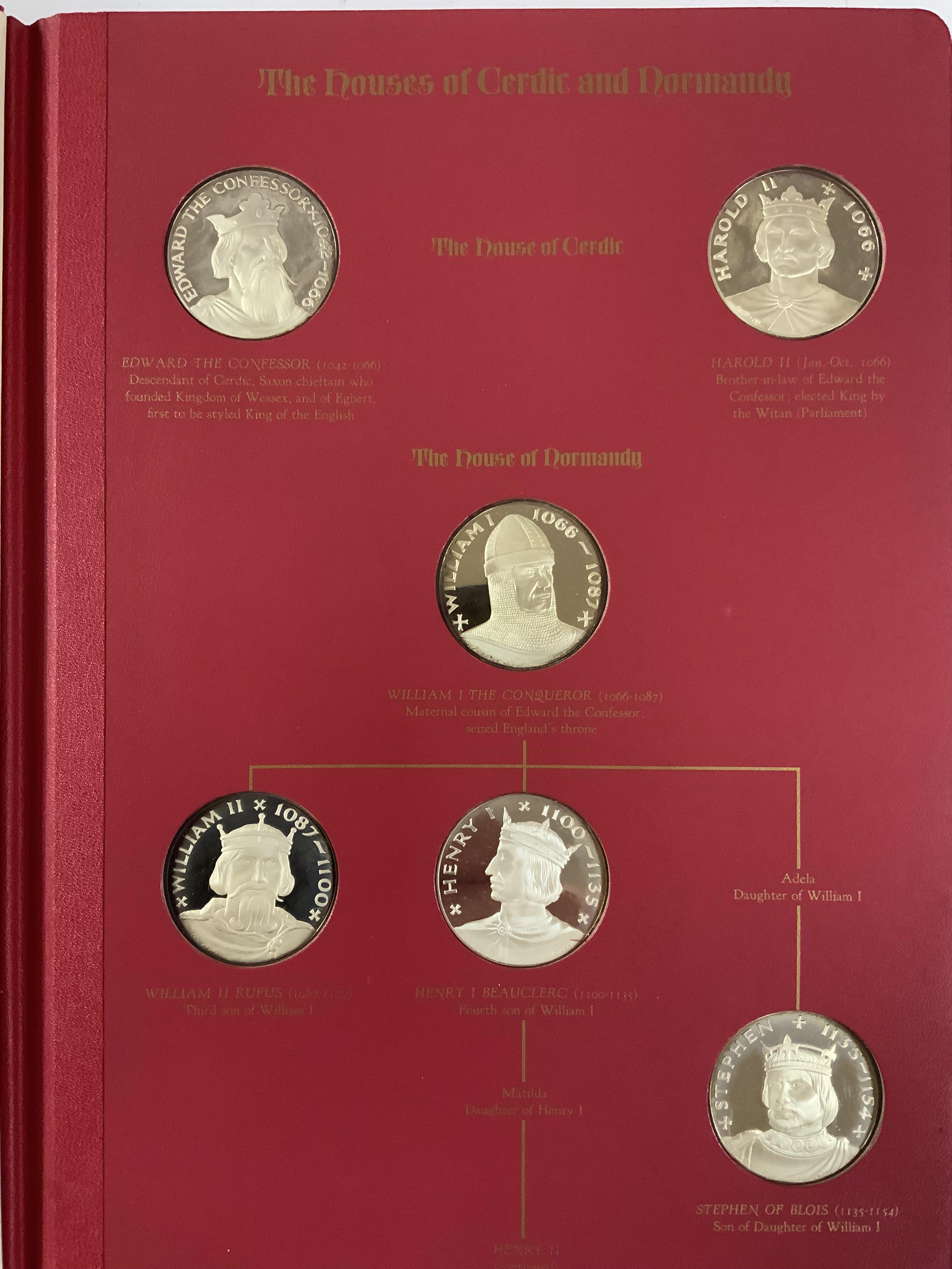 The Kings and Queens of England, a set of 43 sterling silver Medallions struck by John Pinches.