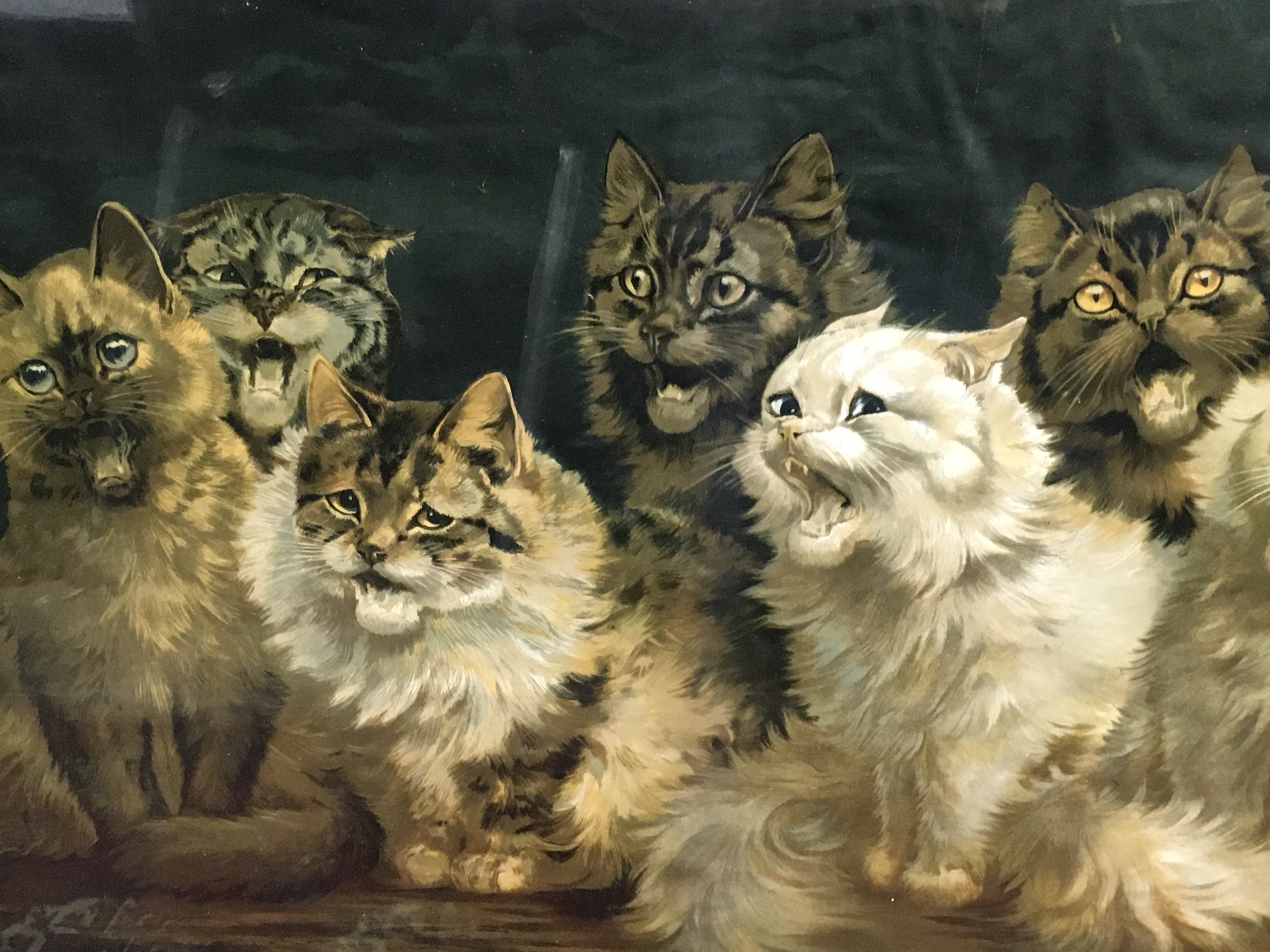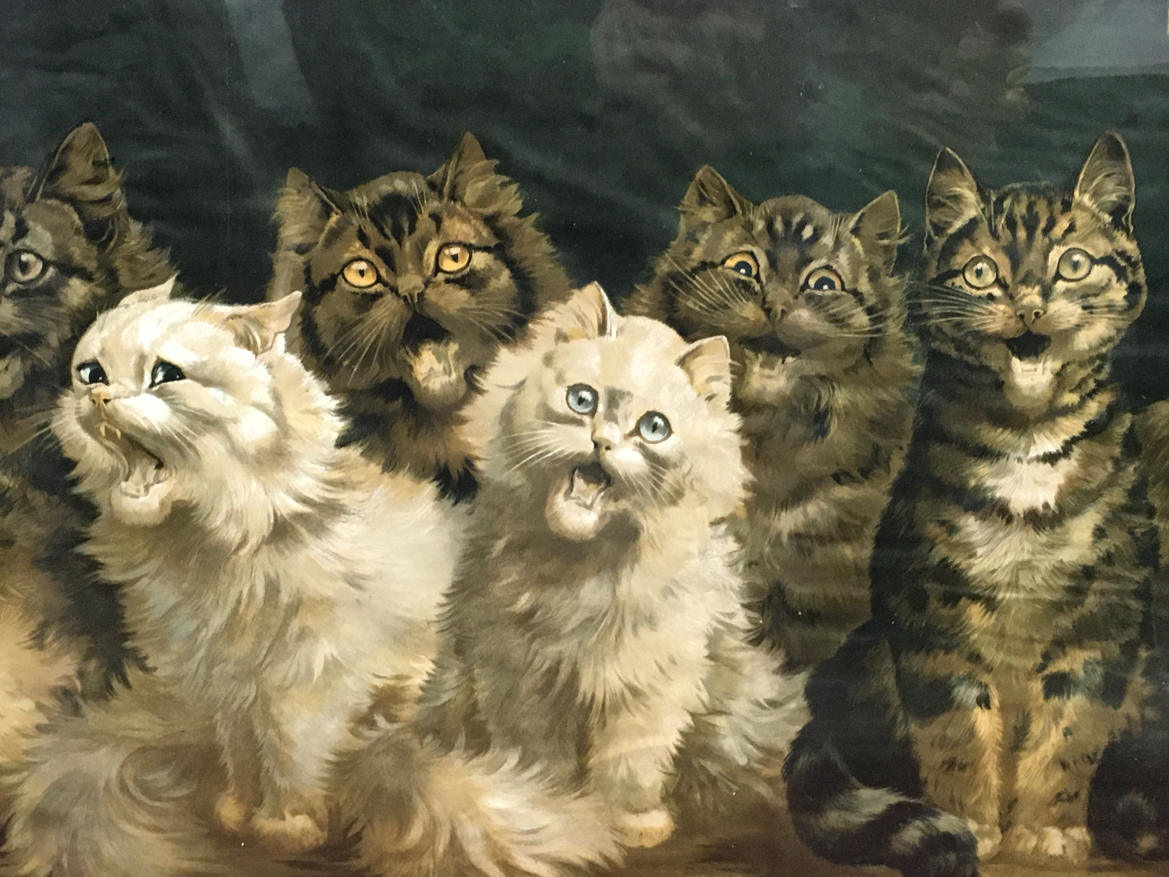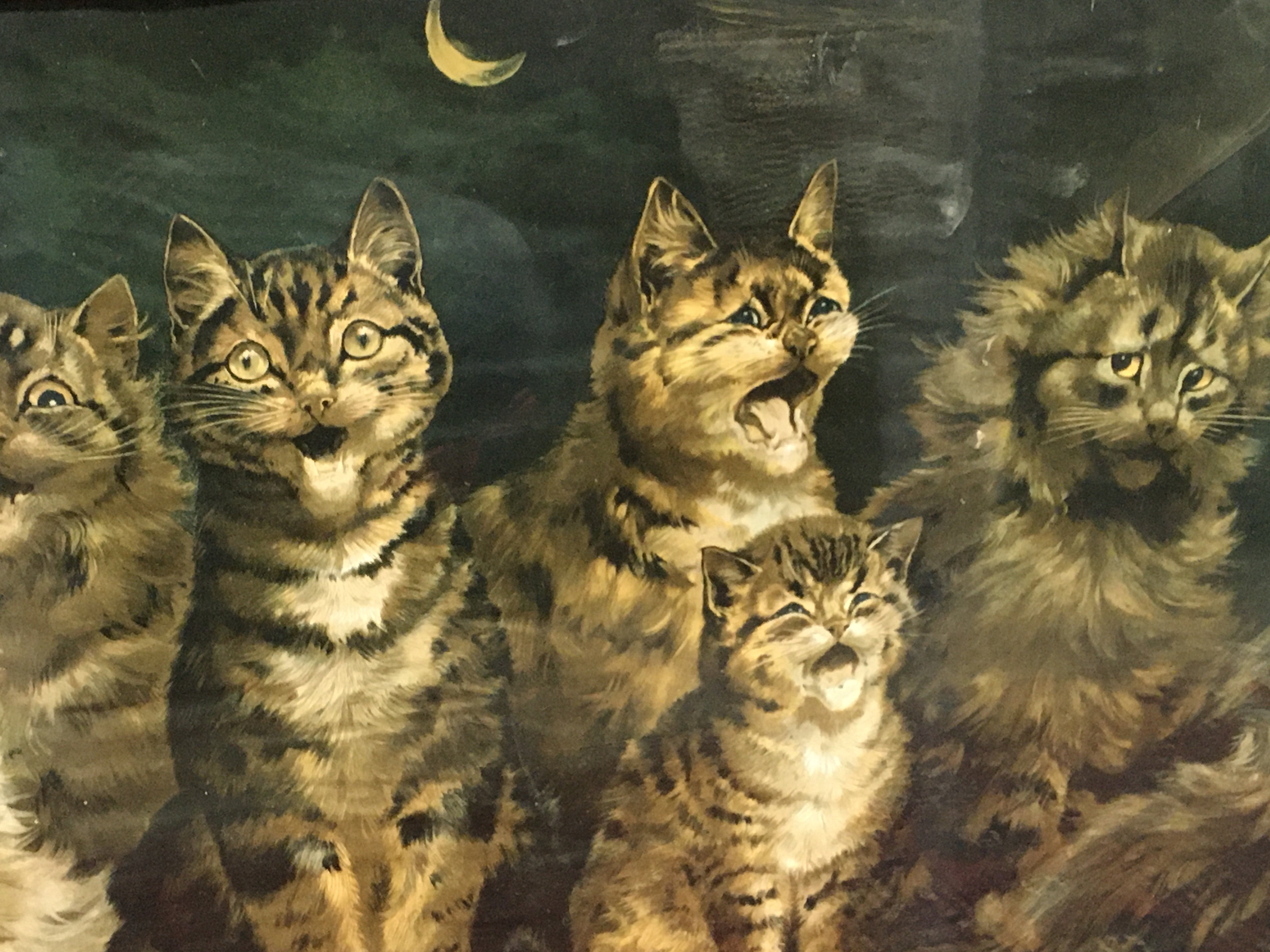 A framed Louis Wain (1860-1939) Cats chorus by moonlight print. Frame dimensions 102x46cm