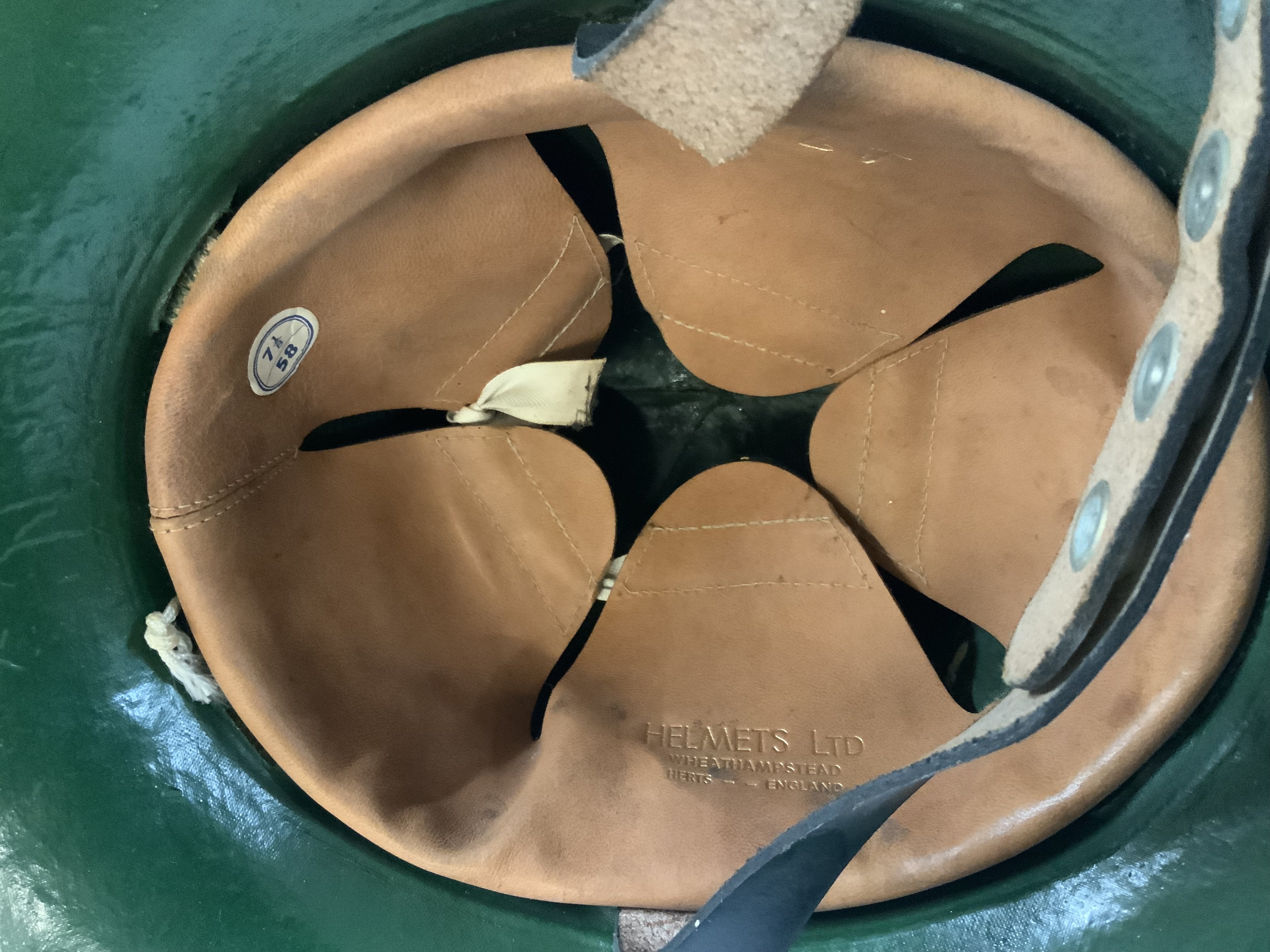 An Antique London Fire Brigade helmet together with a silver and enamel fob.