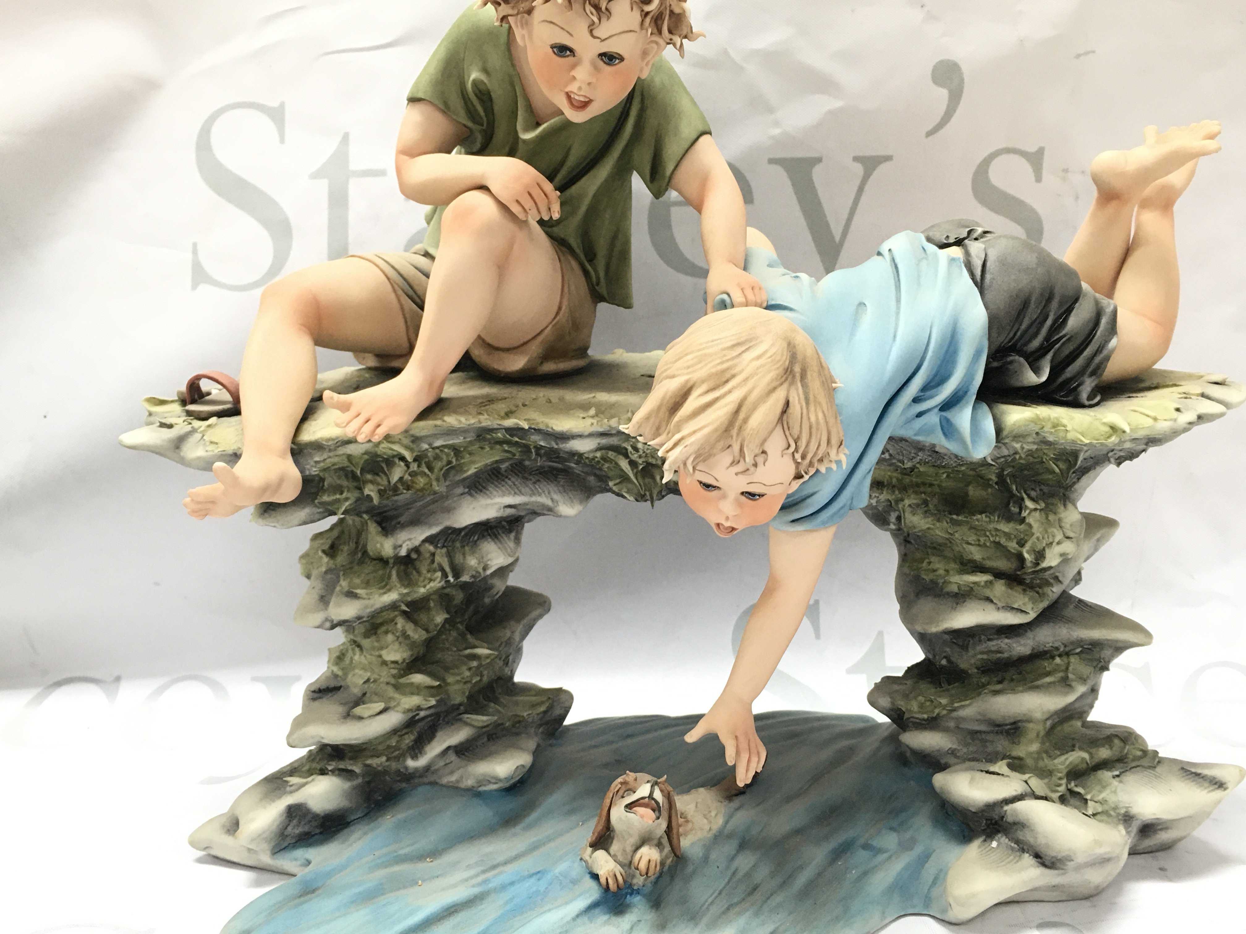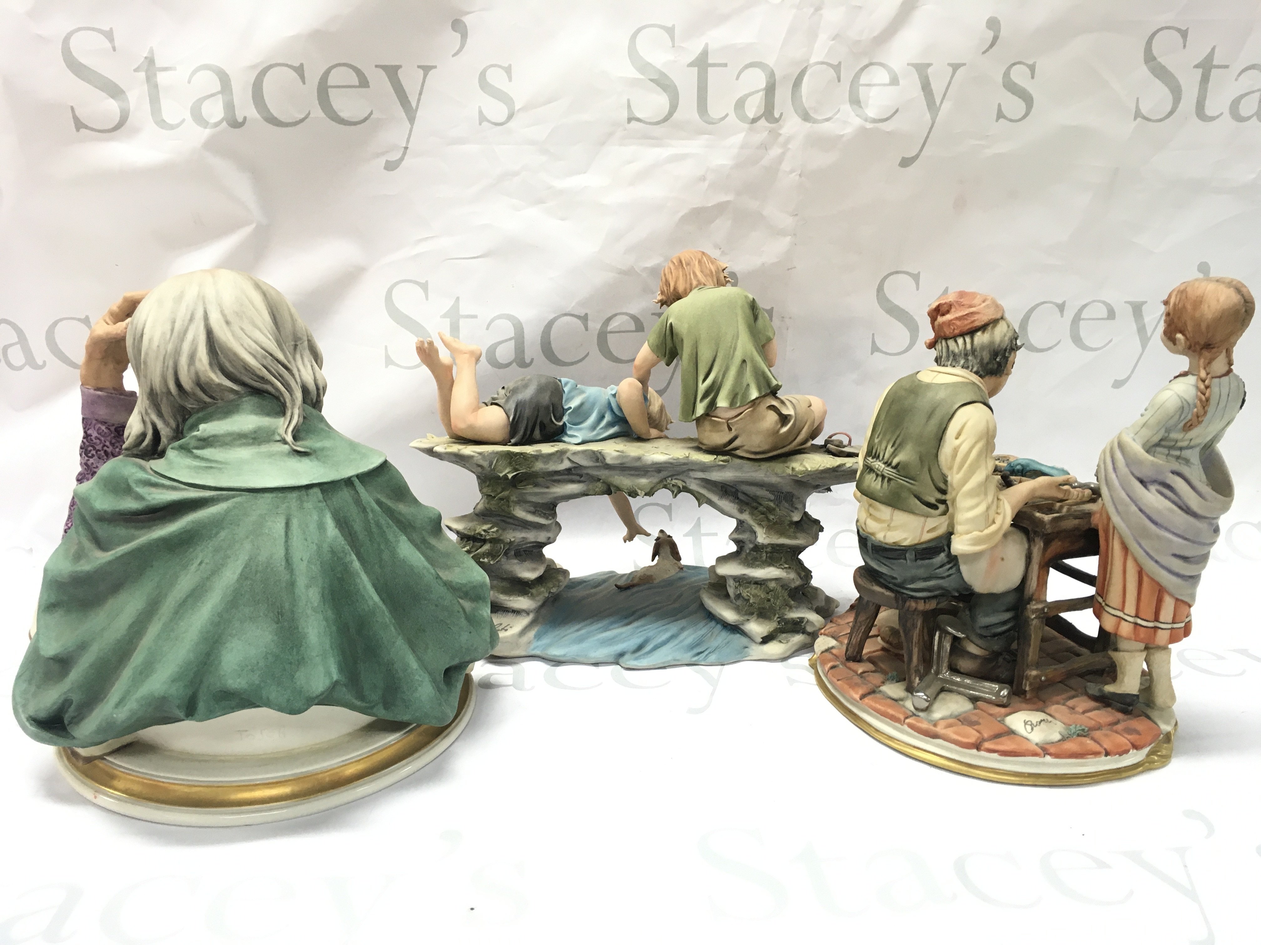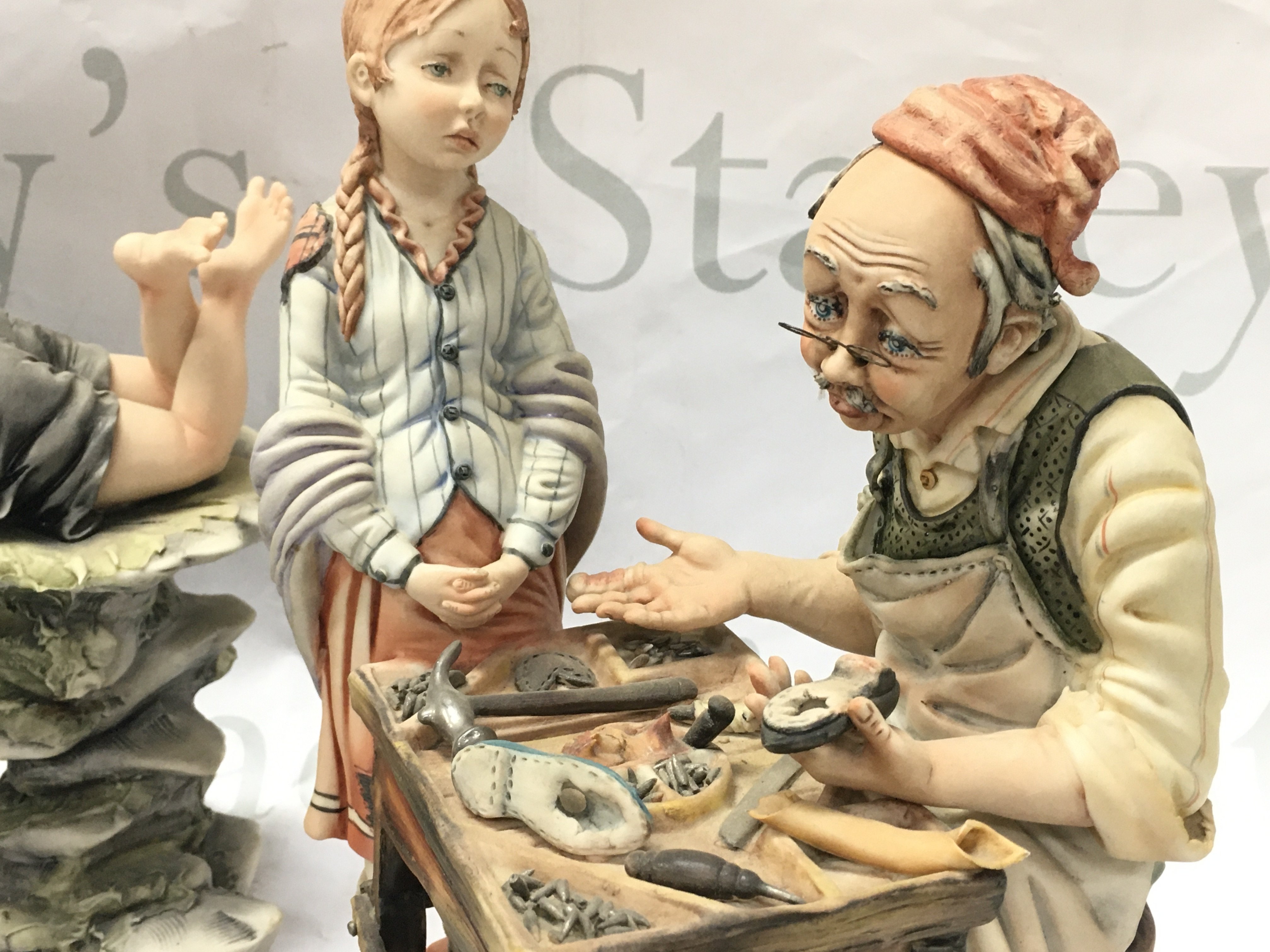 Capodimonte figures including the writer, Cobbler, boys Saving dog. Tallest 24cm tall. This lot cannot be posted