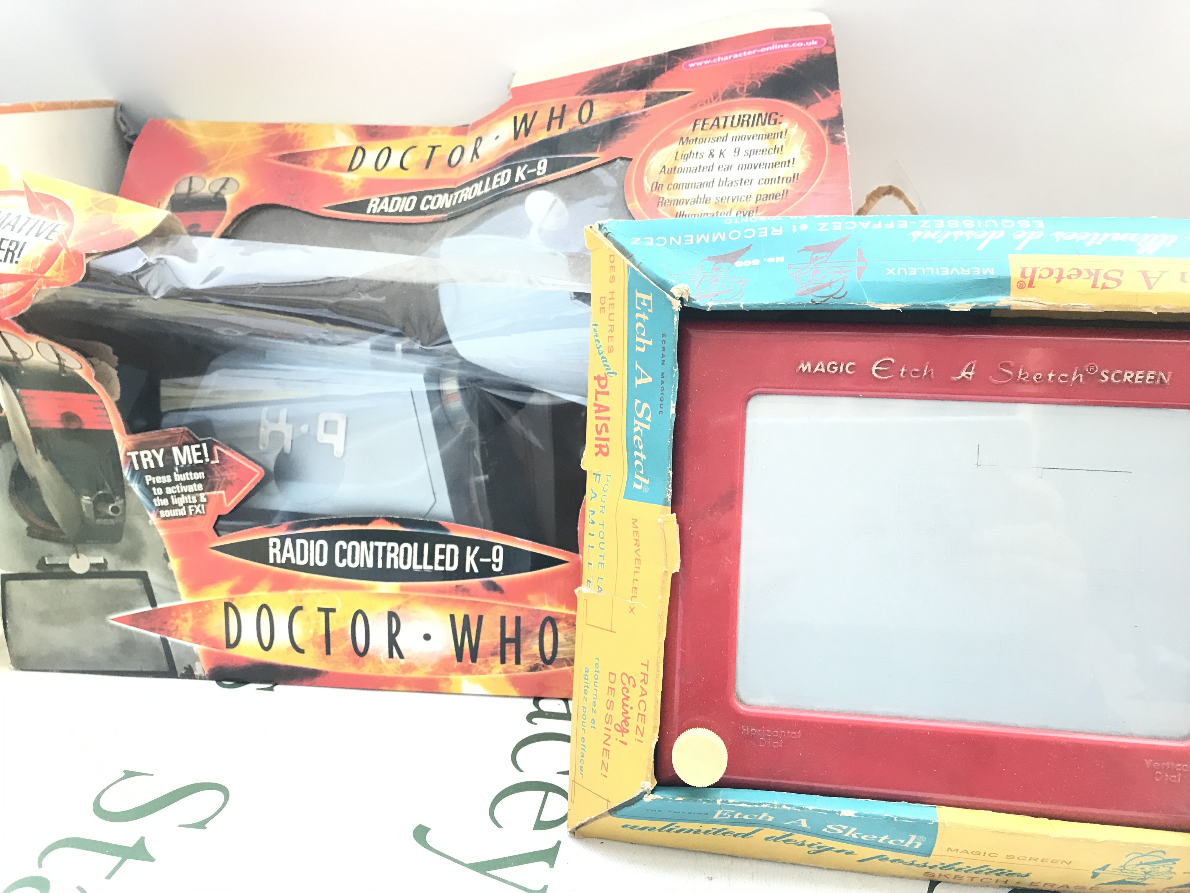 A Collection of Various Toys Including A Boxed K-9 (Box Is Worn). A Space 1999 Bagatelle Pinball. An Early Etch-A-Scetch Etc.
