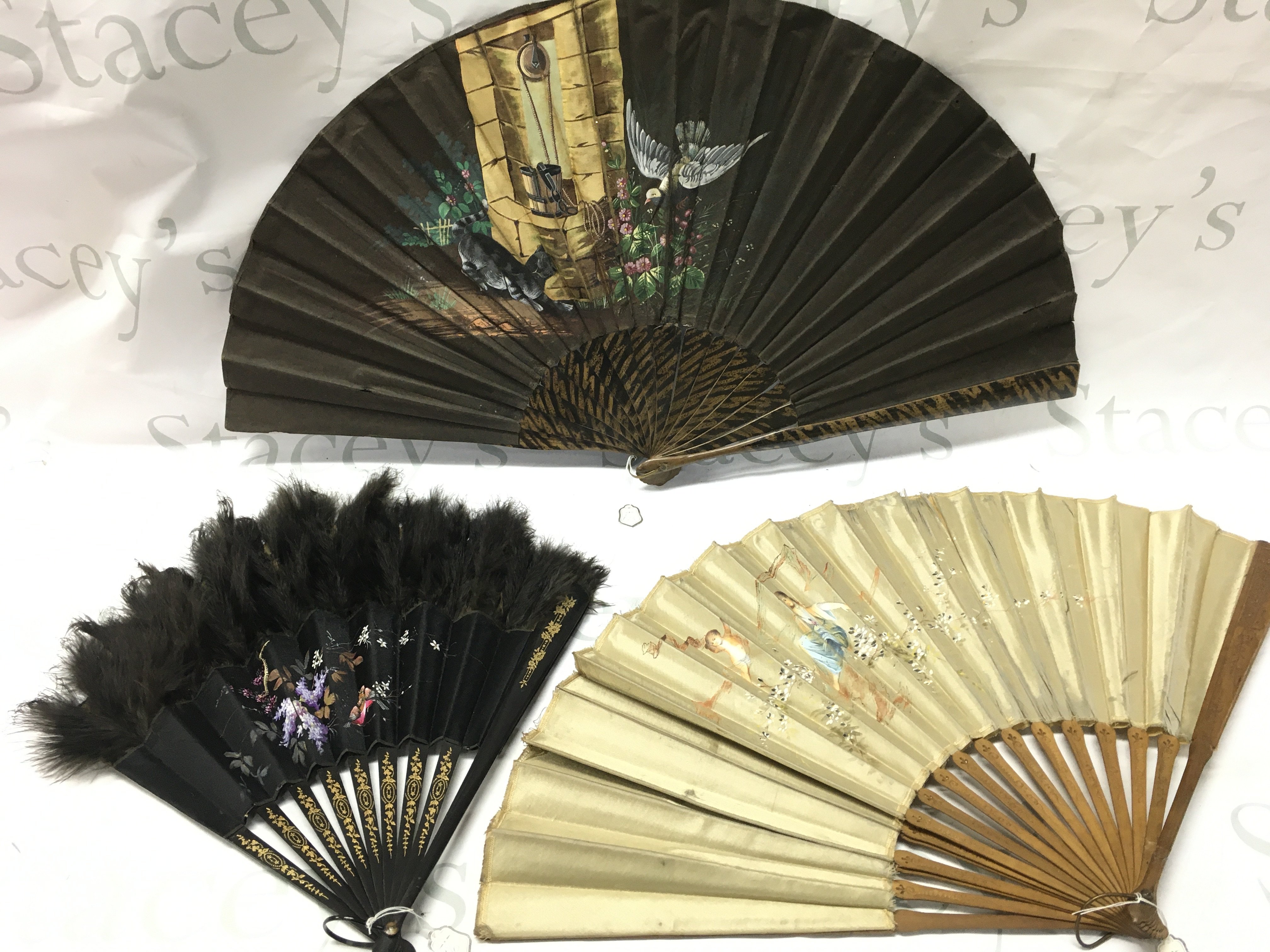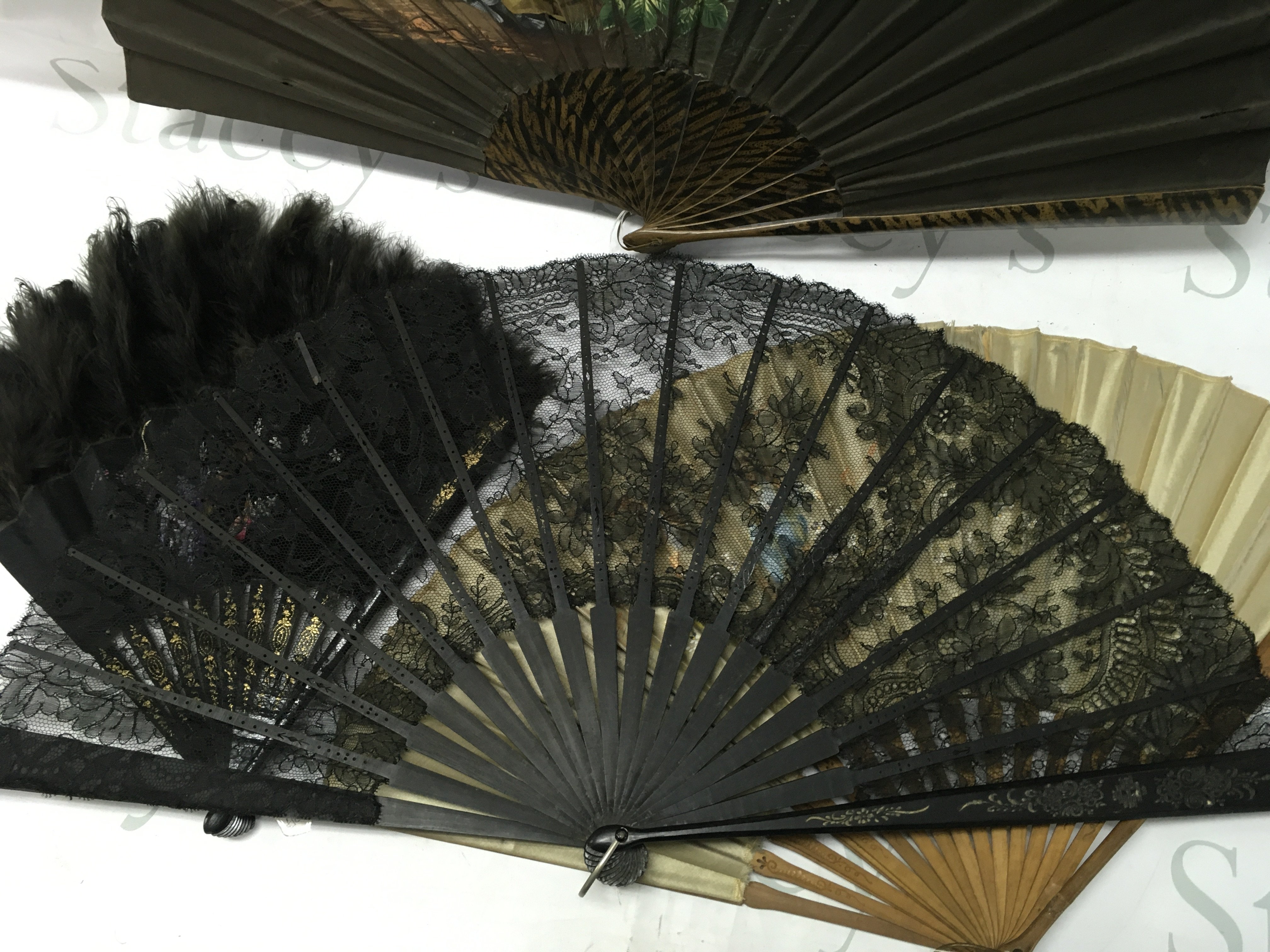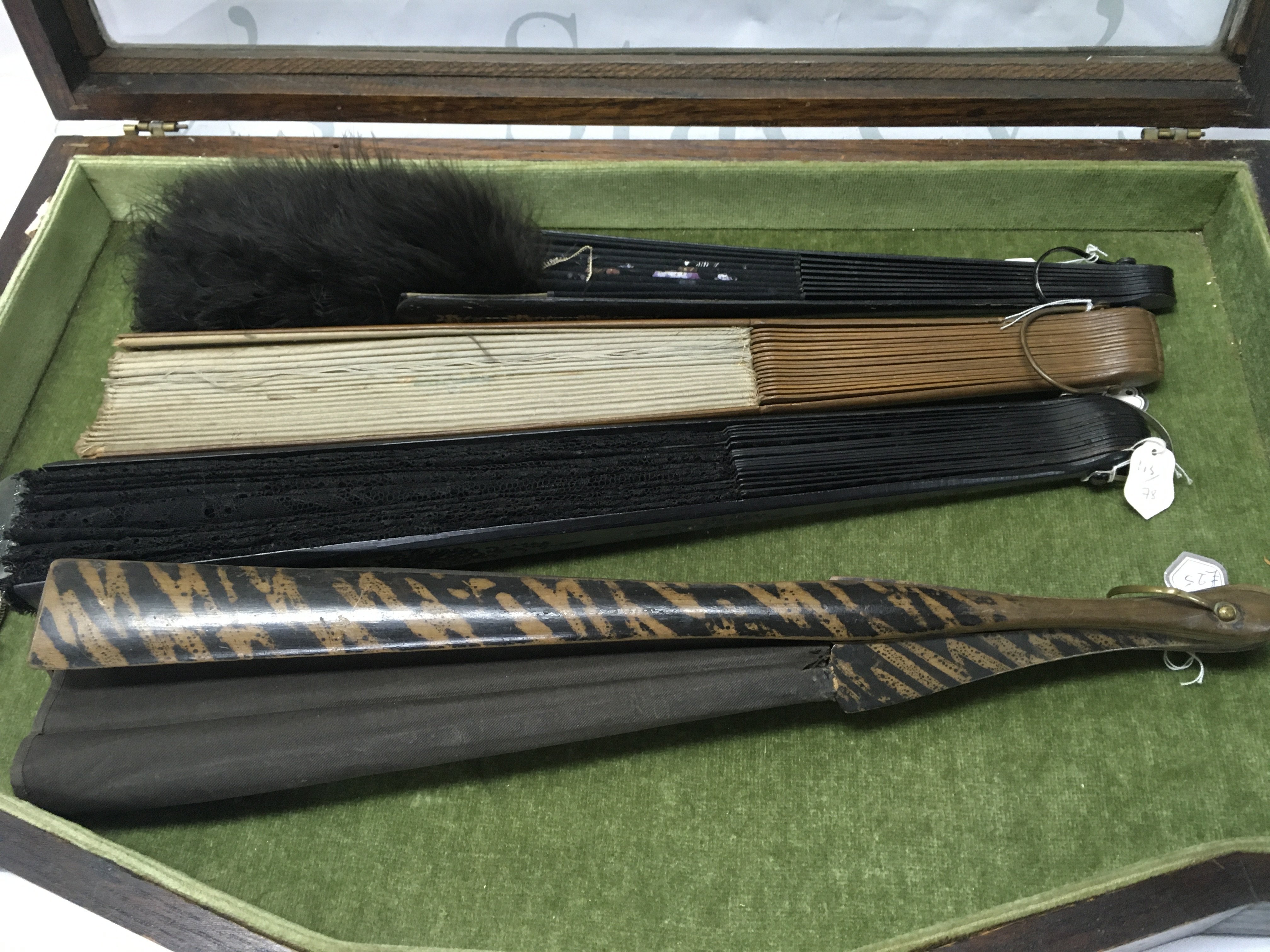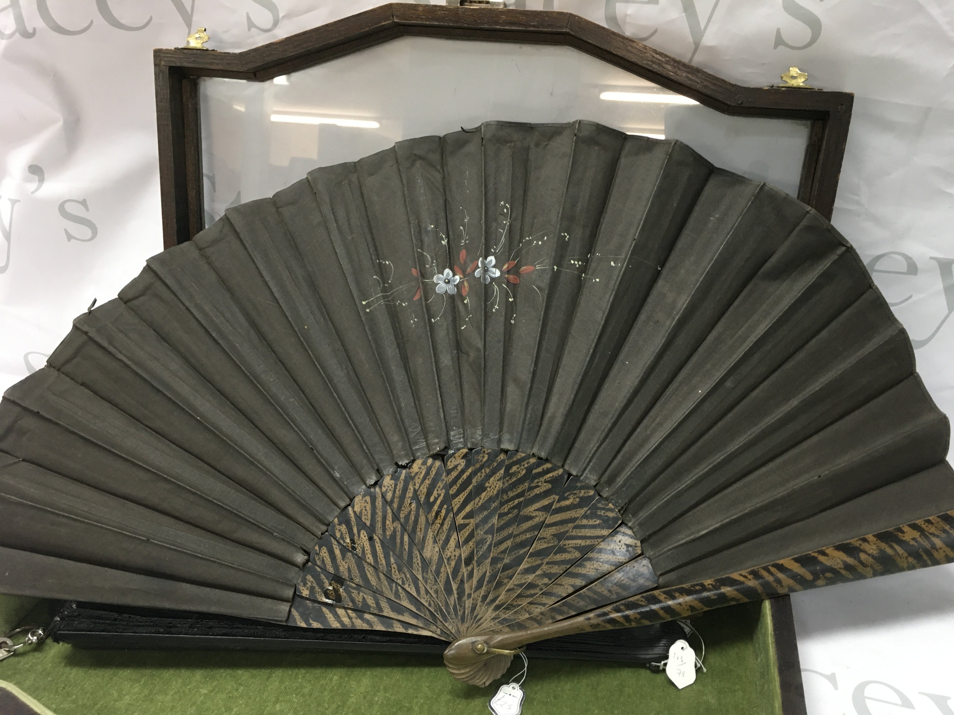 A Collection of fans of various designs with a collectors cabinet (45cm wide) . This lot cannot be posted