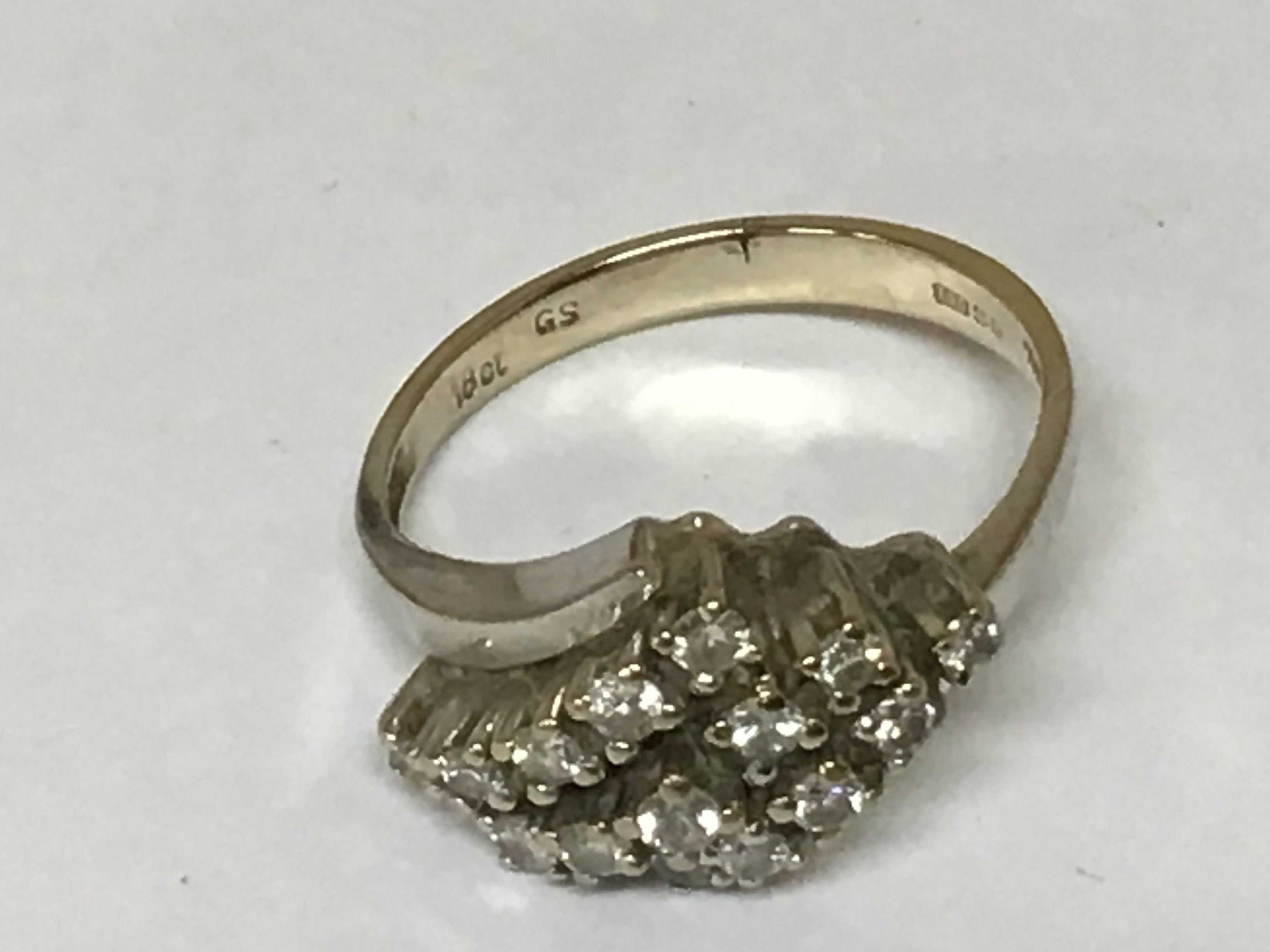 A white gold 18carat ring set with a pattern of diamonds. Weight 4g