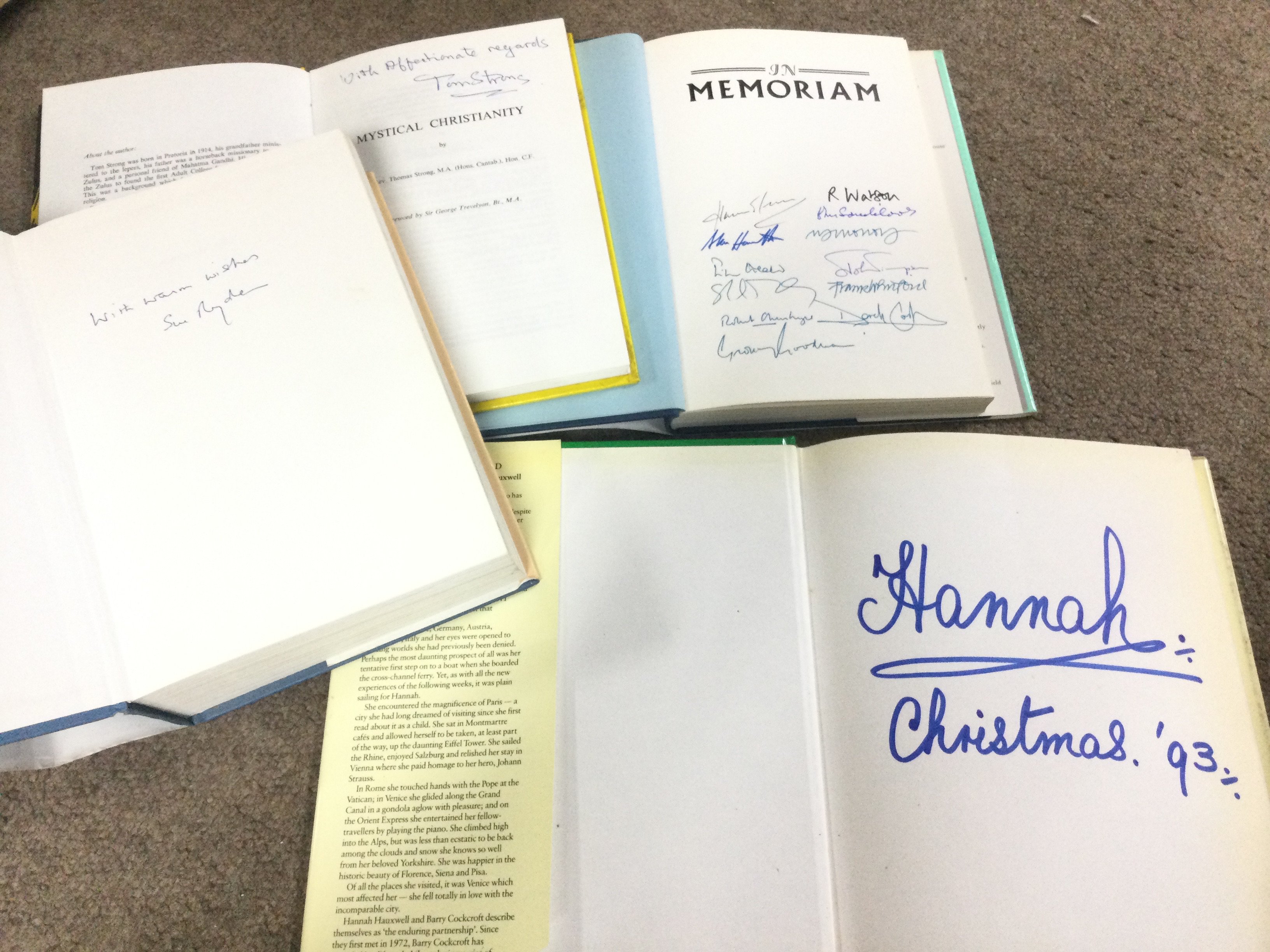 A box of books signed by their authors including Child of my Love Sue Ryder, The Prodigal daughter Jeffrey Archer, Below Stairs Margaret Powell. Postage category C