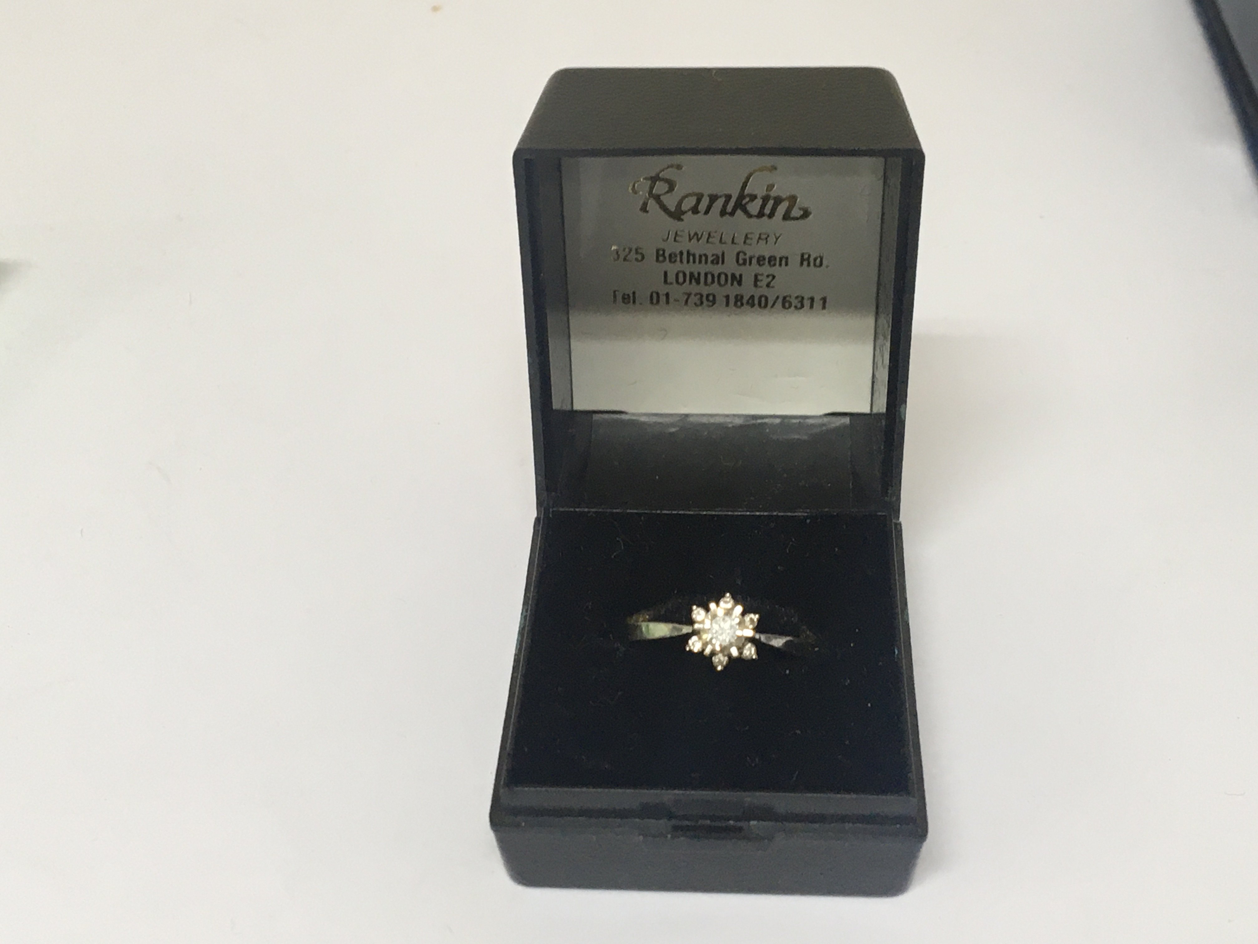 An 18carat gold ring set with a brilliant cut diamond approximately 0.3 flanked by smaller diamonds of a carat ring size P. Weight 3.7g