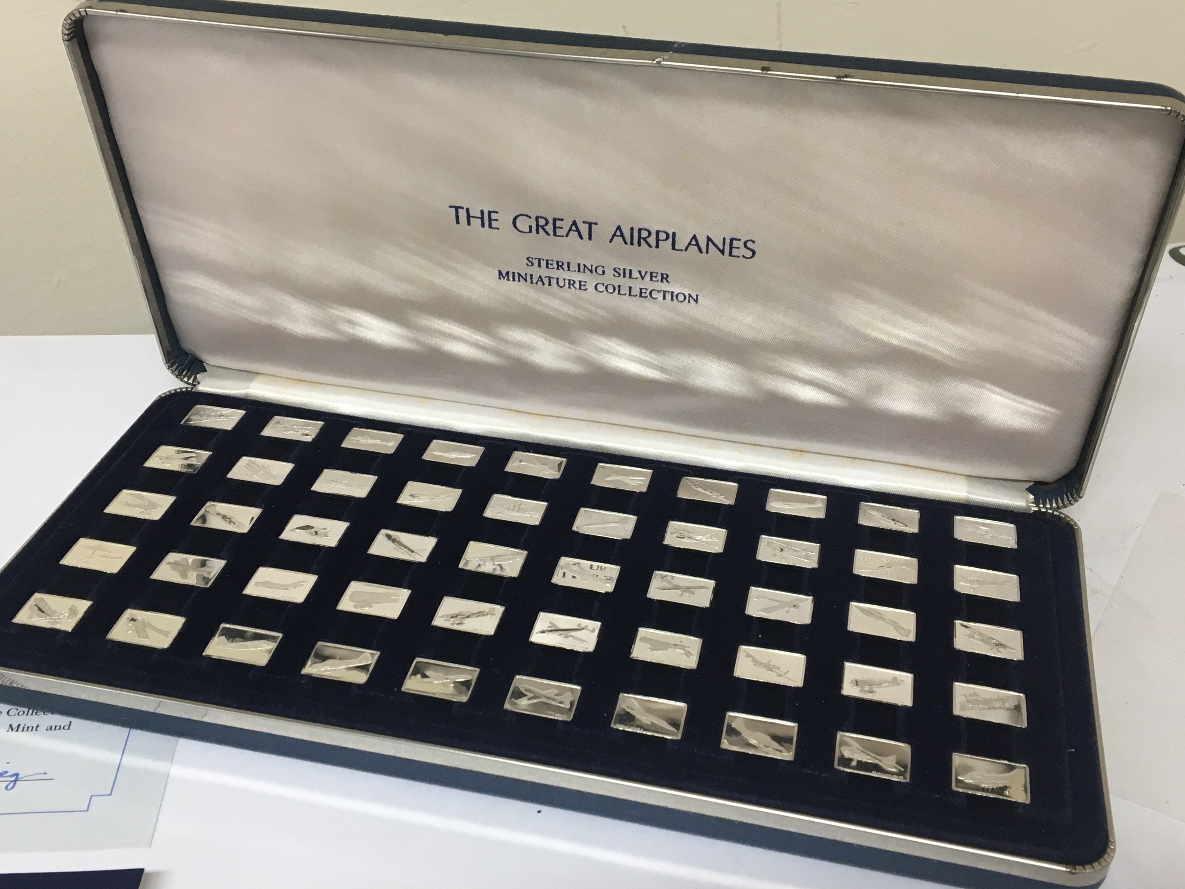 A presentation case containing miniature silver ingots The Great Airplanes collection fifty ingots with certificate of authenticity and references book.