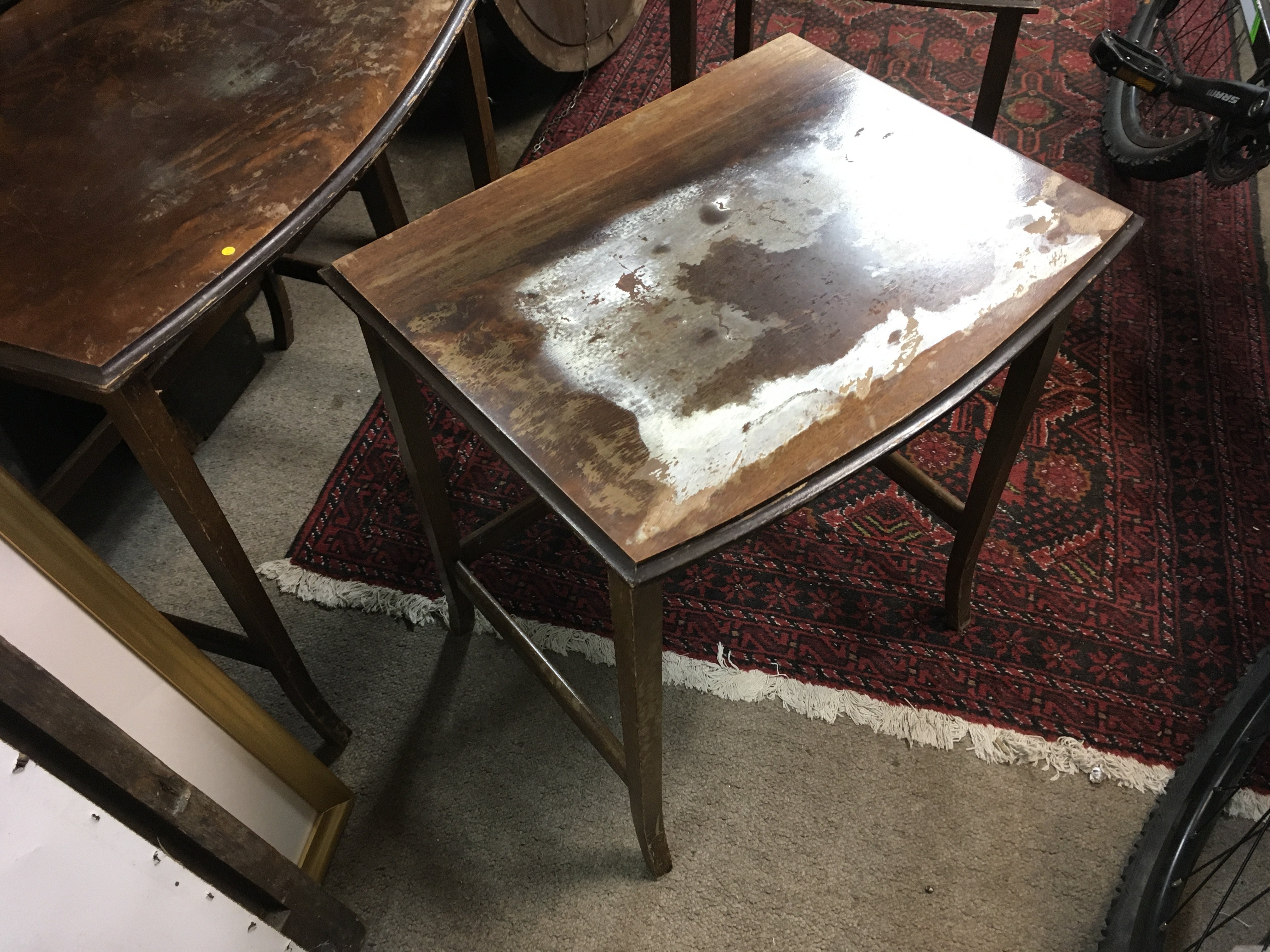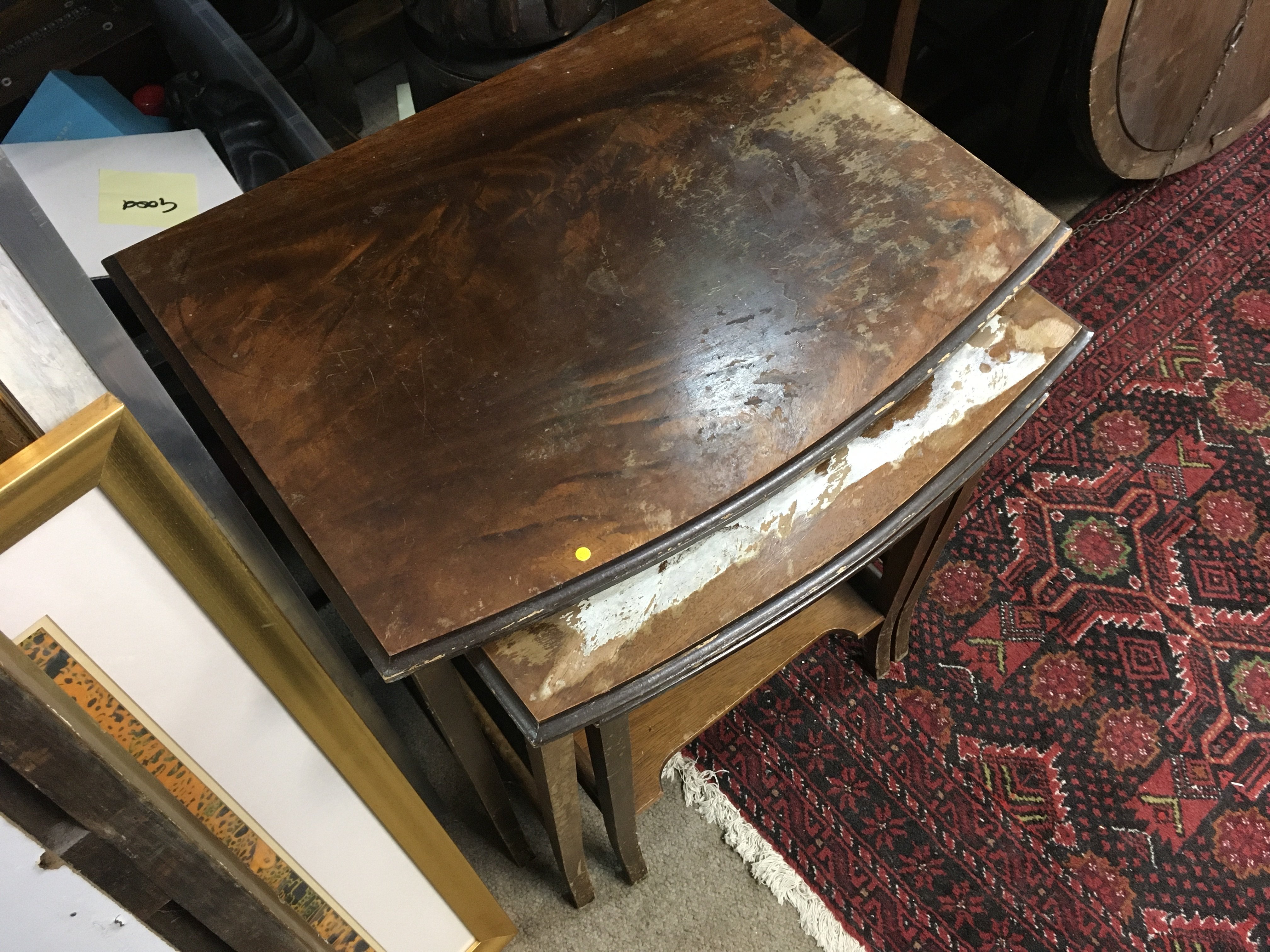 A nest of walnut tables . Biggest 50cm tall 50cm wide