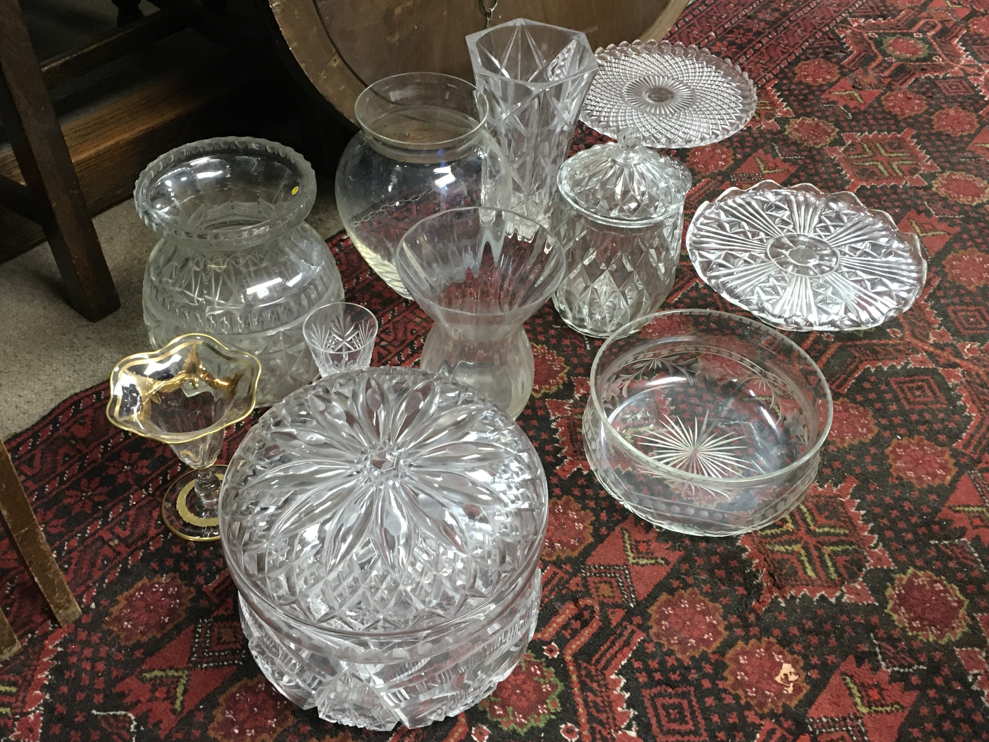 A Collection of cut glass vases , bowls , jars etc