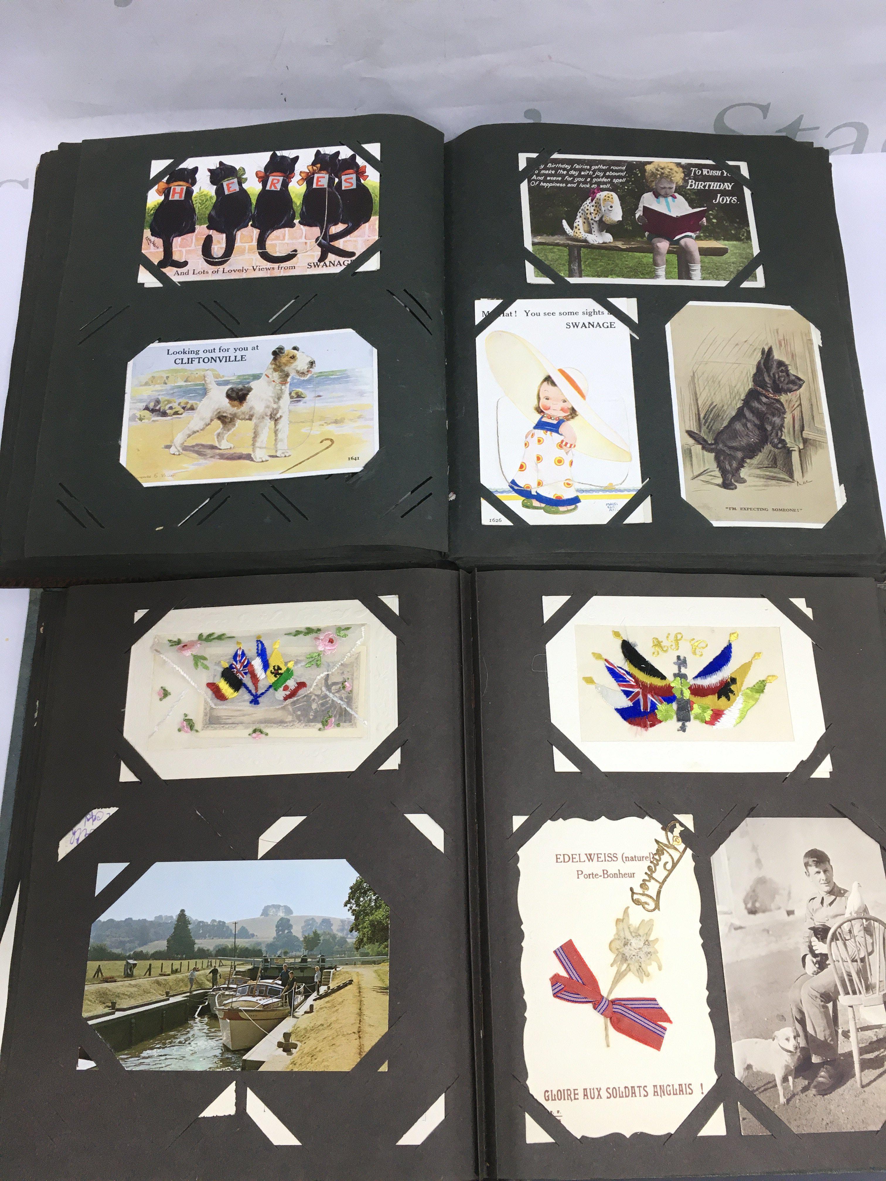 Two postcard albums including military, Mabel Lucie Atwell and others.