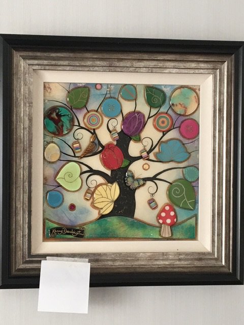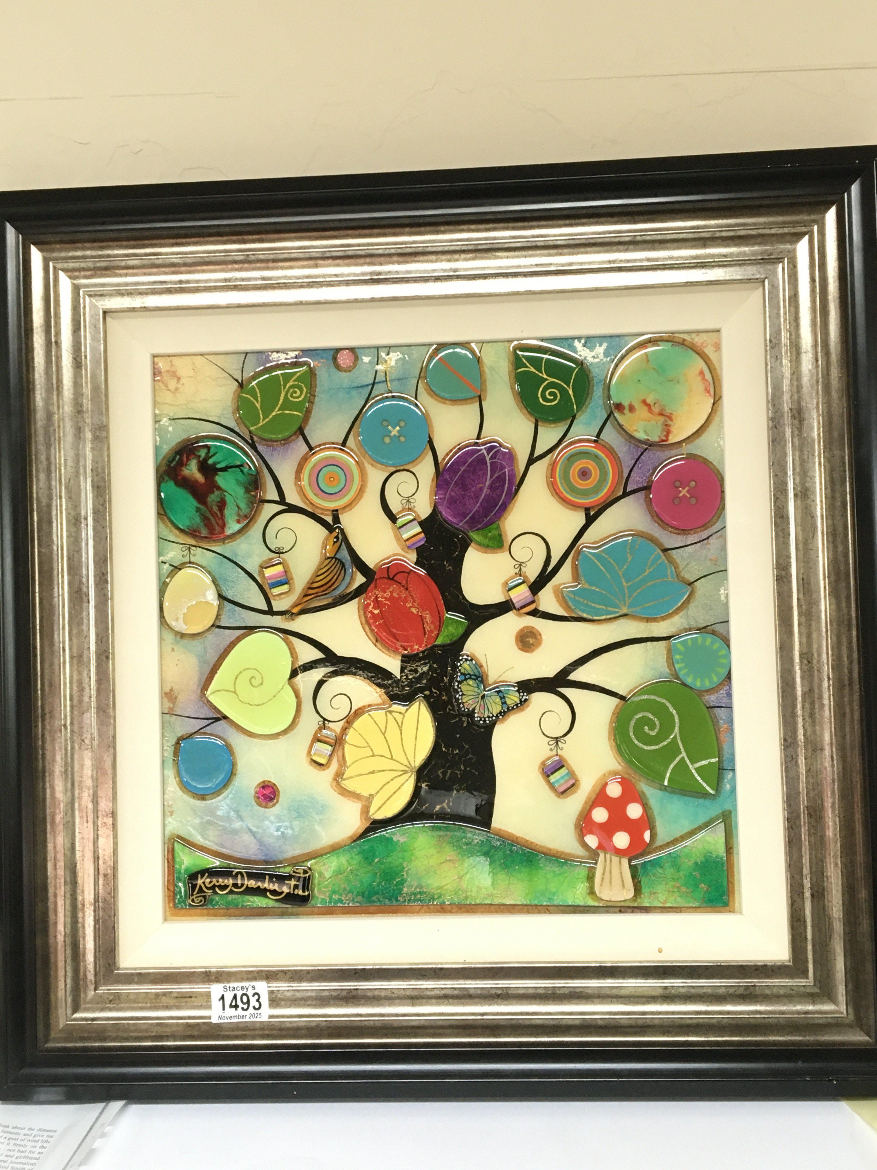 A Contemporary three dimensional art work by Kerry Darlington. The Tree of Harmony. Mixed Media the reverse with label. In a modern frame 62cmx62cm