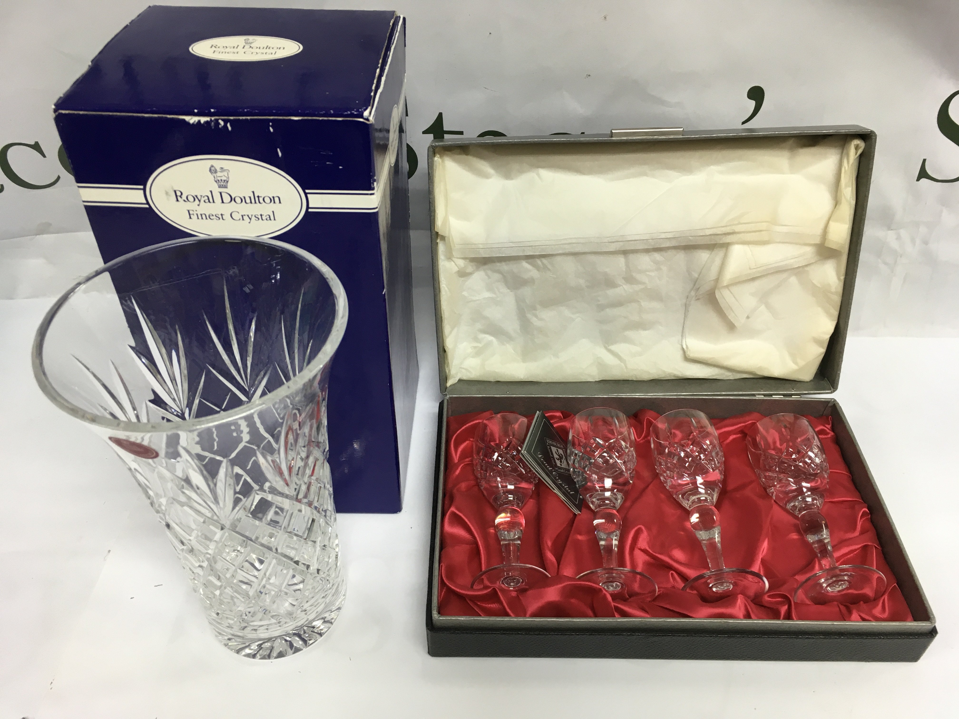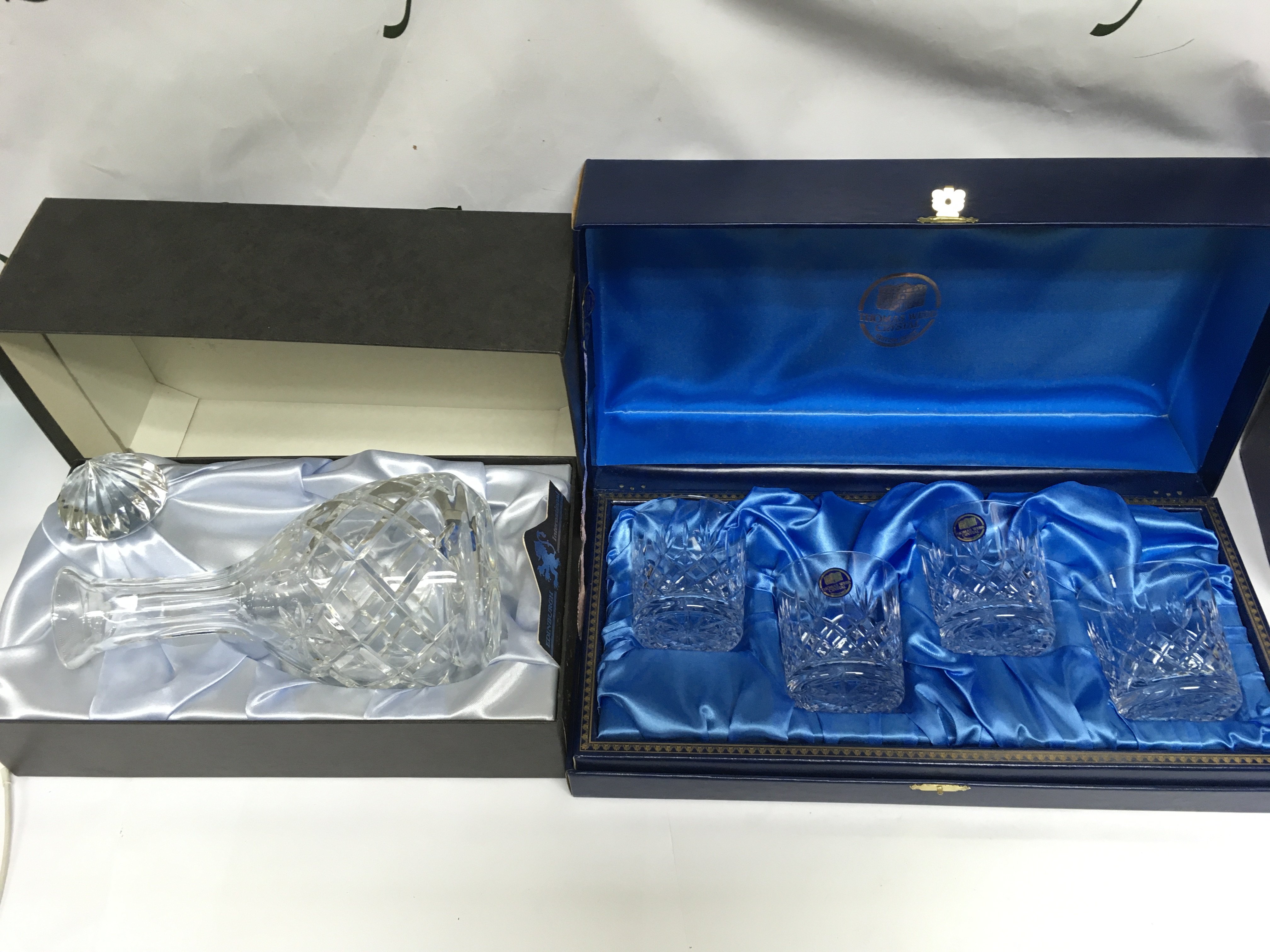 A collection of ceramics and boxed crystal comprising various Royal Doulton figures, a boxed Lladro figure, Edinburgh crystal decanter etc. Shipping category D.