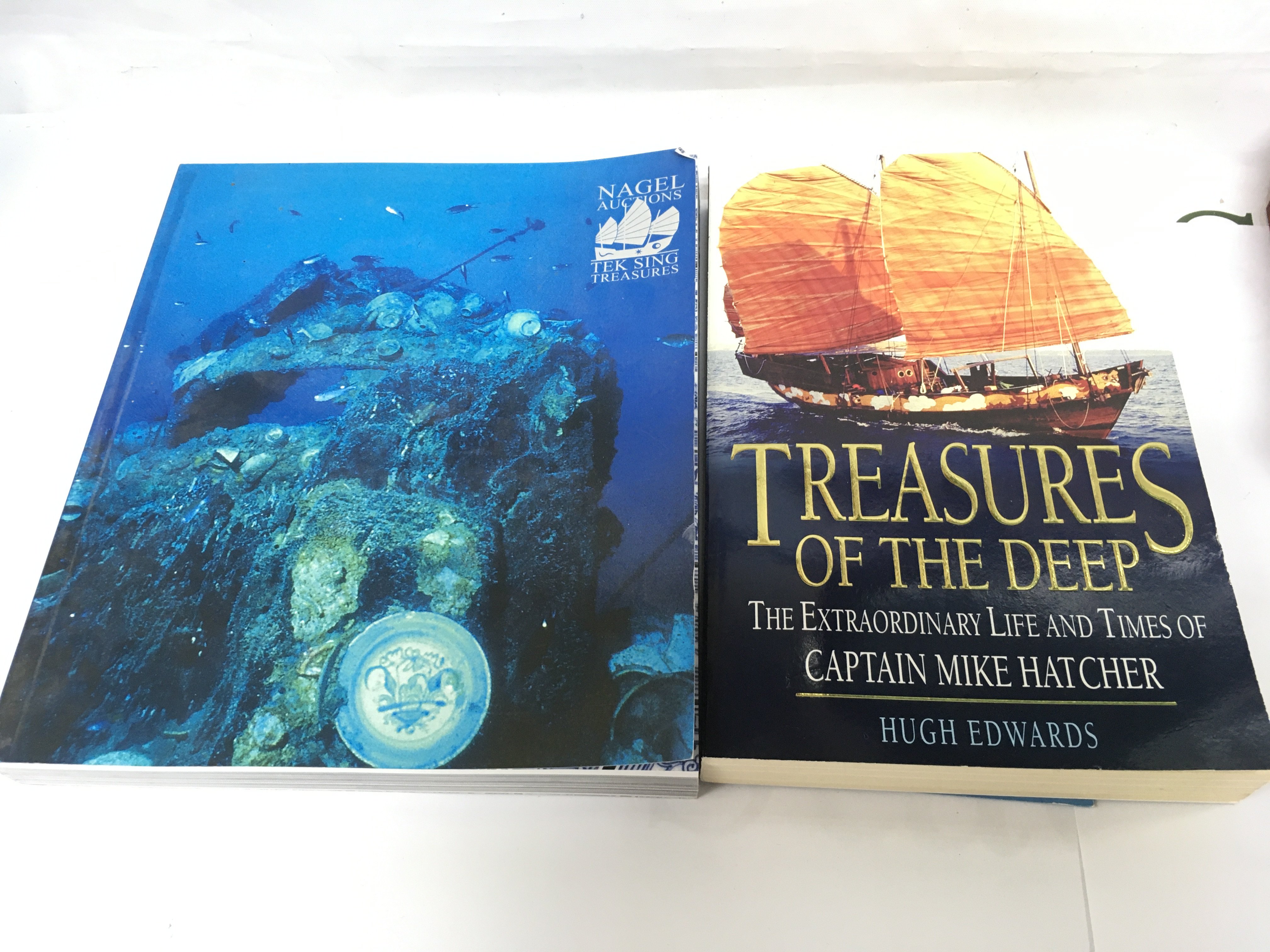 A collection of Tek Sing and other blue and white shipwreck finds including Desaru spoons, tea bowls, dishes etc. Comes with a book and a catalogue about South East Asian shipwrecks and their cargo. Shipping category D.