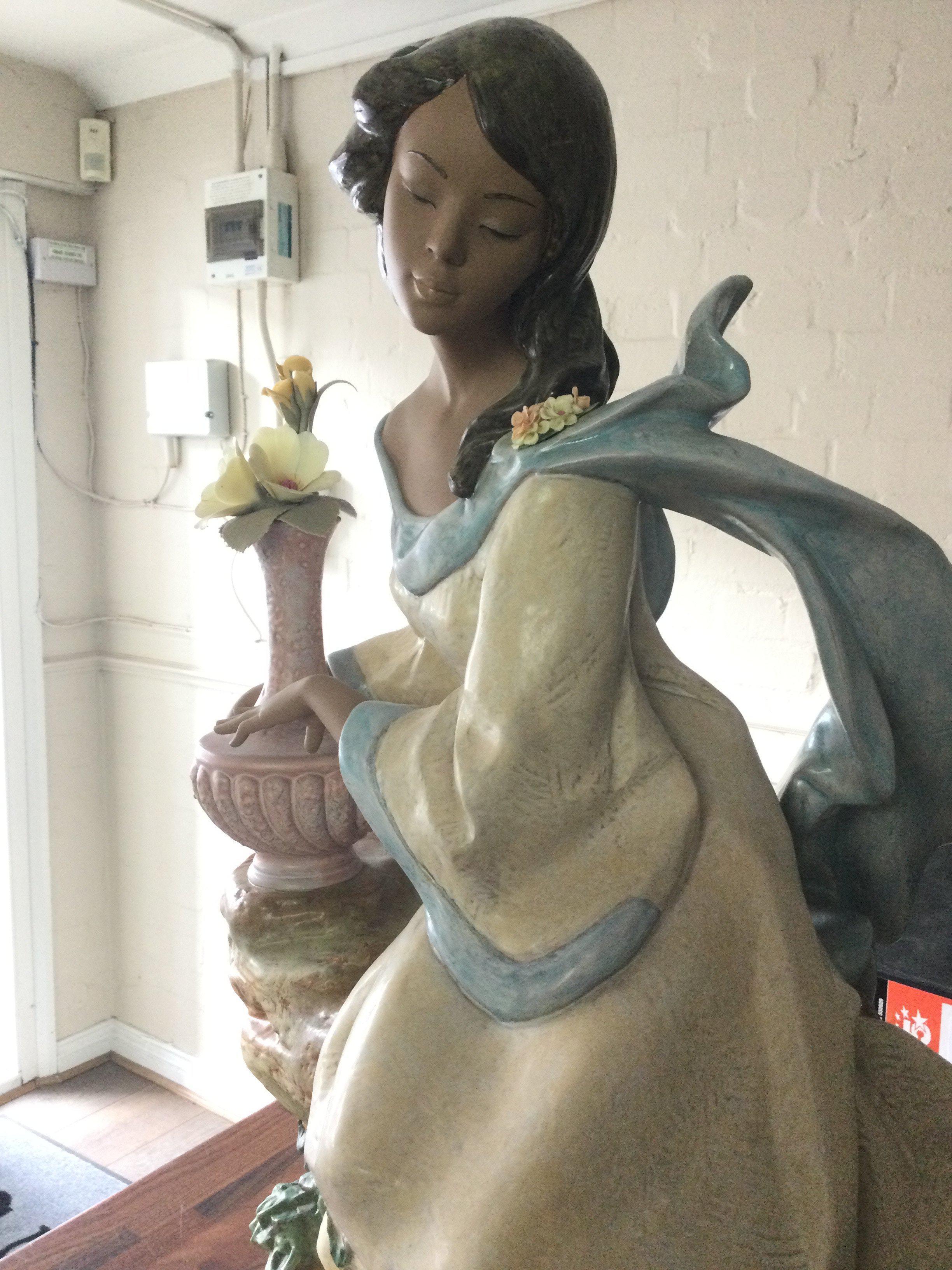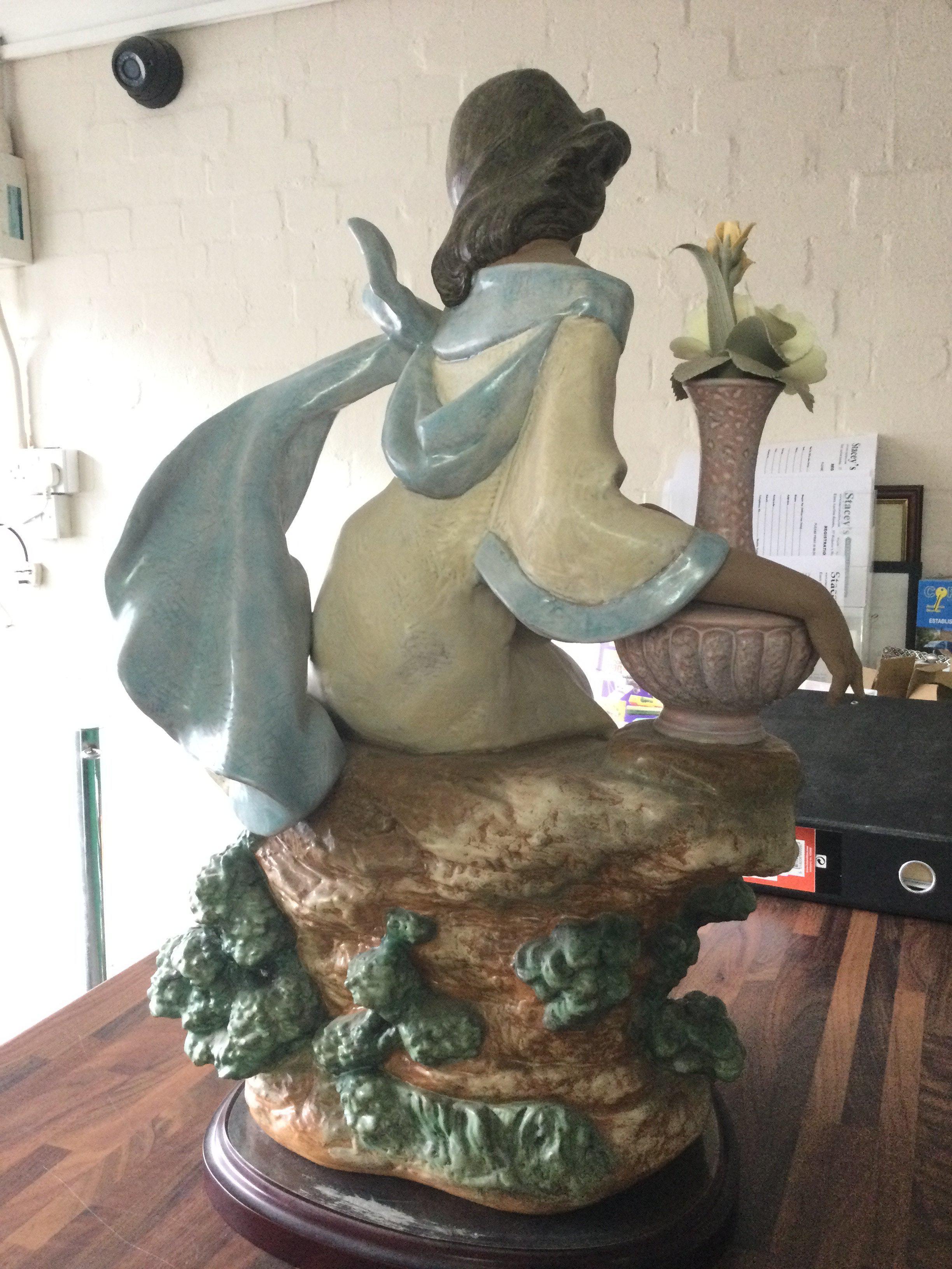 A Lladro Garden Breeze Gres figure, issued 2001 retired 2003. Lladro number 3583. Limited Edition of 1500. Flower petal needs re gluing. No other obvious damage or restoration. Including base 59cm tall. This lot cannot be posted