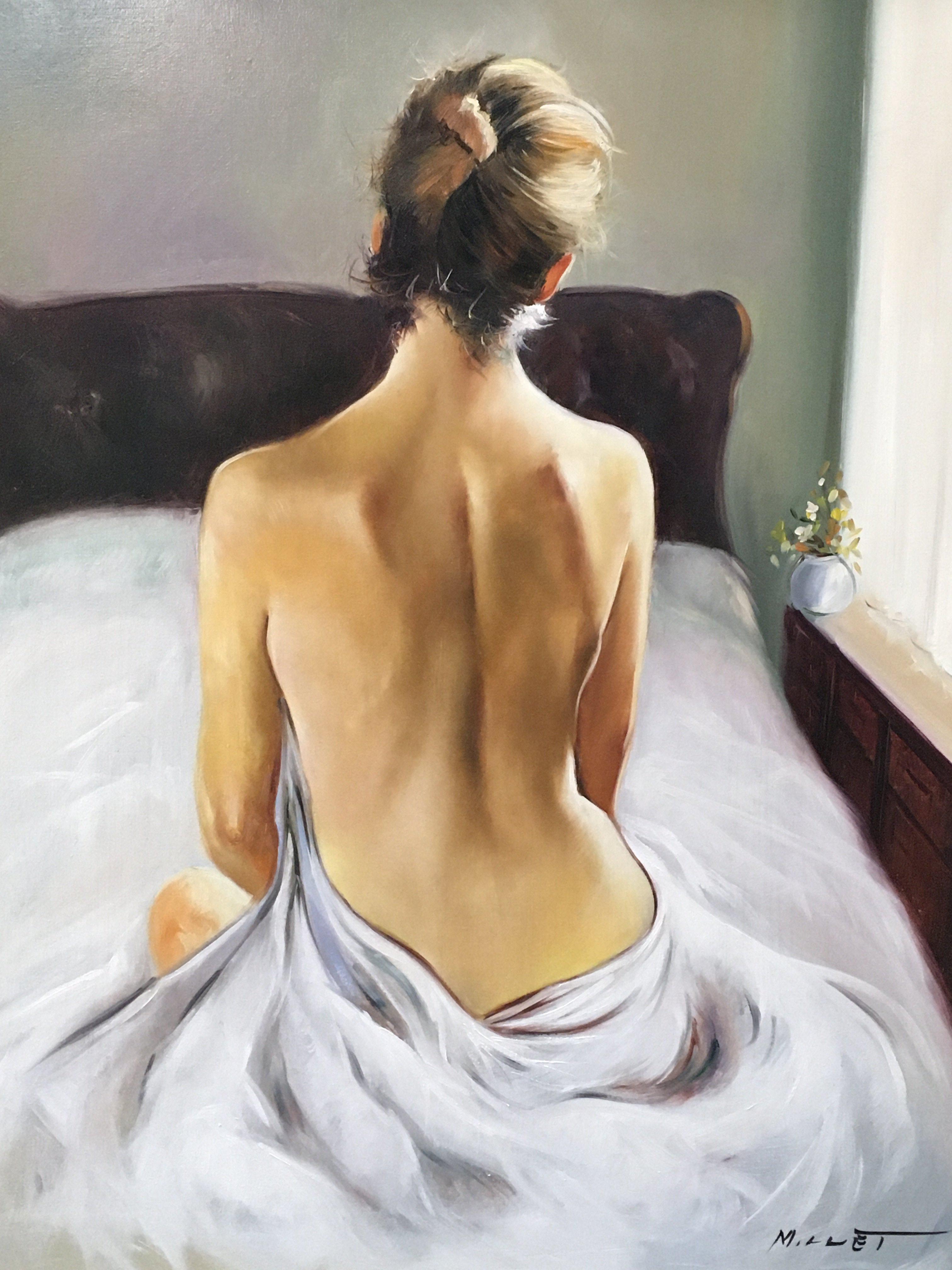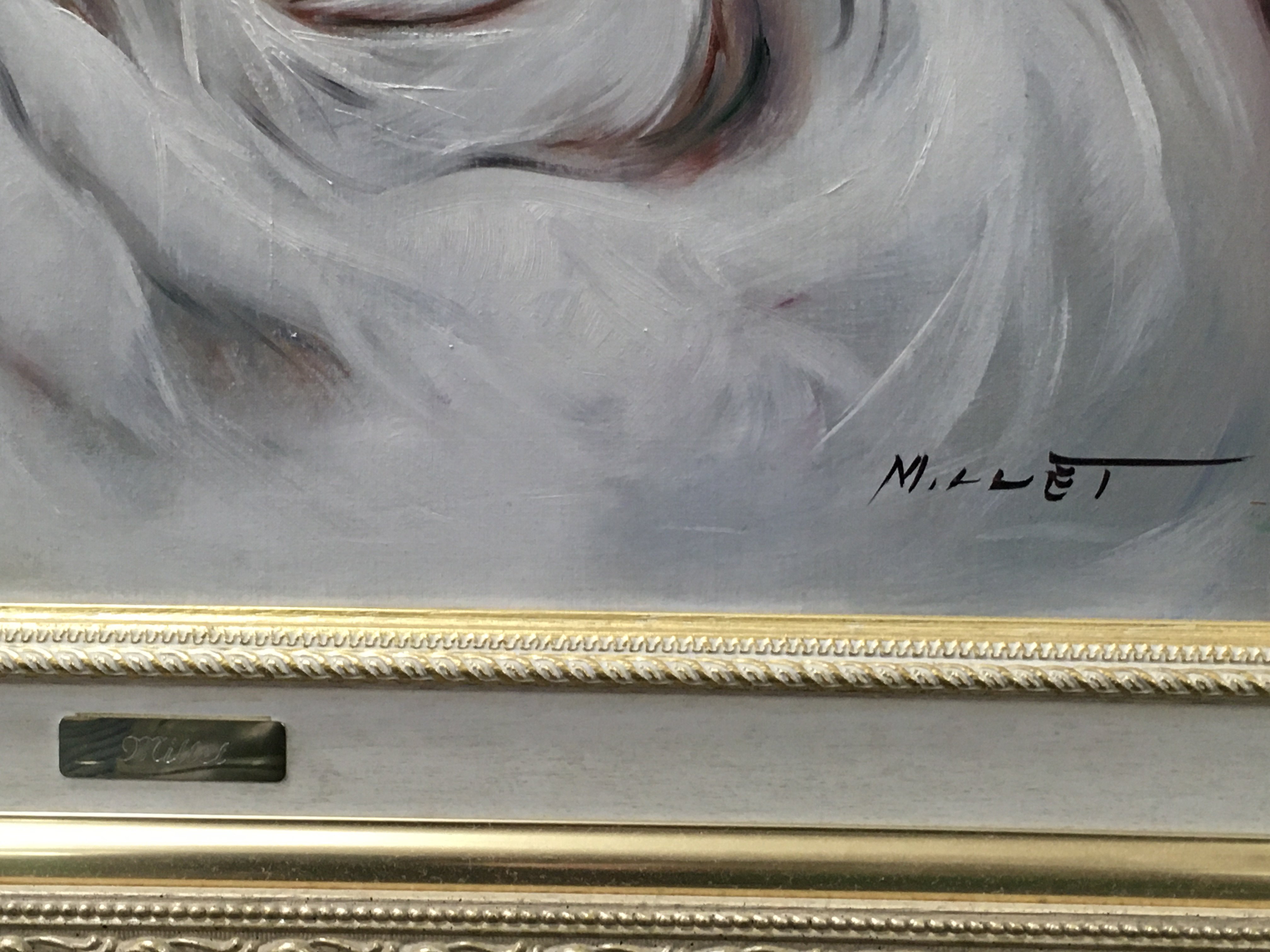 A framed 20th century Nude oil painting signed Millet. Frame dimensions 70x78cm