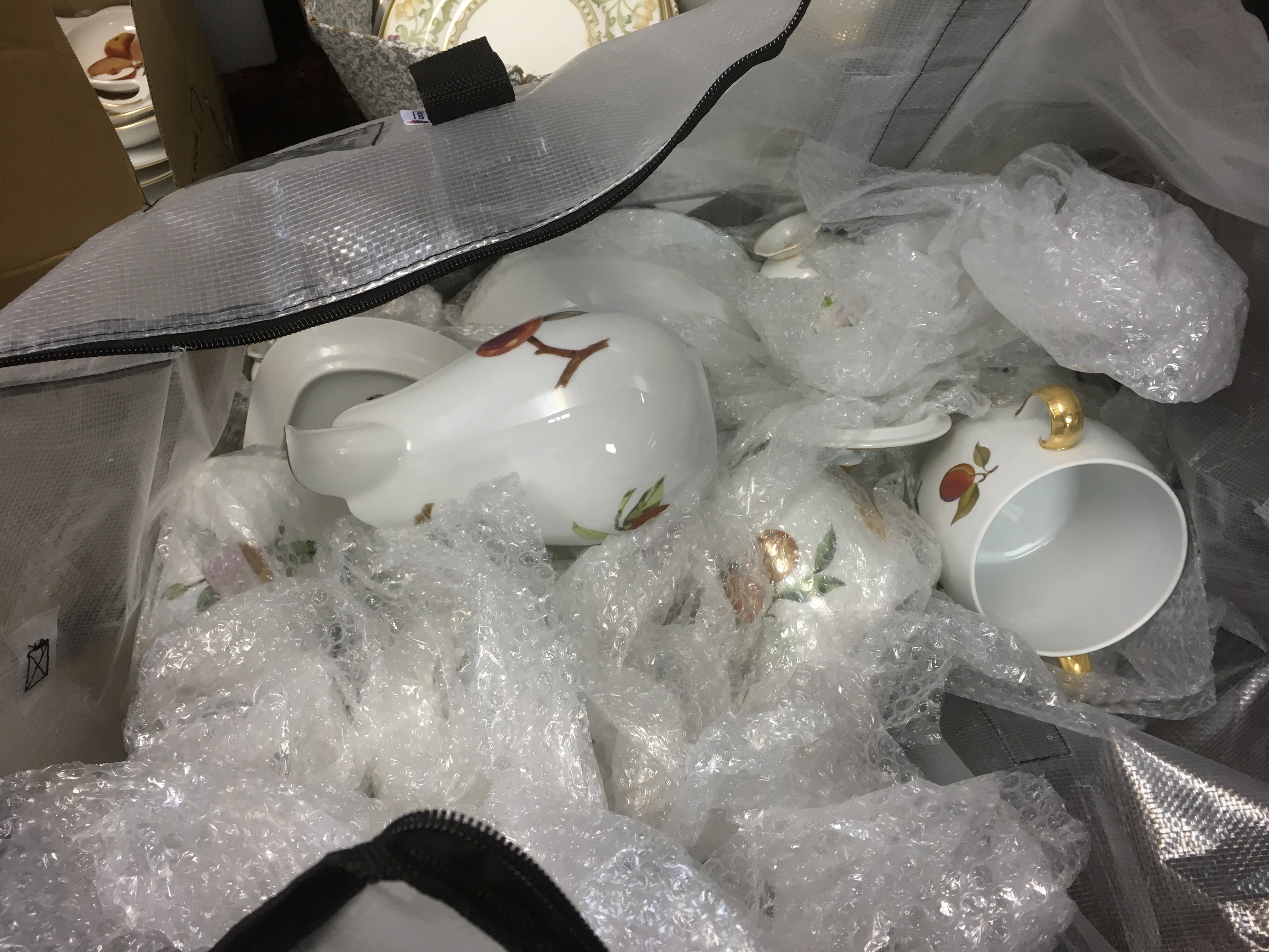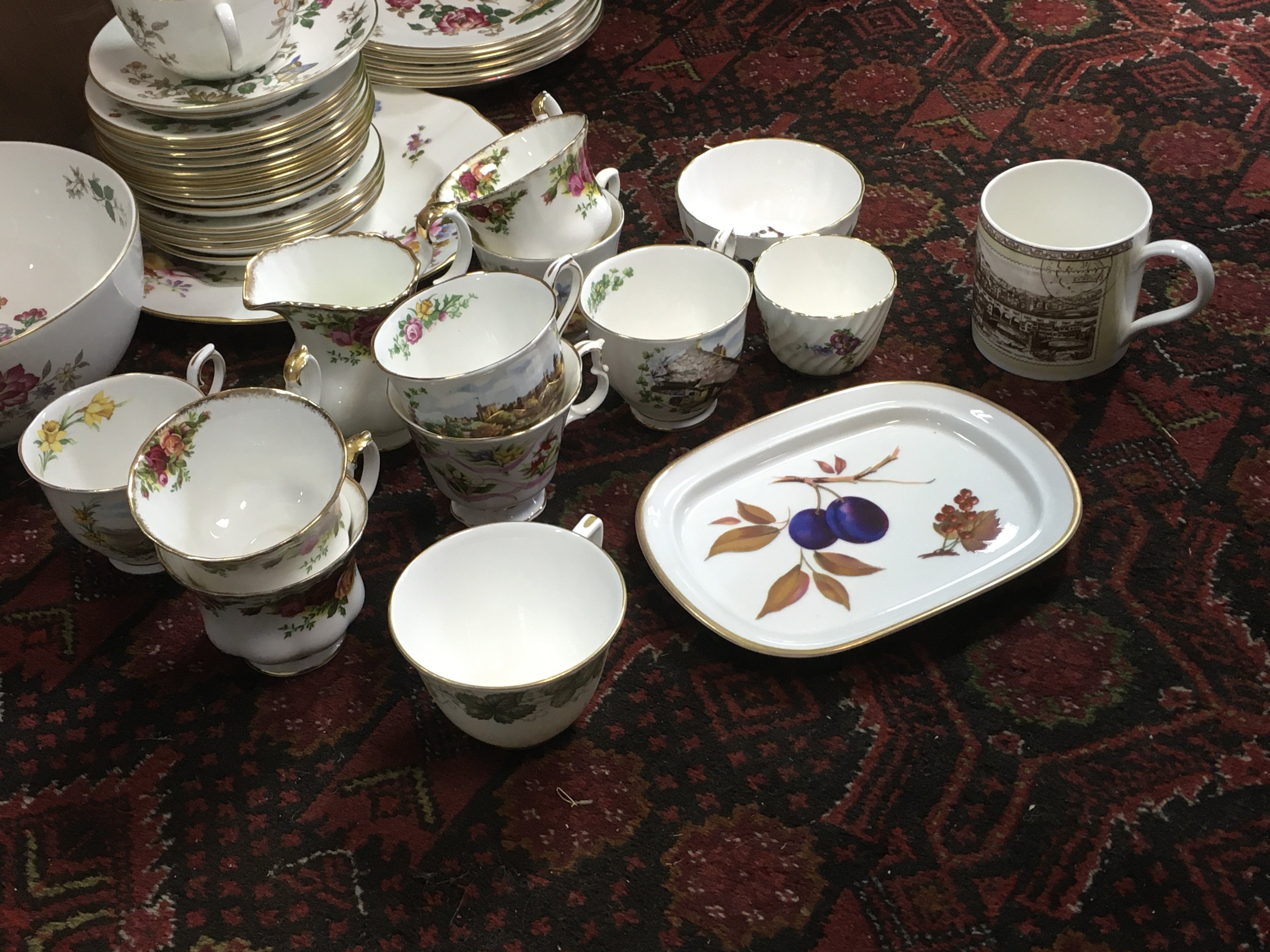 A large Collection of tea set pieces including Royal Albert Hope and Glory, Worcester , Wedgwood Charnwood , other Wedgwood Evesham and other designs etc. This lot cannot be posted