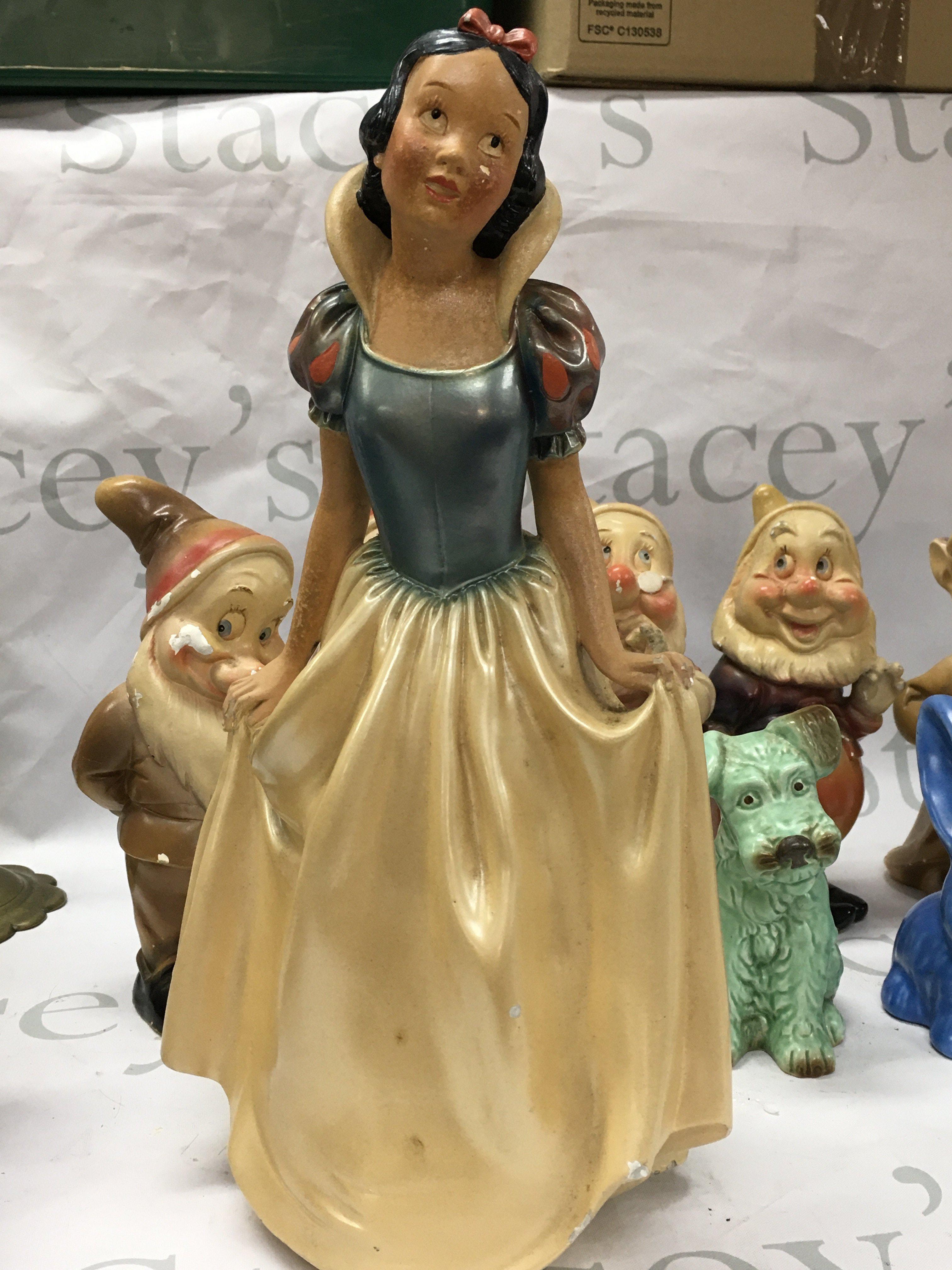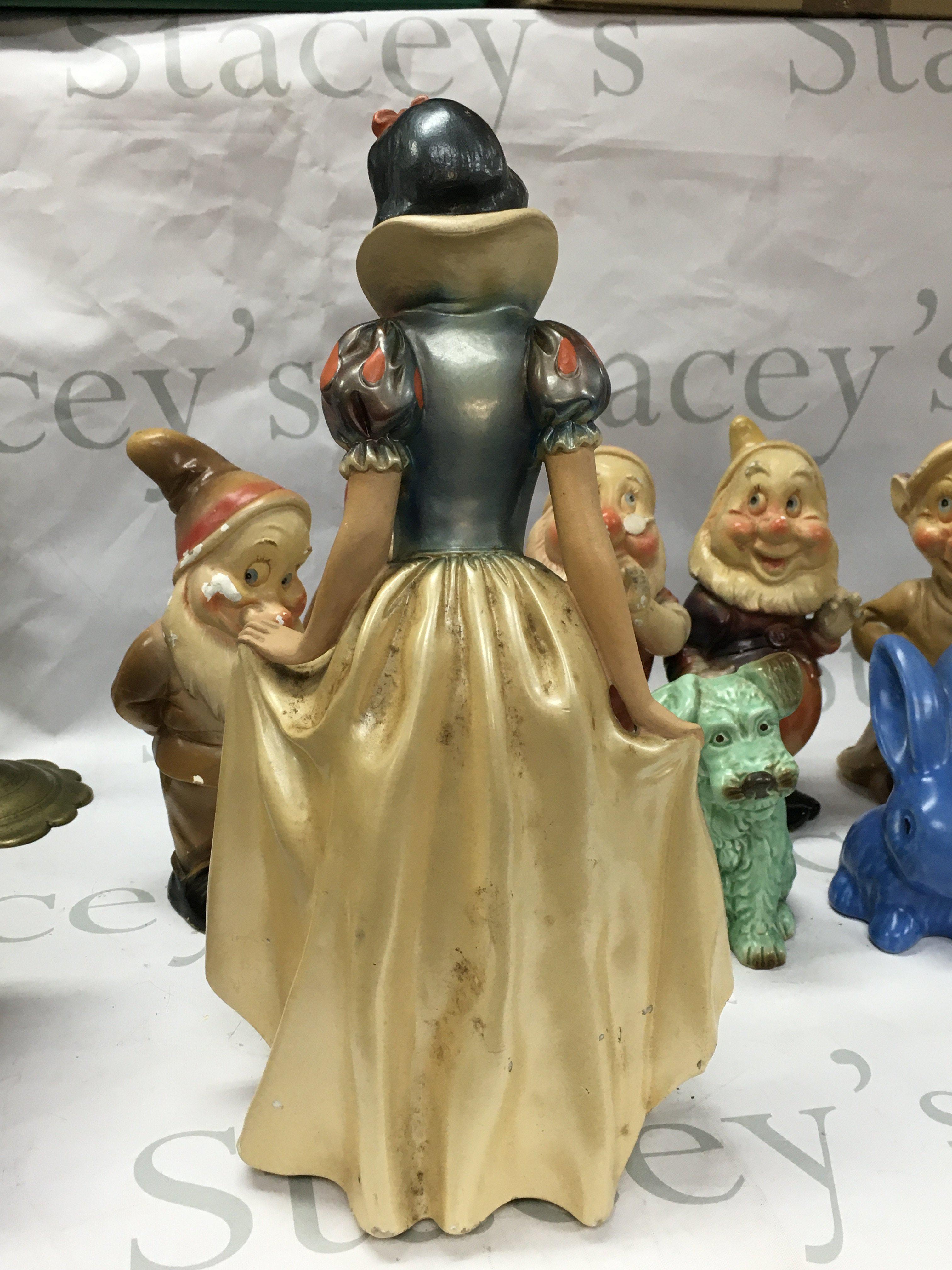 Walt Disney G.Leonardi Plaster ornaments in the form of Snow White and the seven dwarfs , Sylvac dog figure. This lot cannot be posted