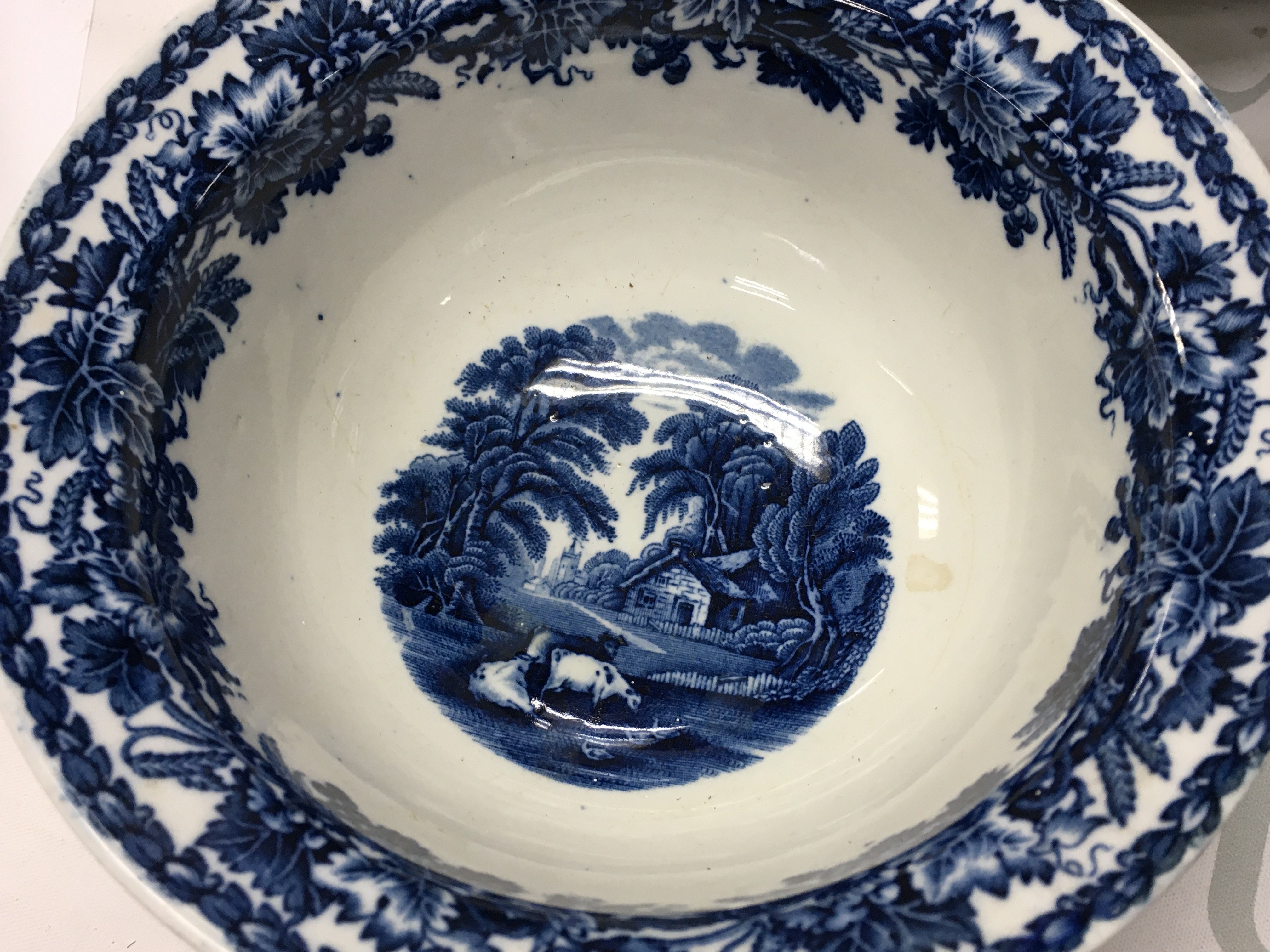 A Collection of blue and white ceramics including plates, bowls by Booths, Masons, Old Willow etc Coalport Kings ware canton dishes. This lot cannot be posted