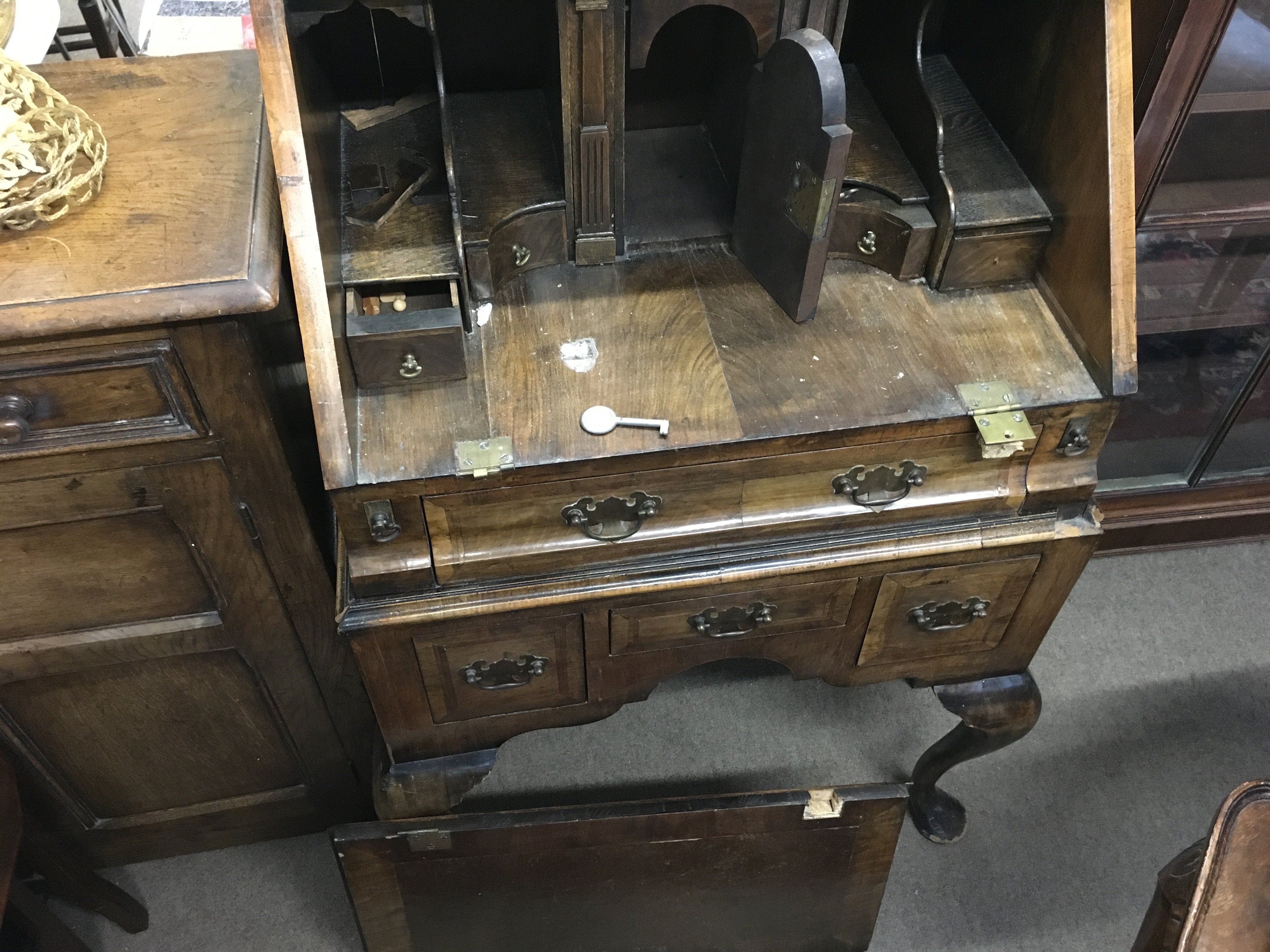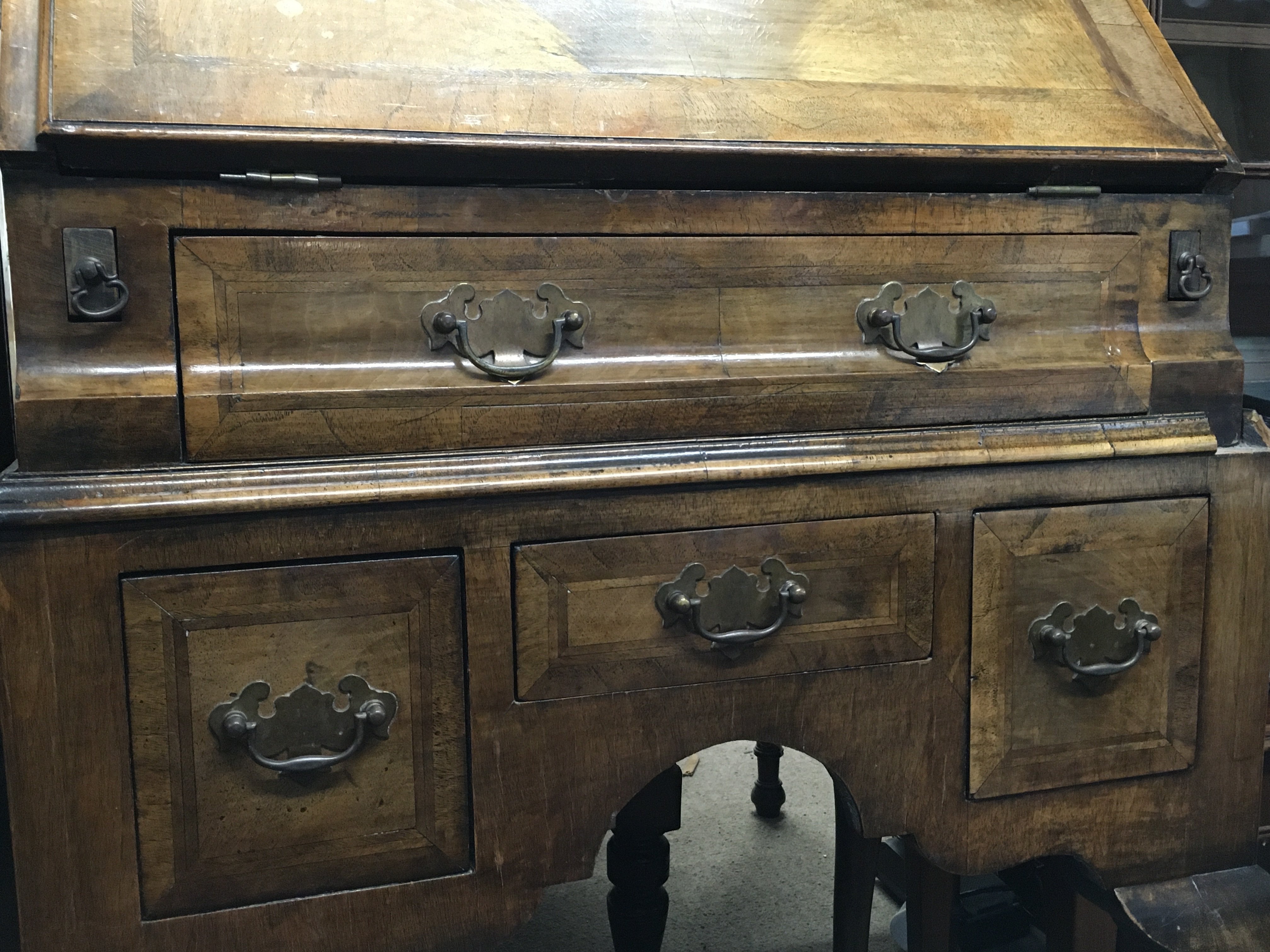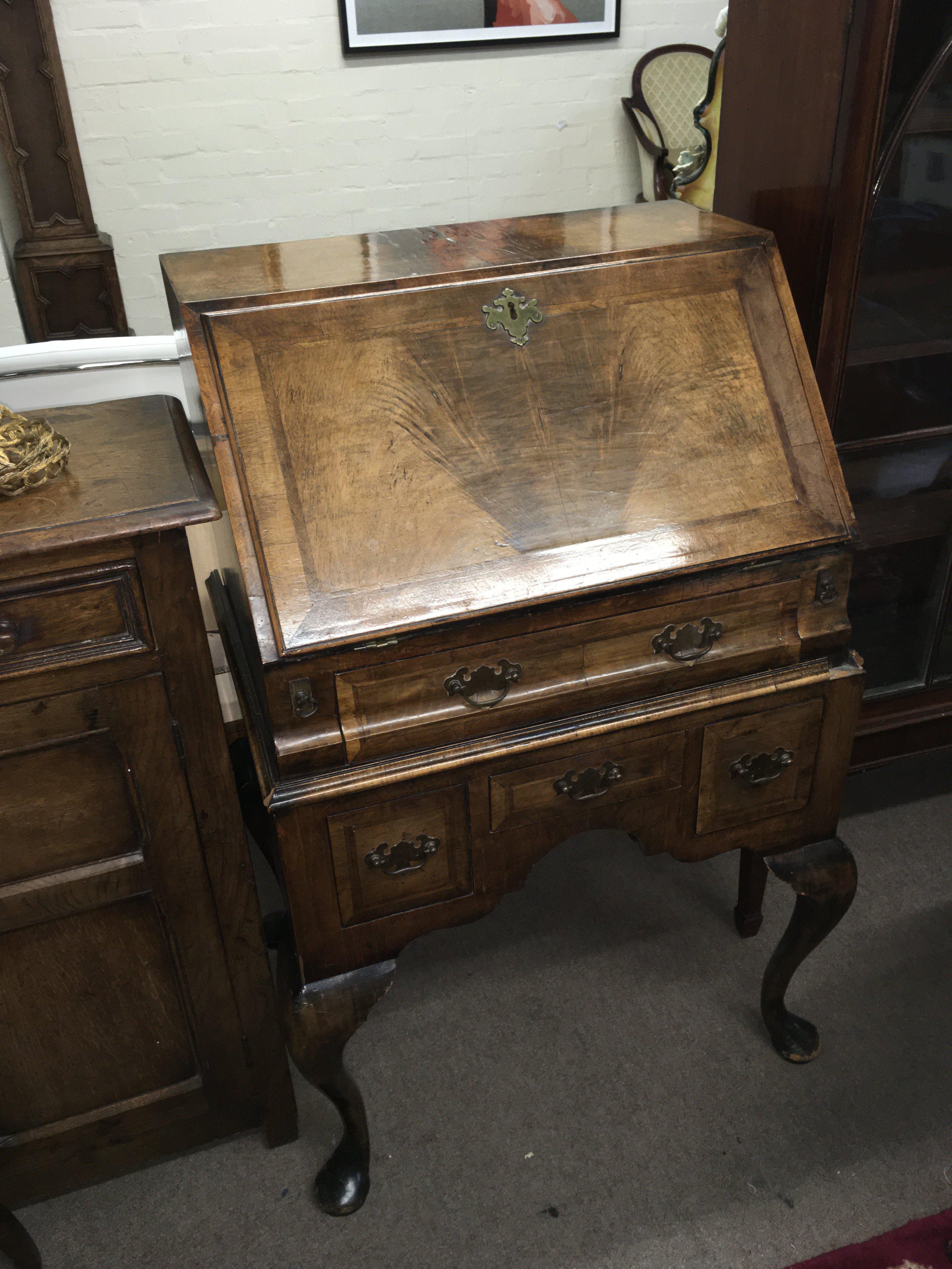 A walnut bureau , dimensions 60cm wide 100cm tall 45cm deep