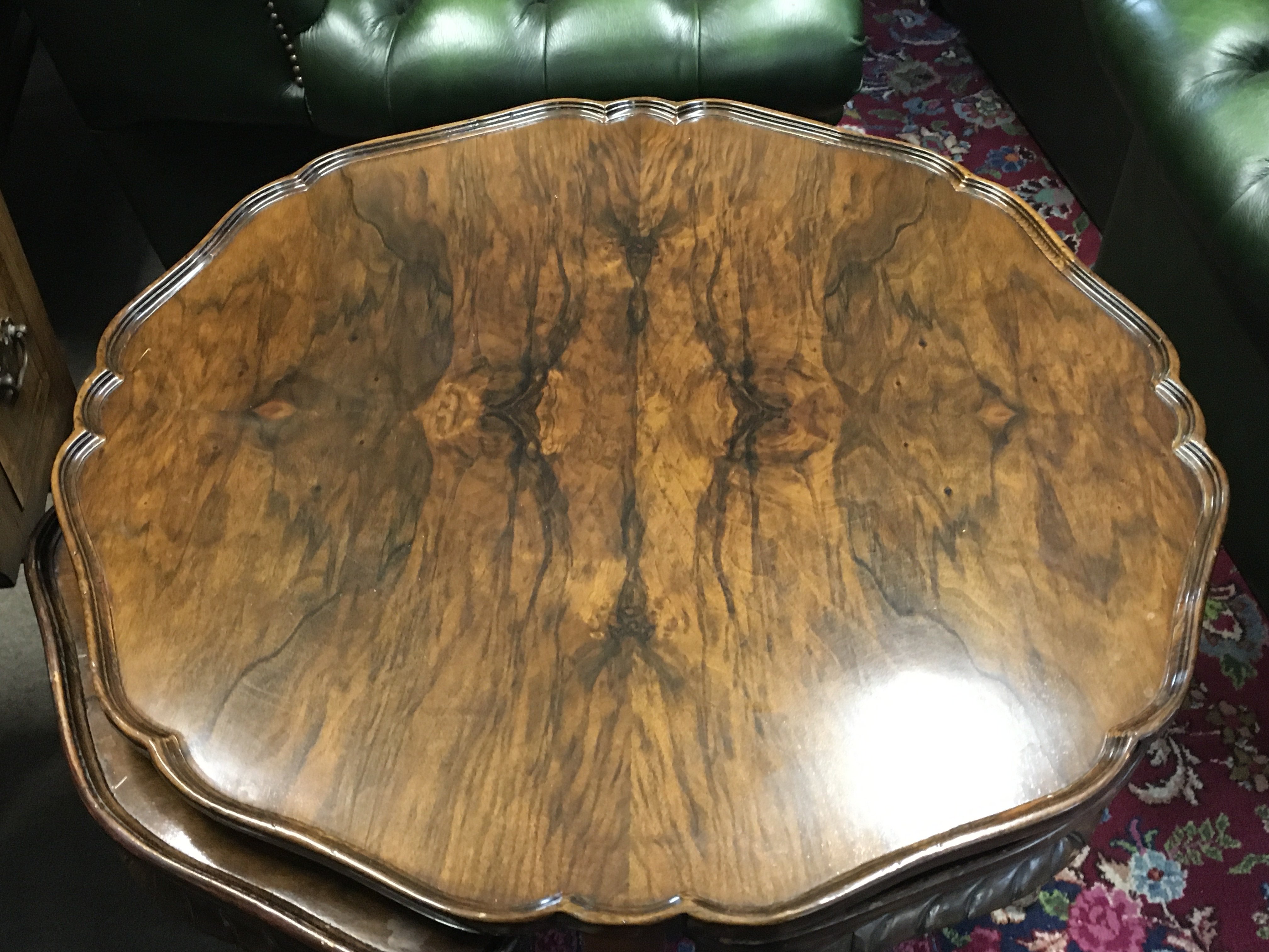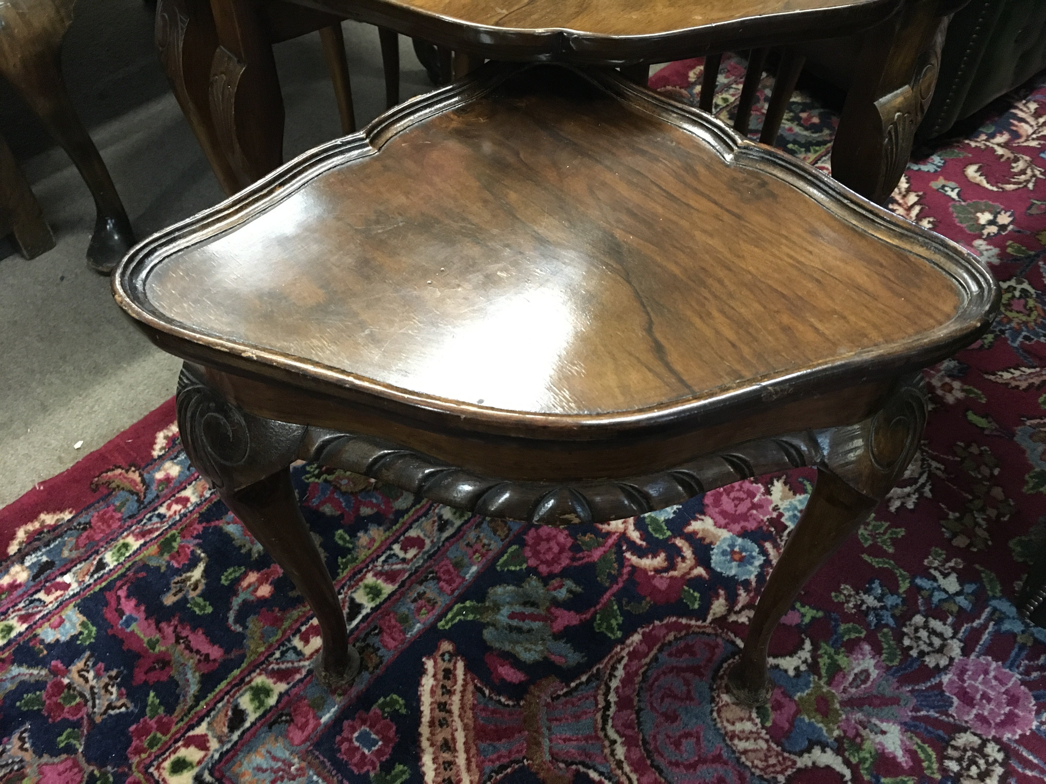 A nest of walnut tables , dimensions 75cm wide 52cm tall