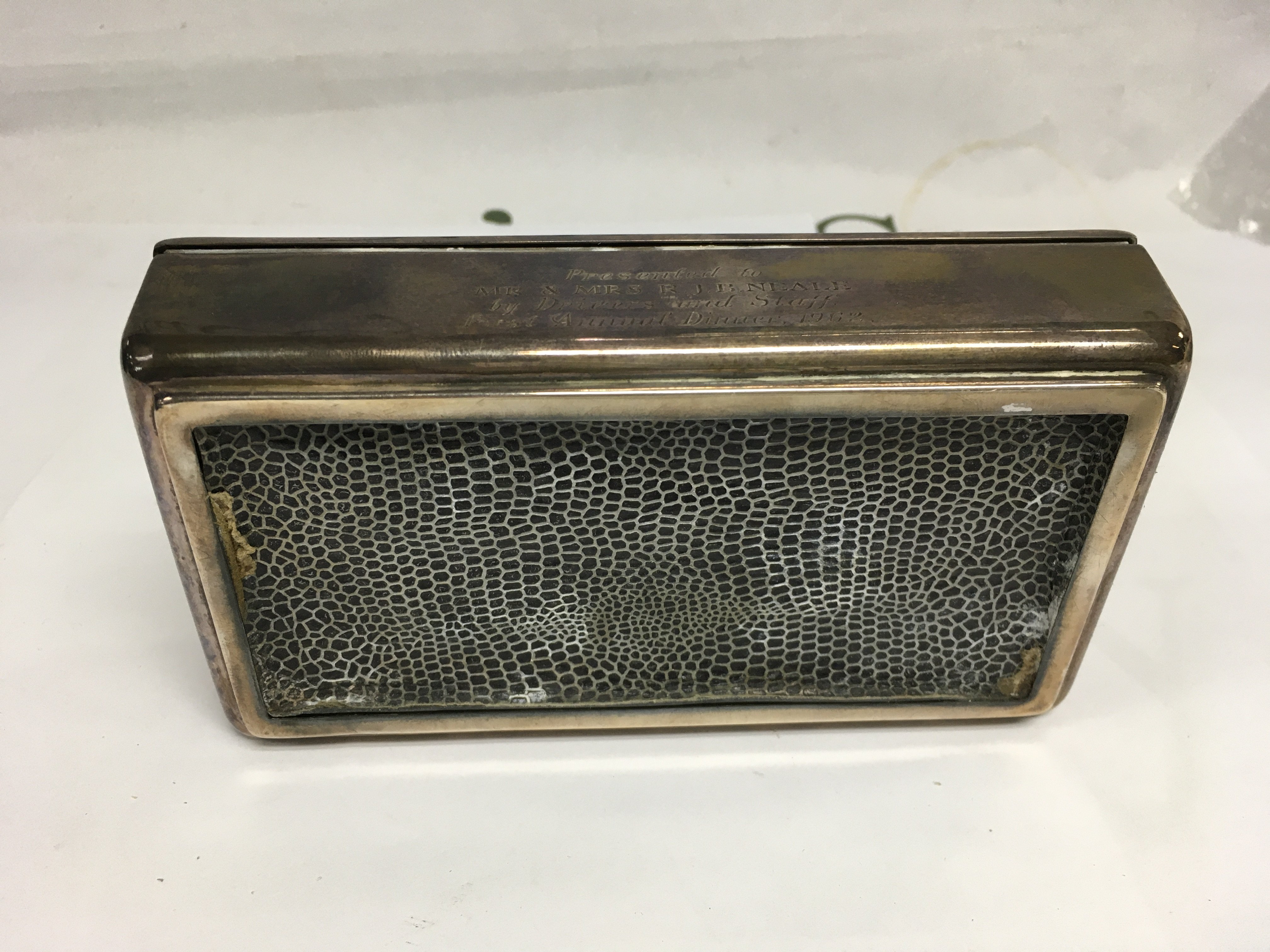 A silver cigarette box, approx length 16cm. Birmingham hallmarks. Shipping category B.