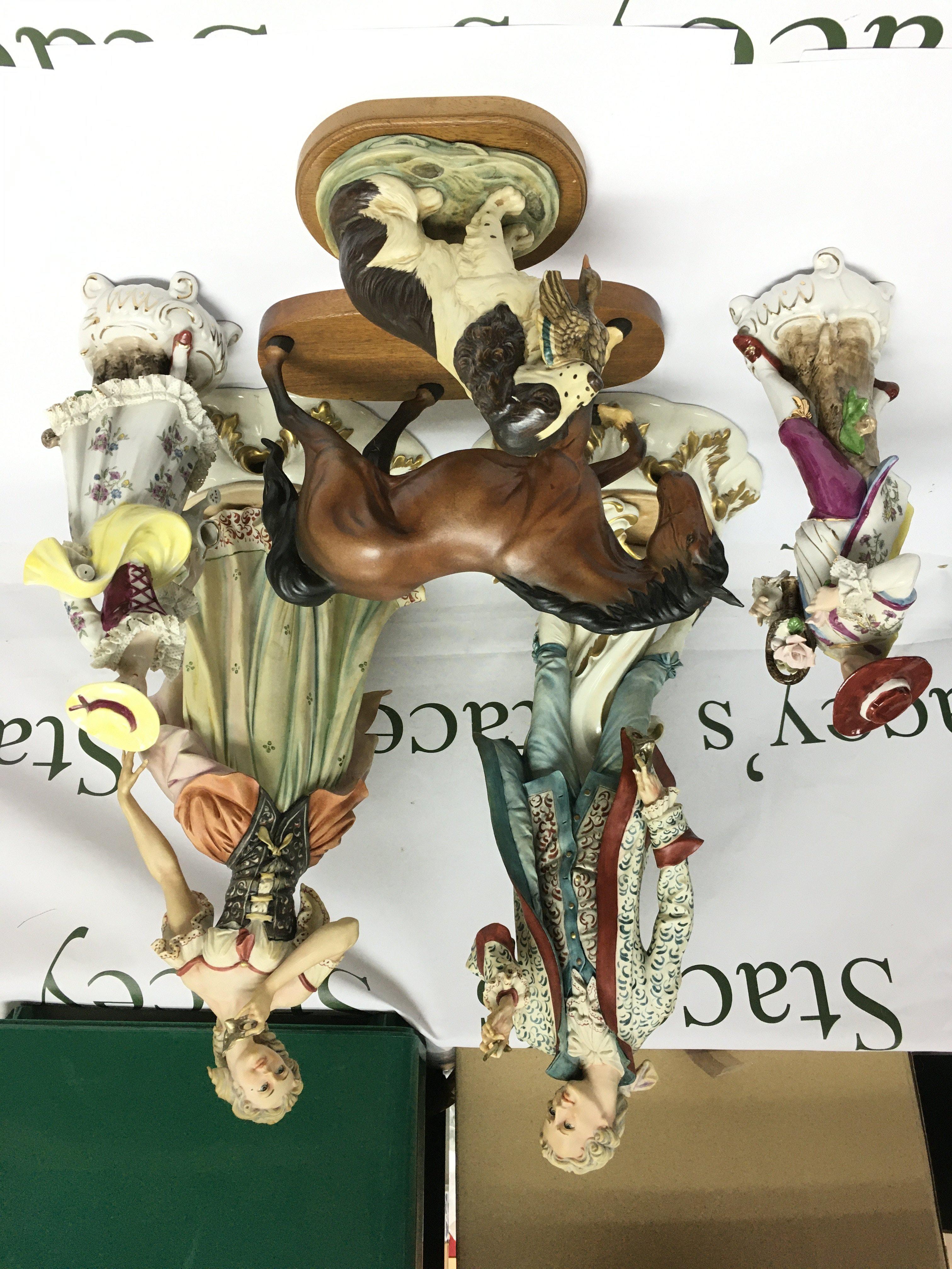 A collection of ceramics including a pair of large Capodimonte figures, approx height 44cm. Shipping category D.