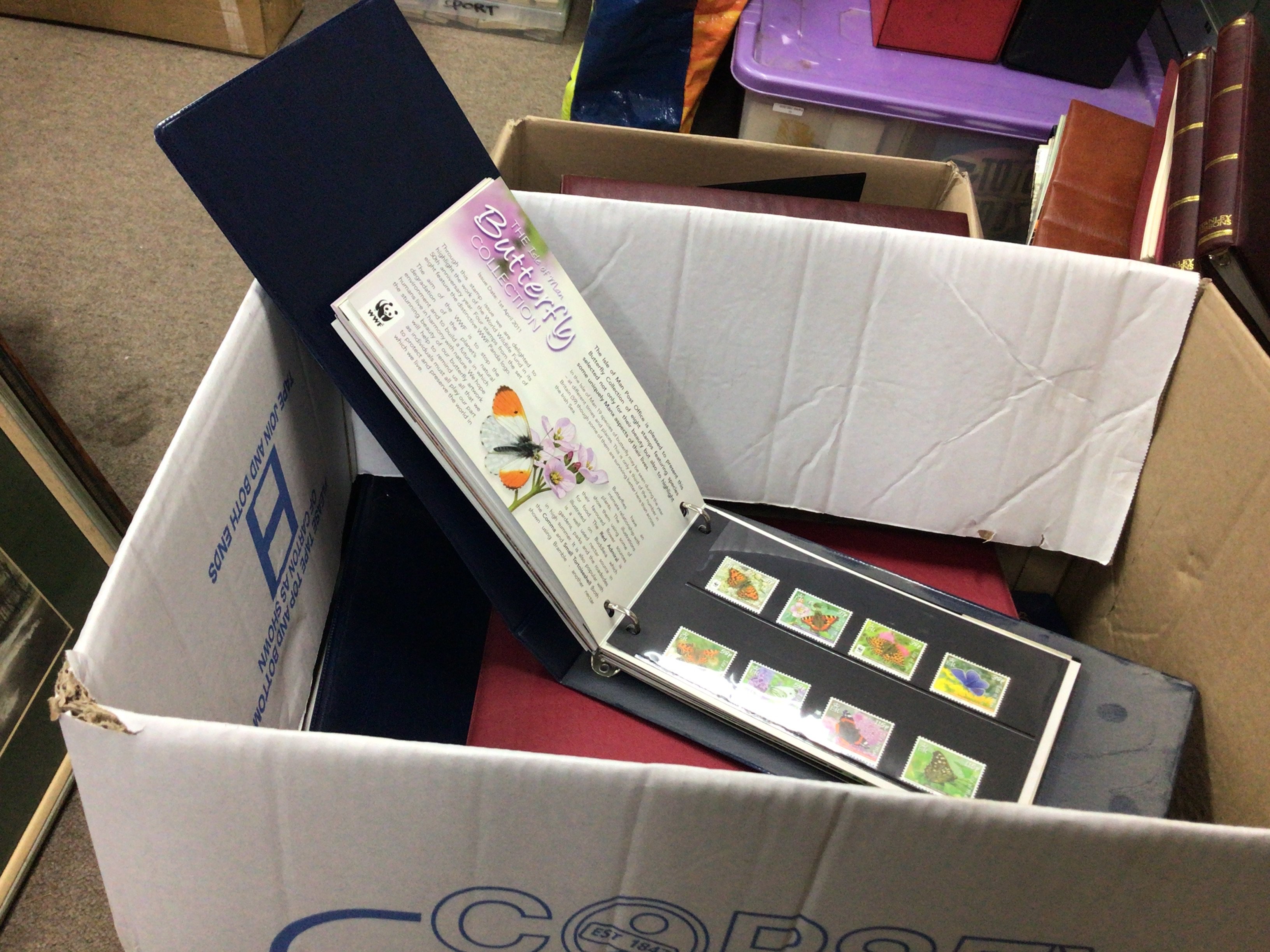 A box containing Isle of Man unused pictorial presentation packs in albums.