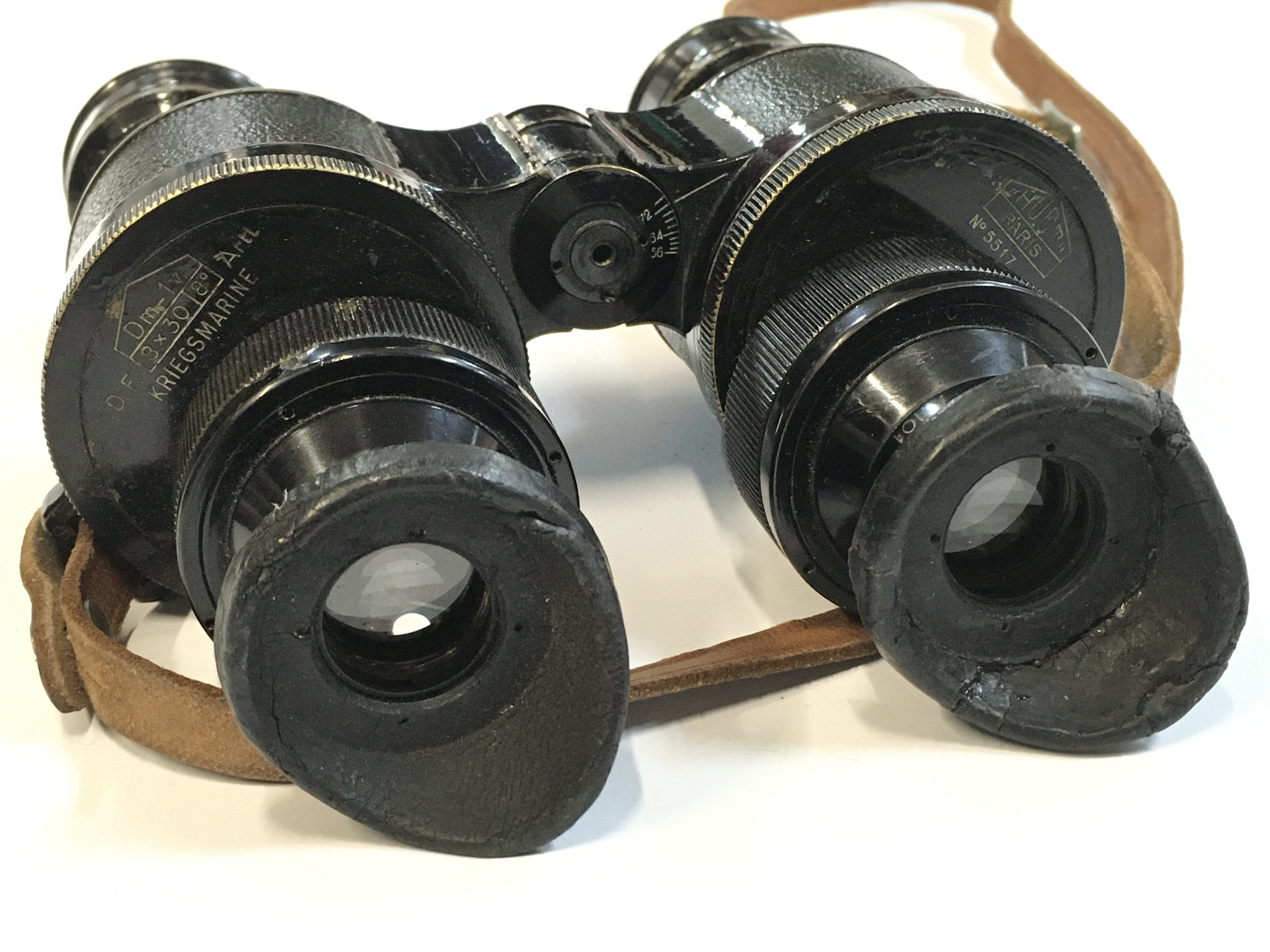 A PR of 8x30 German WW2 Binoculars marked Huet of Paris Kriegsmarine marked . This lot cannot be posted