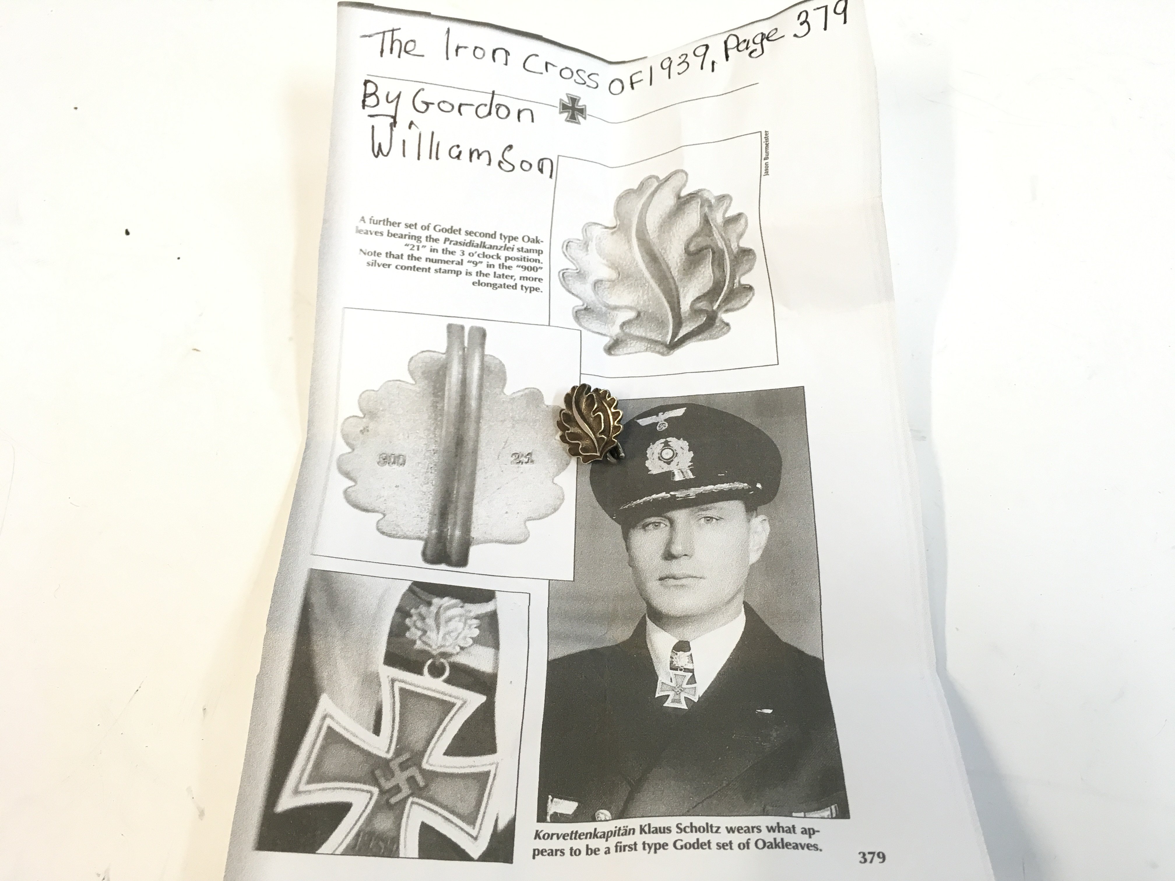 WW2 German third Reich silver oak leaves for a knights cross similar to picture taken from Gordon Williamsons book. Postage category A